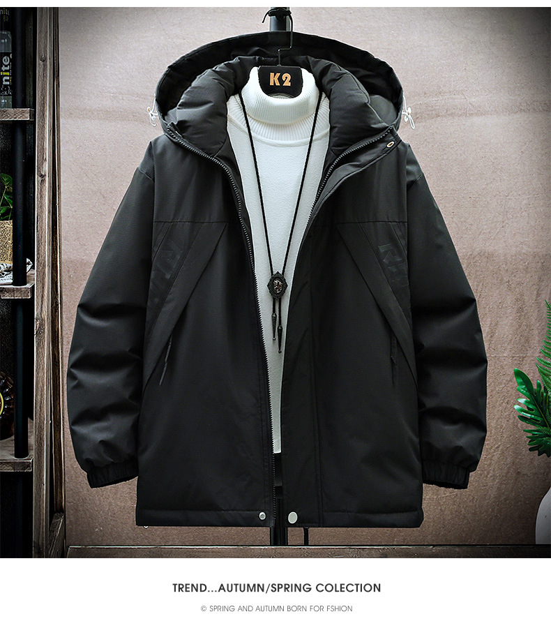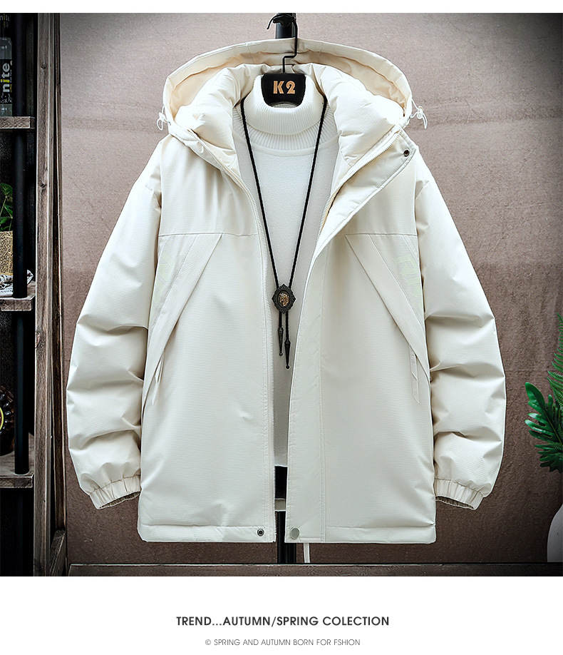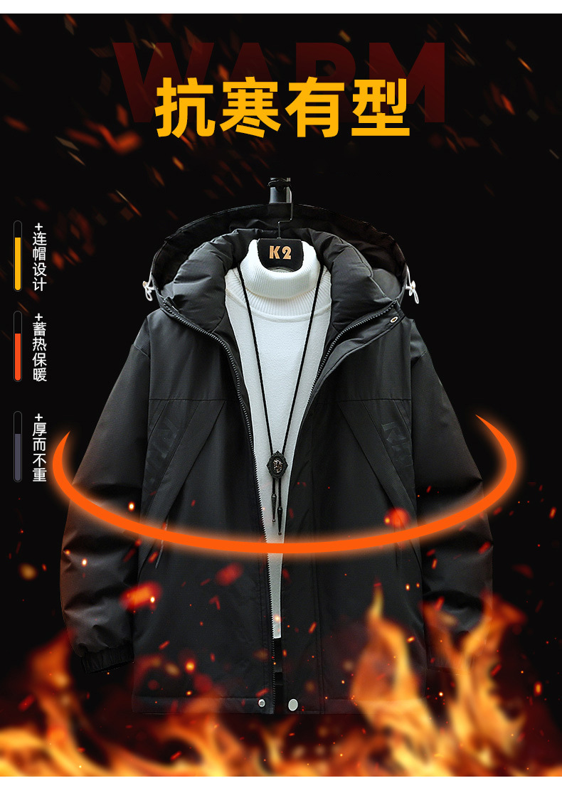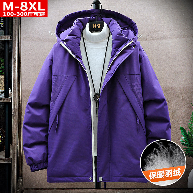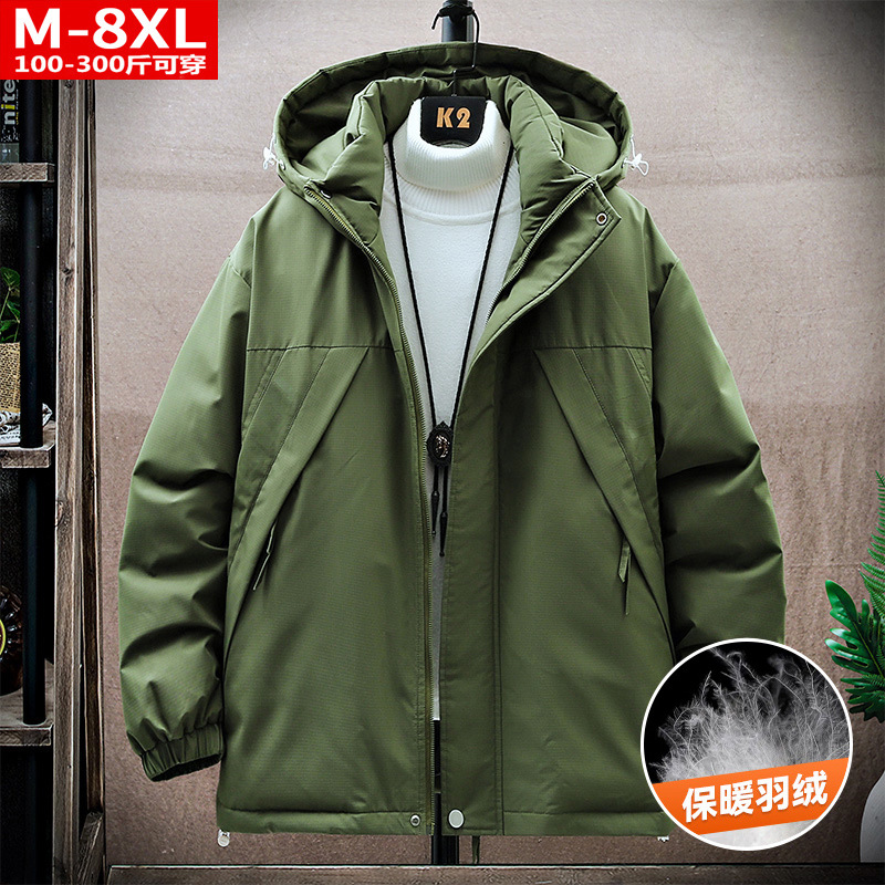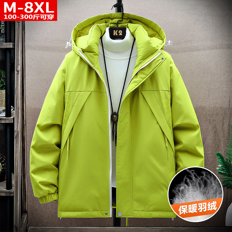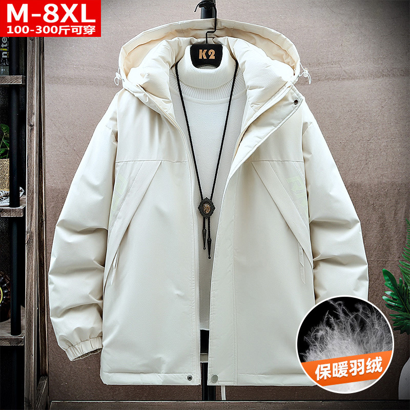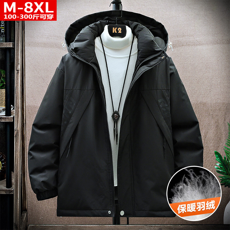 겨울 유행 품질 남자의 잘 생긴 인쇄 후드 다운 재킷 통통한 대형 플러스 뚱뚱한 느슨한 방한 따뜻한 재킷