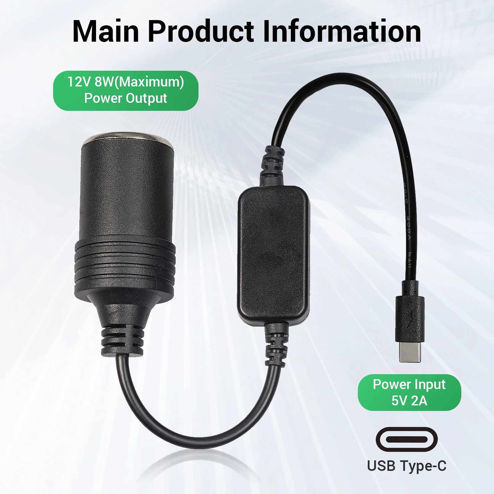 USB Type C to Car Cigarette Lighter Socket Female Converter Adapter Cord for Car Cigarette Lighters Car Vacuum Cleaner