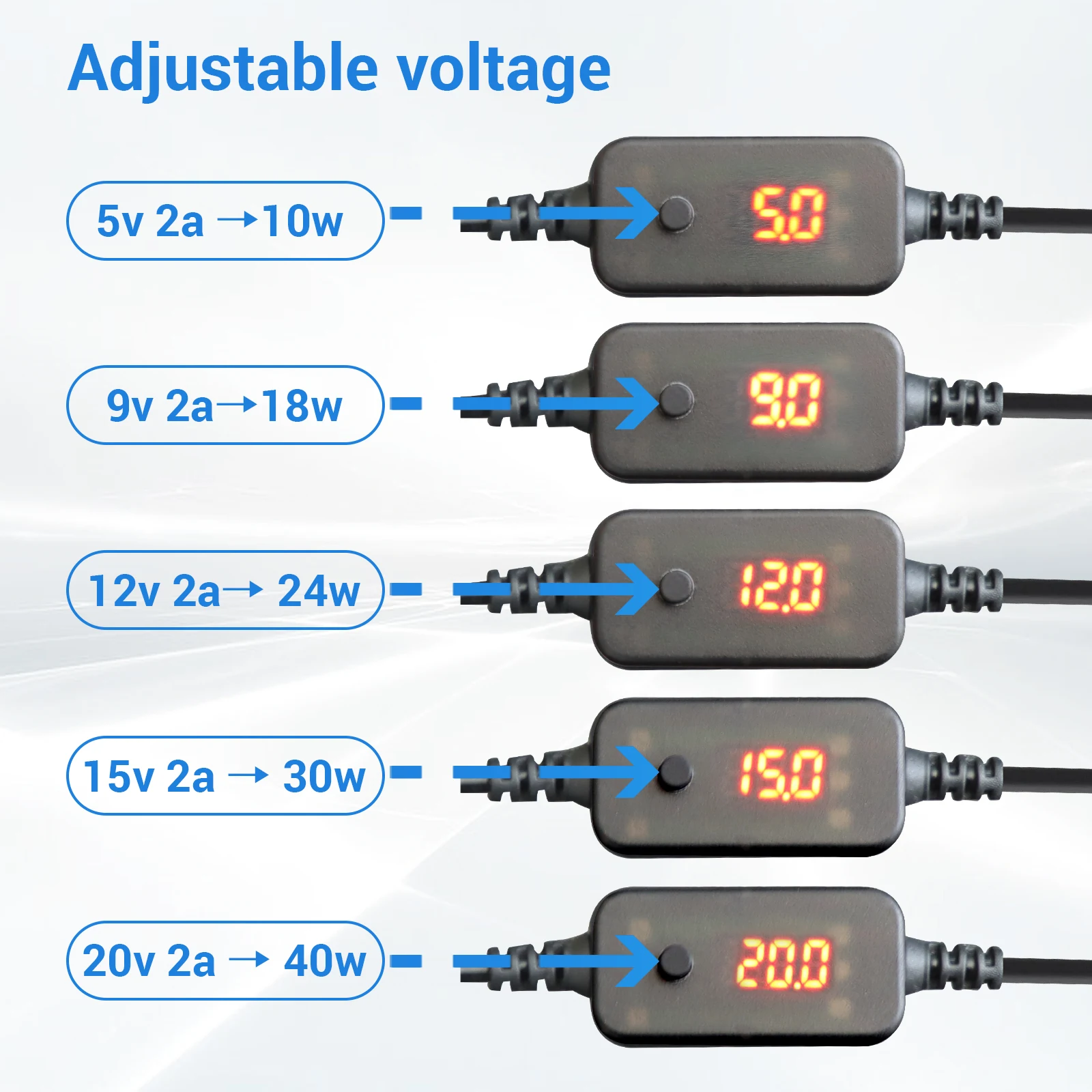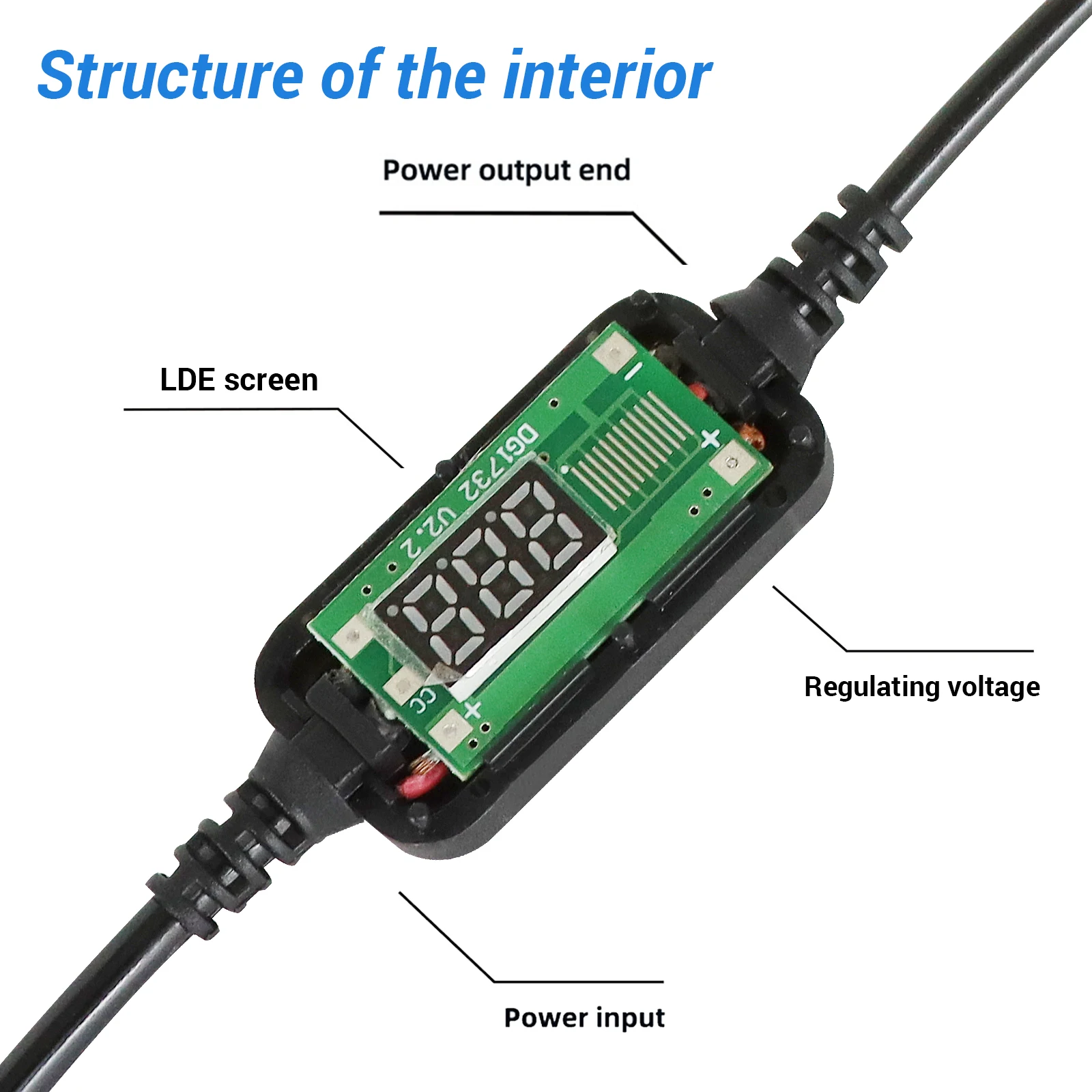 유형 C 전송 자동차 시가 라이터 케이블 소켓 케이블 자동차 진공 청소기 변환 케이블 조정 가능한 5-12V20V 전압 케이블