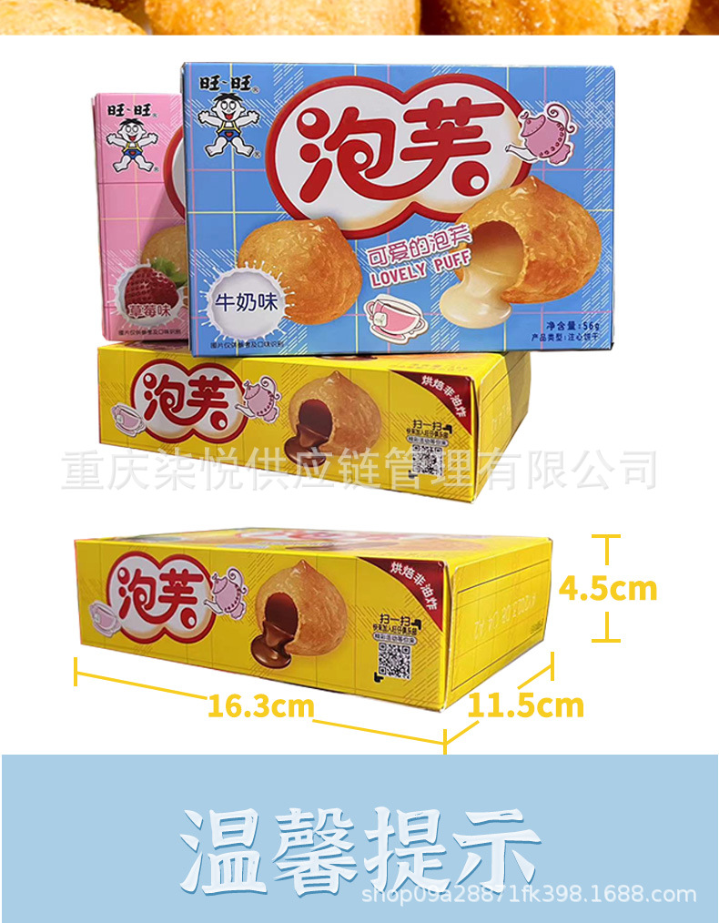 왕광 퍼프 볼 56g 박스형 초콜릿 딸기 우유 맛 사출 비스킷 과자 레저 사무실 간식