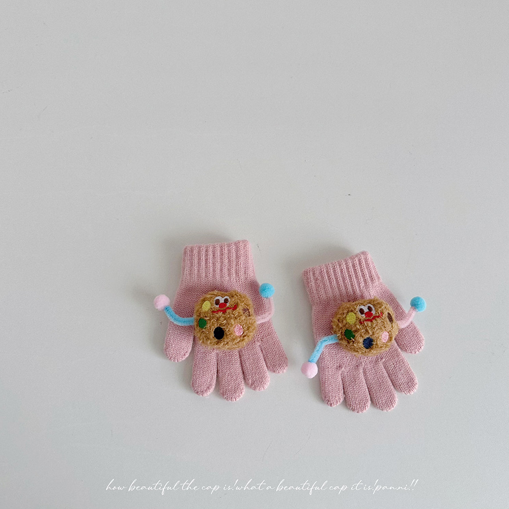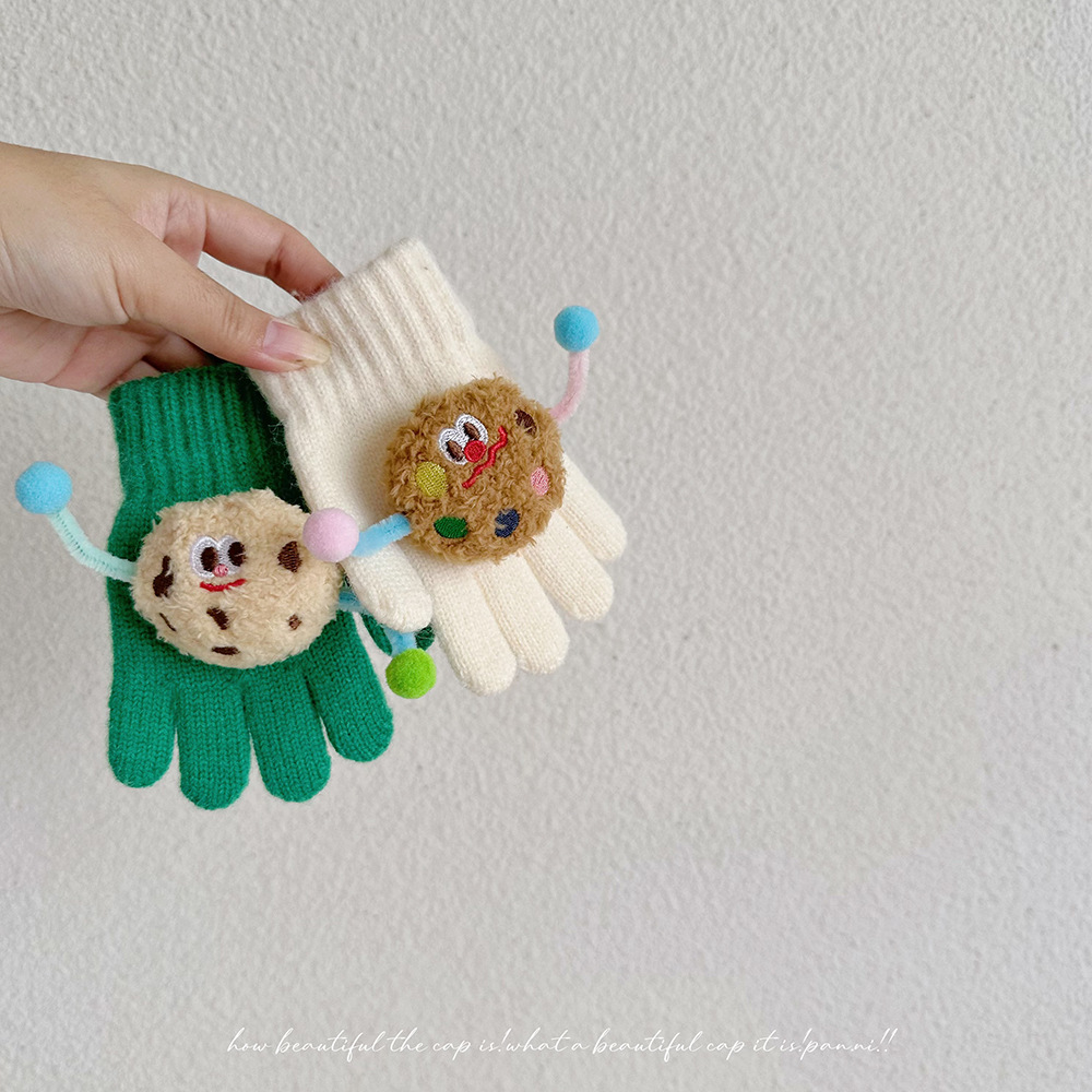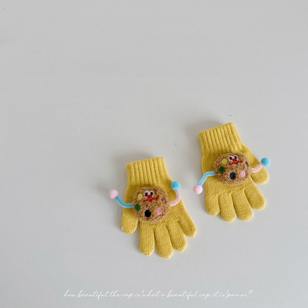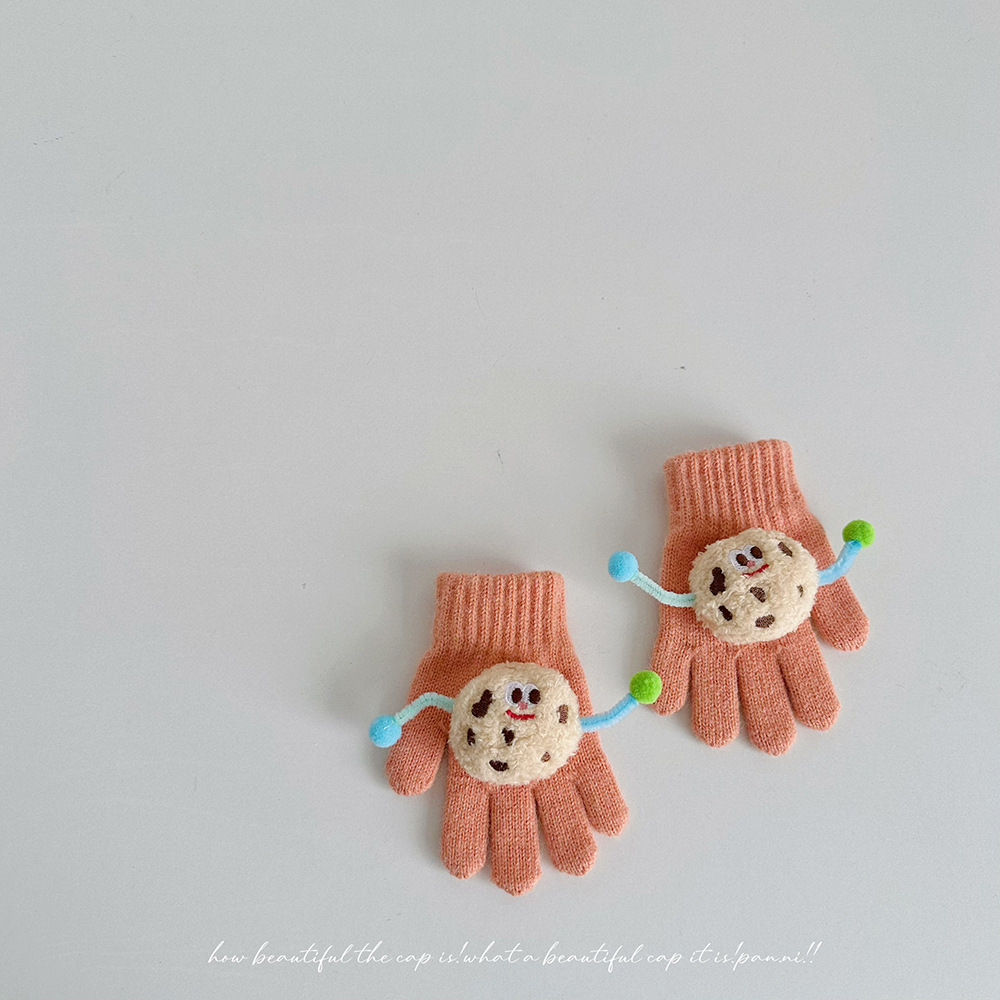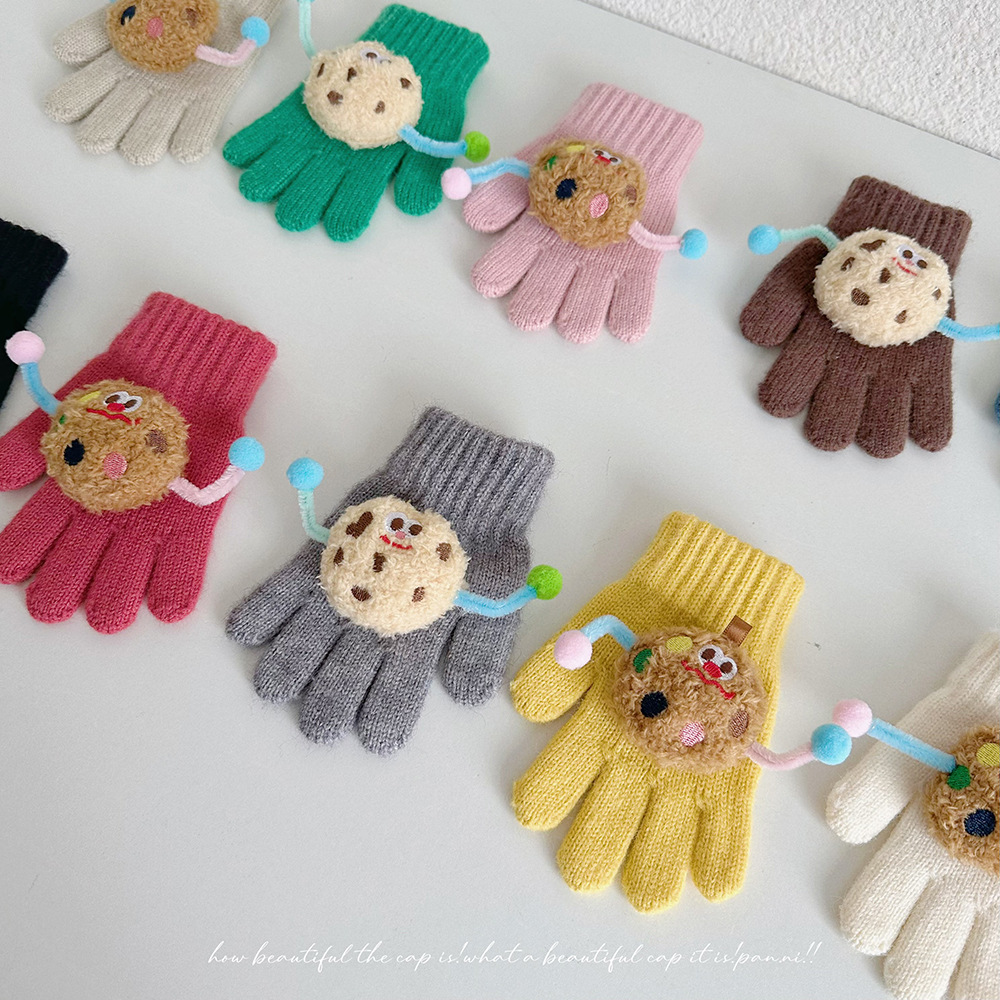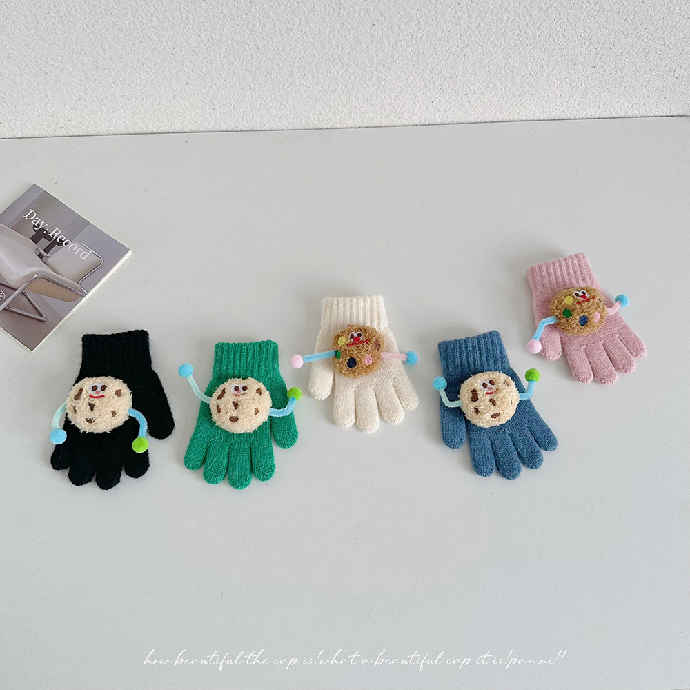 어린이 가을과 겨울 귀여운 다섯 손가락 장갑 겨울 아기 따뜻한 장갑 캔디 컬러 만화 쿠키 손가락 장갑
