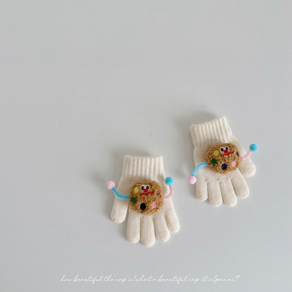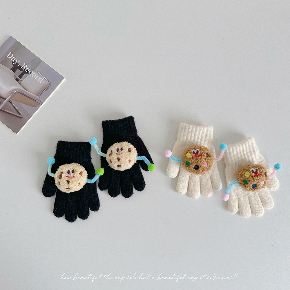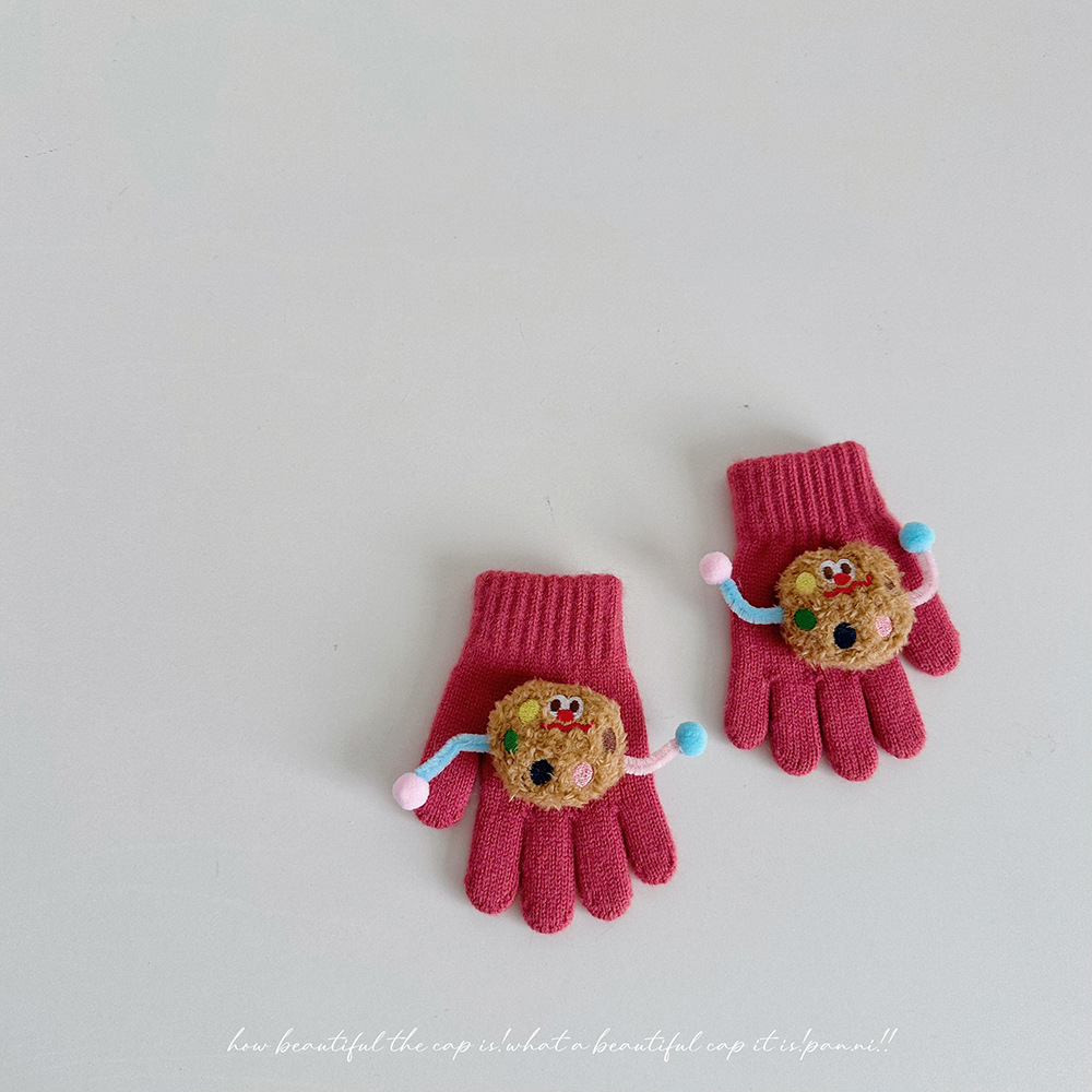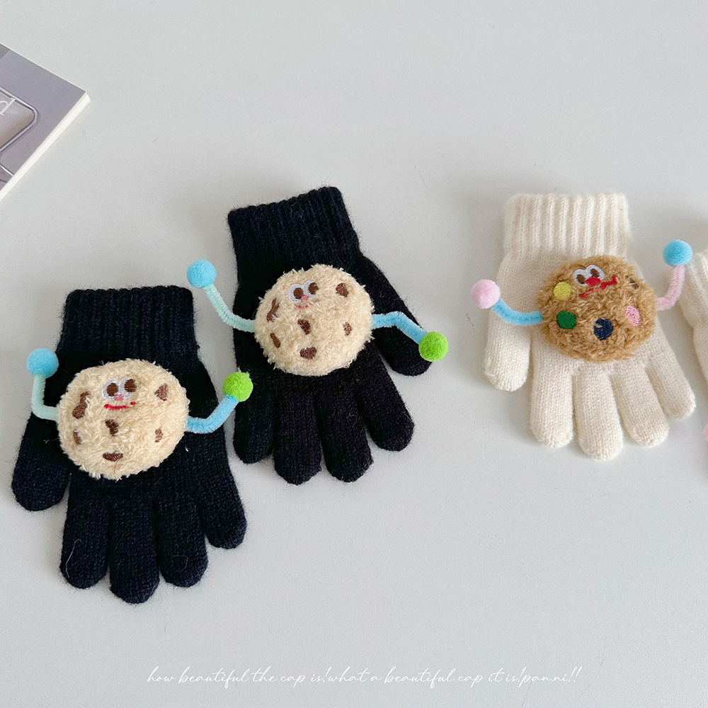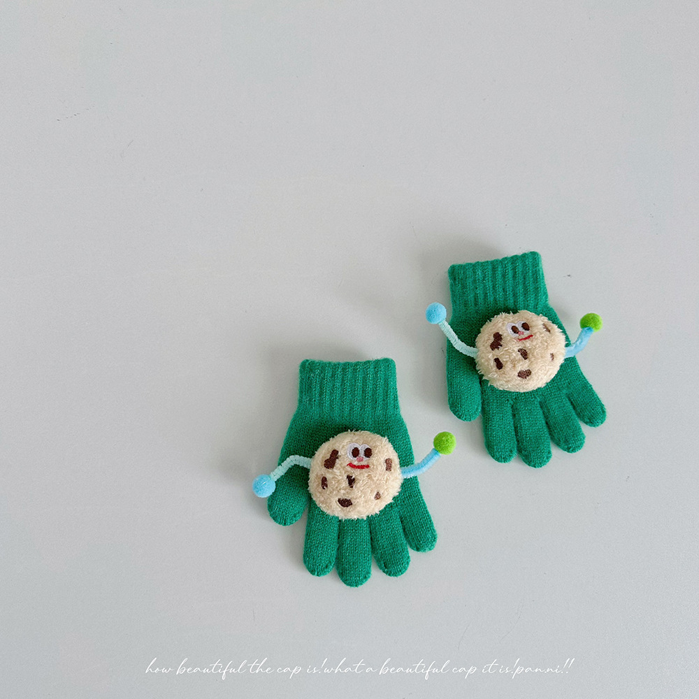 어린이 가을과 겨울 귀여운 다섯 손가락 장갑 겨울 아기 따뜻한 장갑 캔디 컬러 만화 쿠키 손가락 장갑