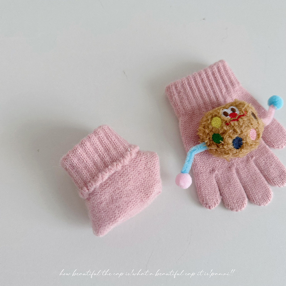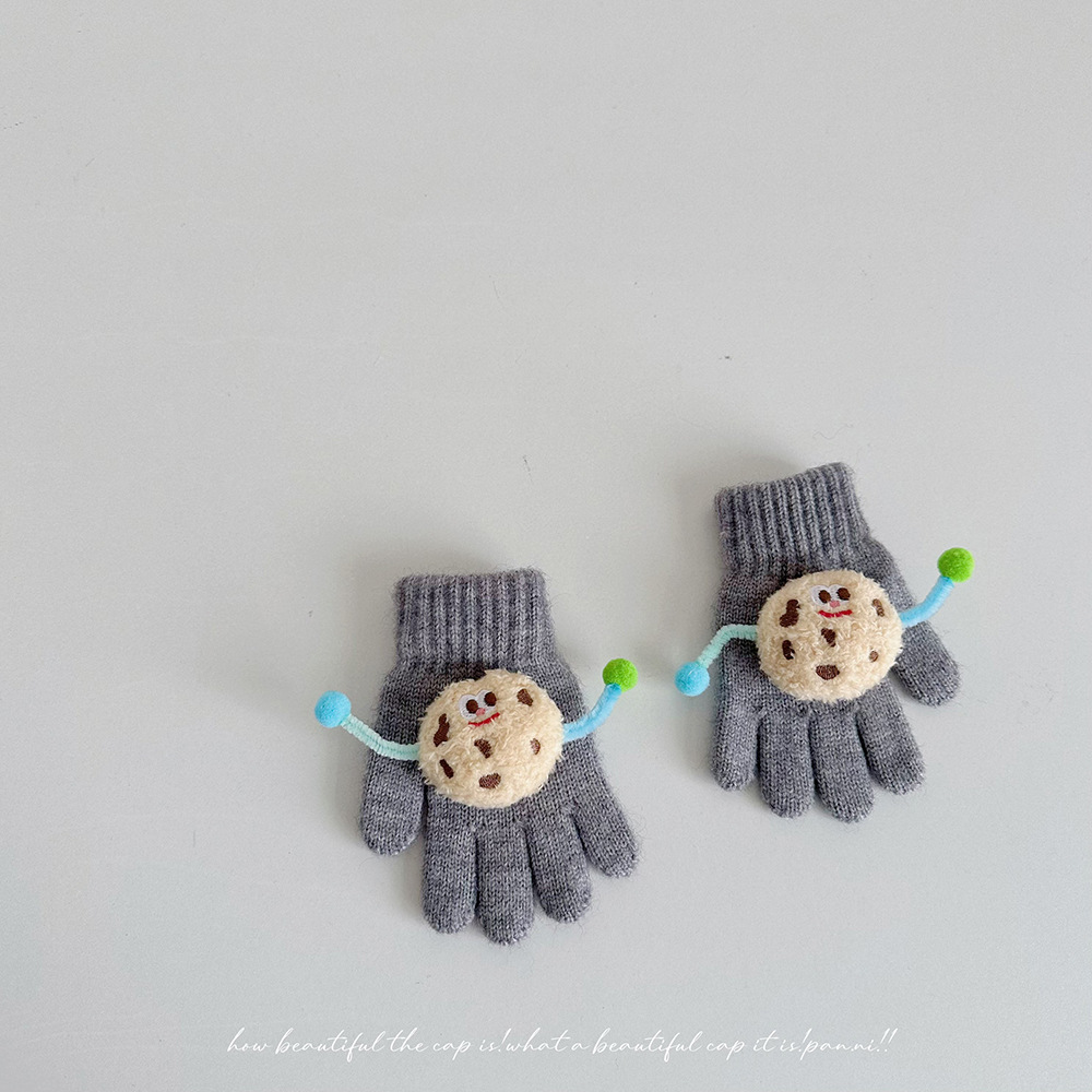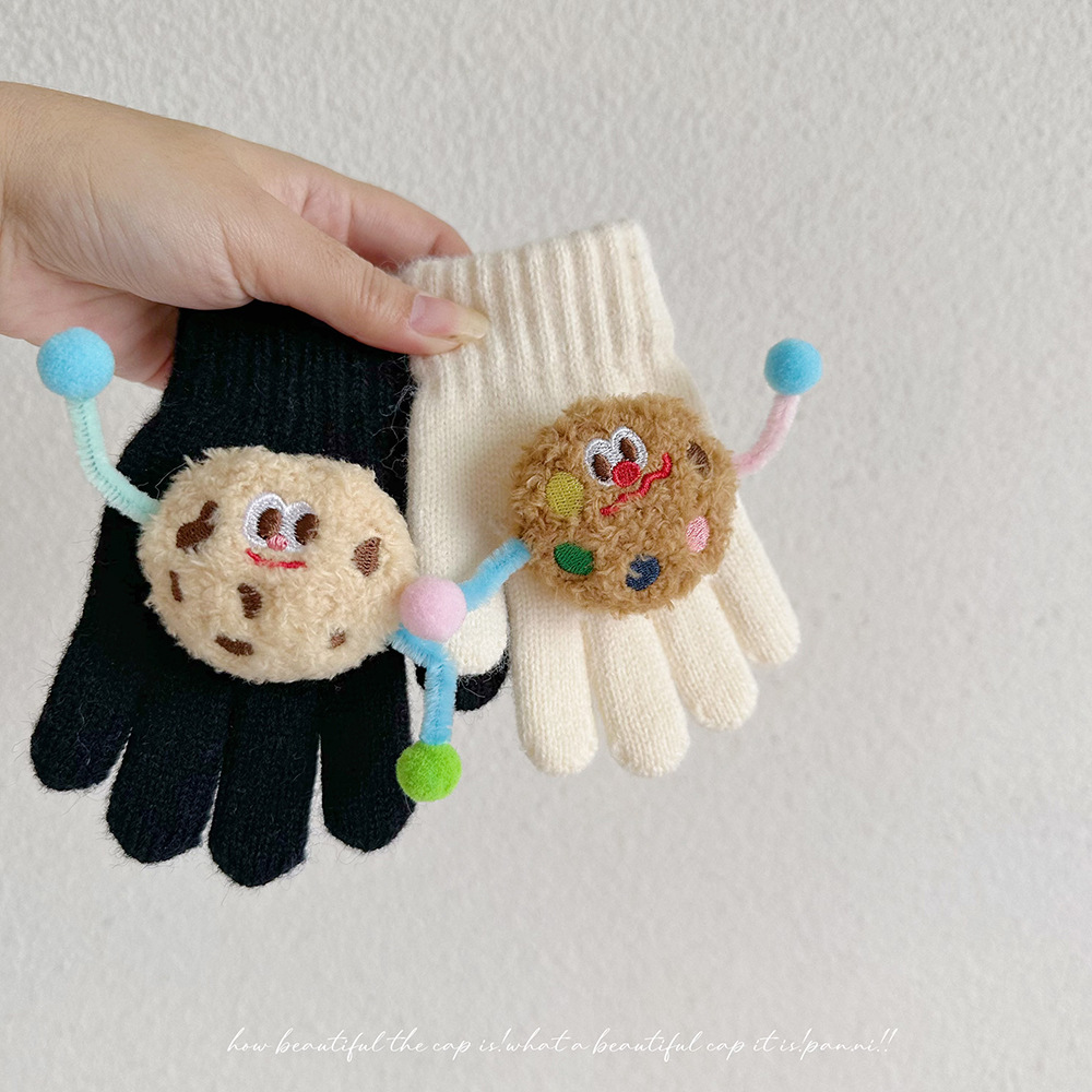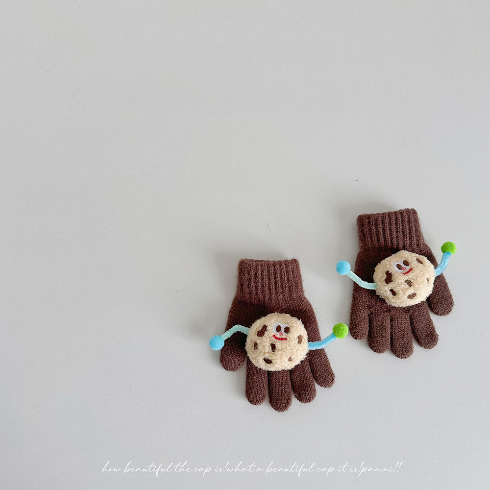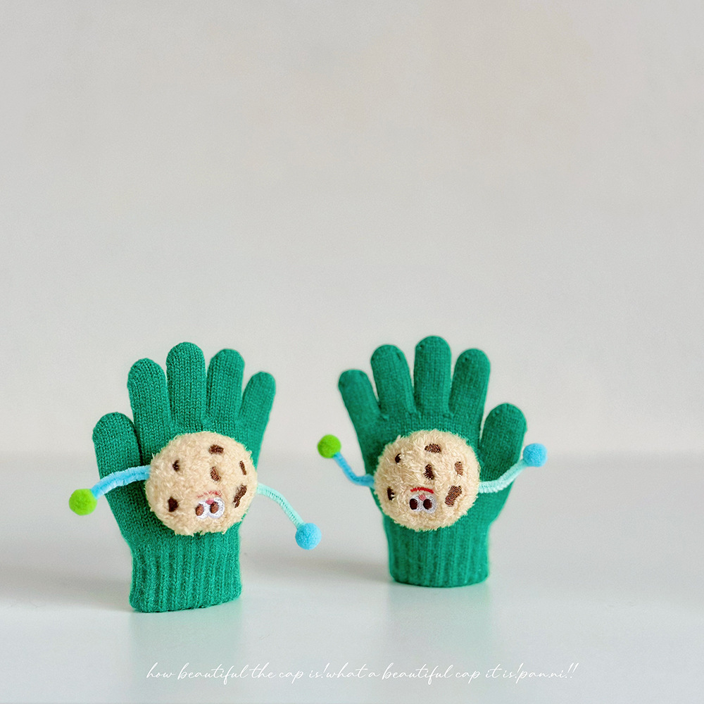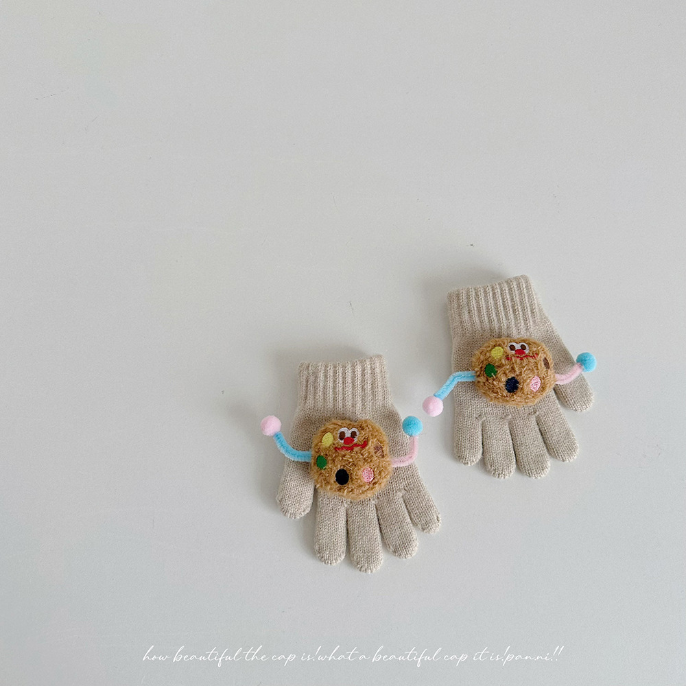 어린이 가을과 겨울 귀여운 다섯 손가락 장갑 겨울 아기 따뜻한 장갑 캔디 컬러 만화 쿠키 손가락 장갑