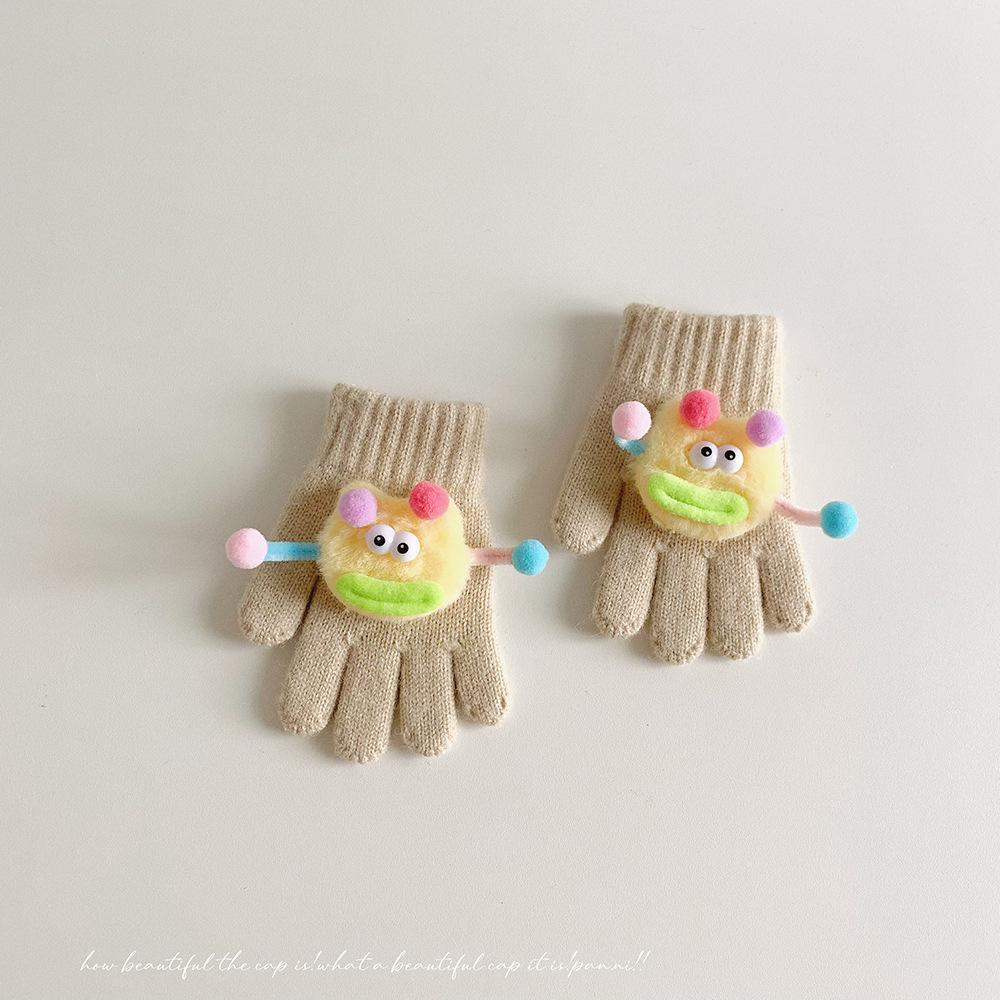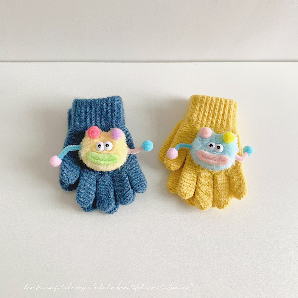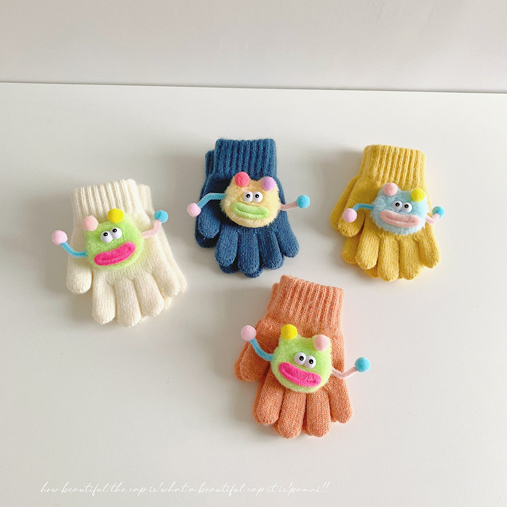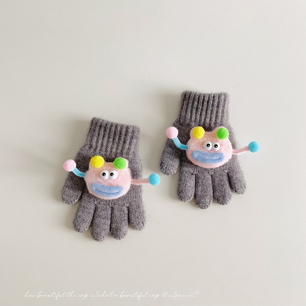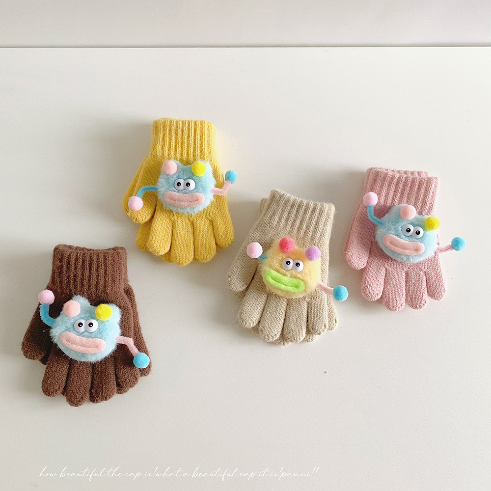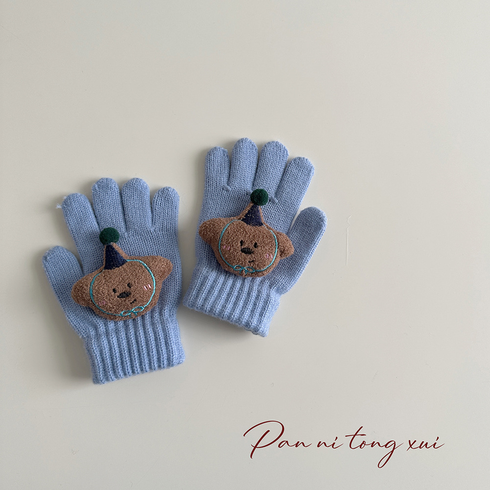 어린이 가을과 겨울 귀여운 다섯 손가락 장갑 겨울 아기 따뜻한 장갑 캔디 컬러 만화 쿠키 손가락 장갑