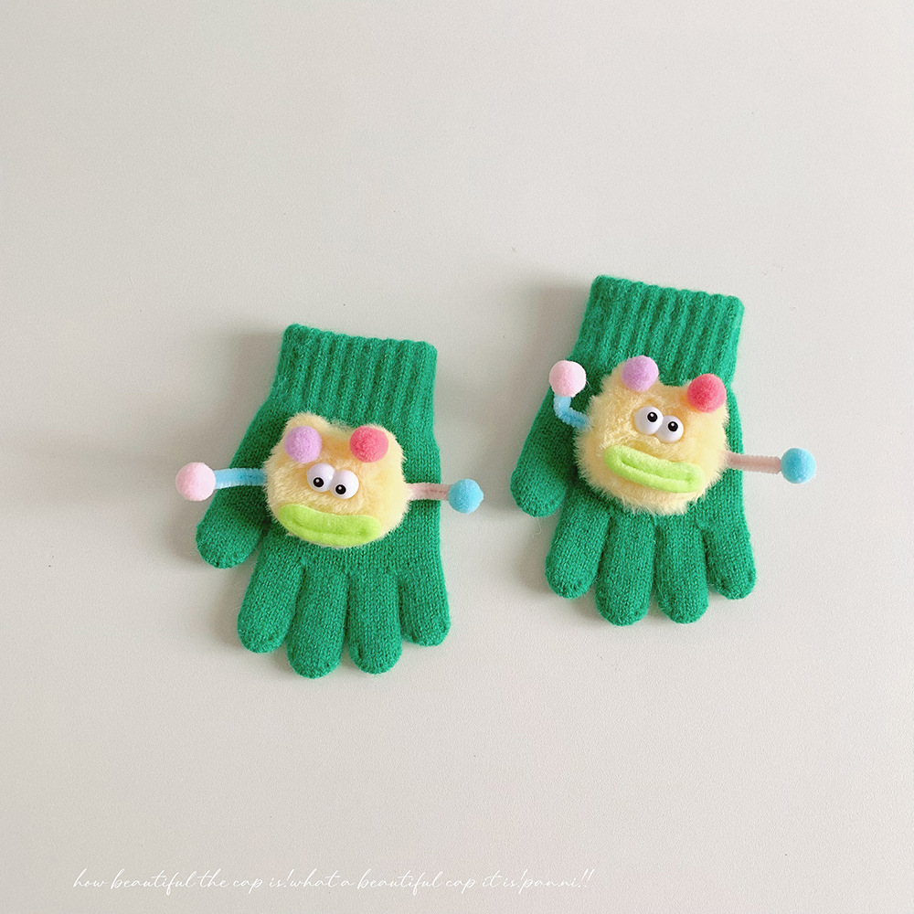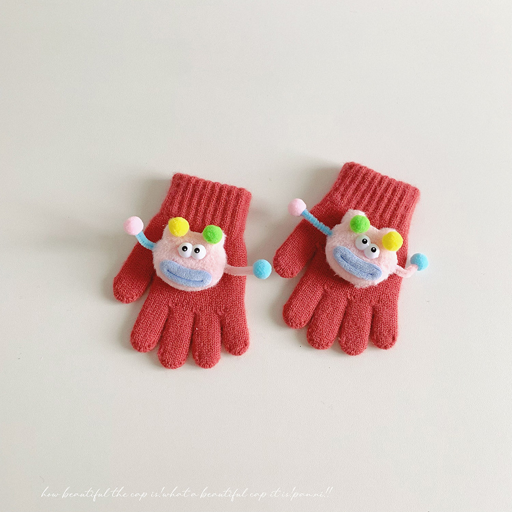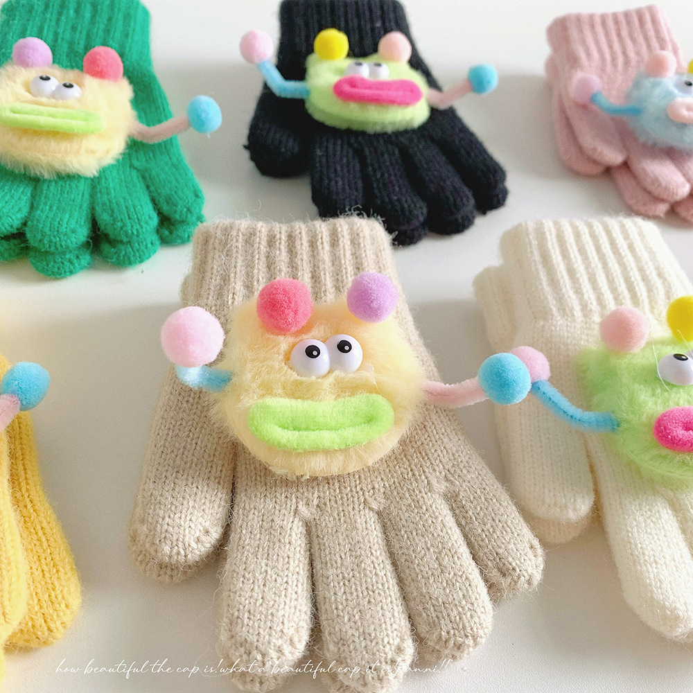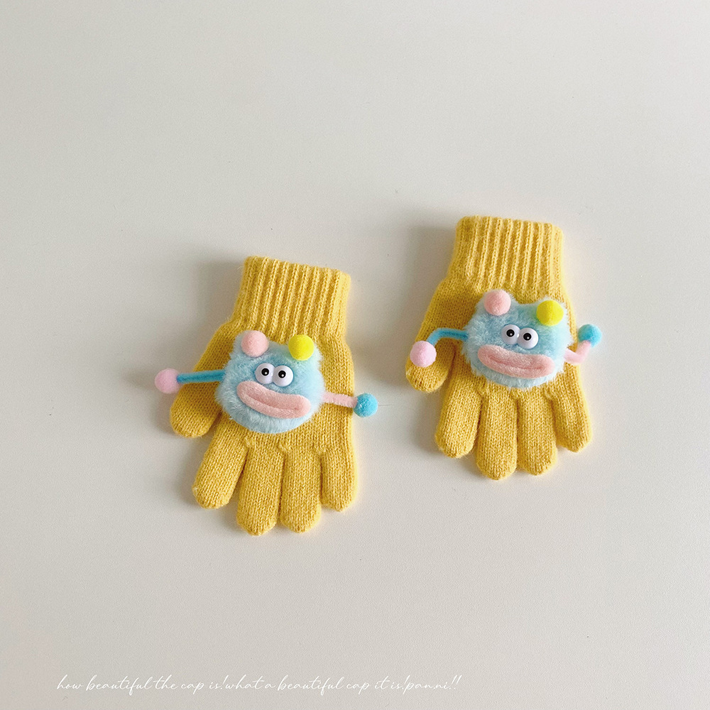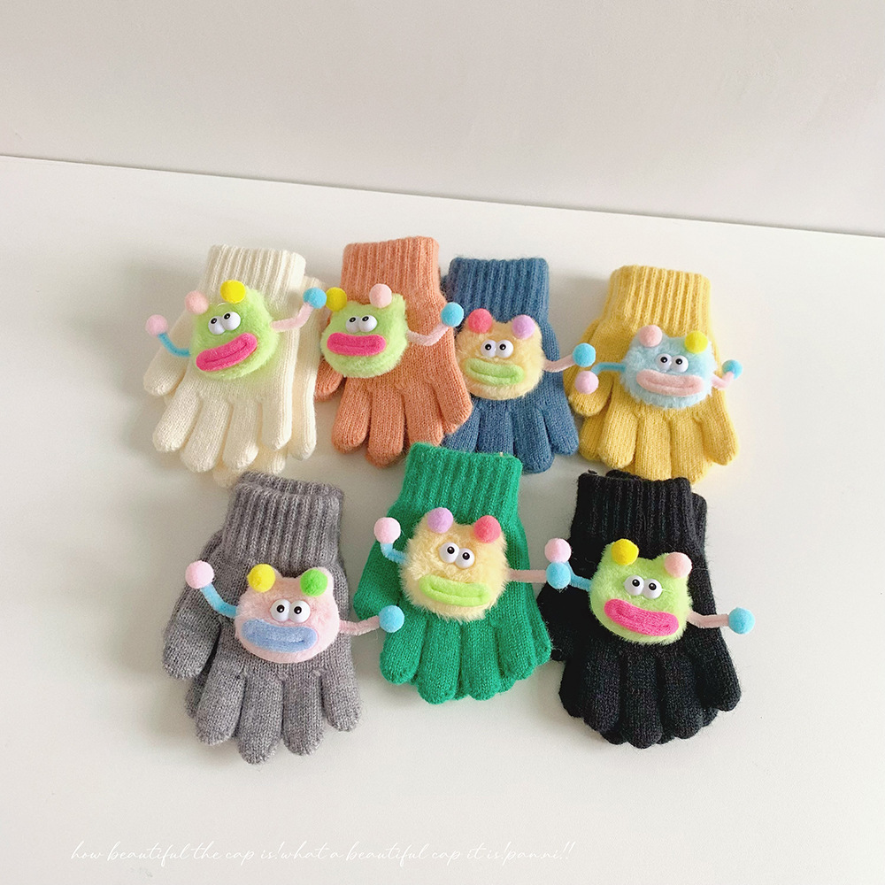 어린이 가을과 겨울 귀여운 다섯 손가락 장갑 겨울 아기 따뜻한 장갑 캔디 컬러 만화 쿠키 손가락 장갑