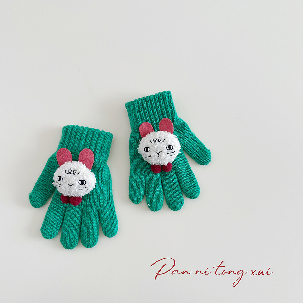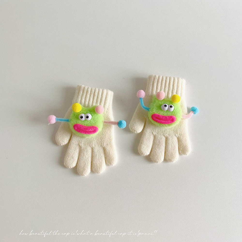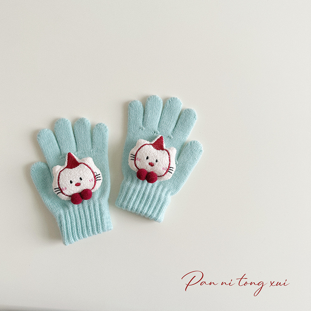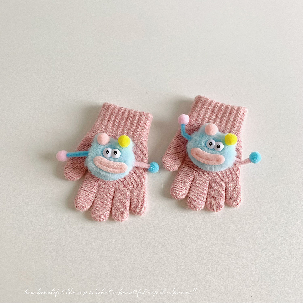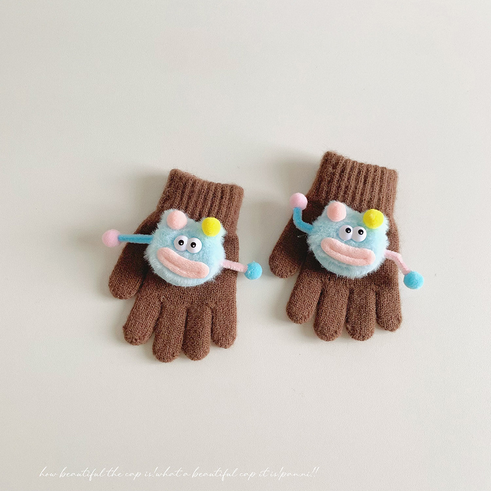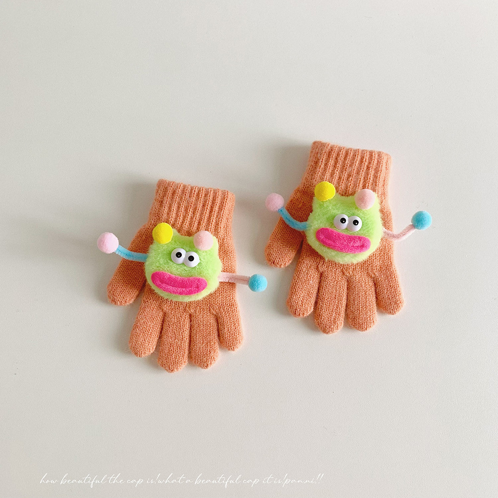 어린이 가을과 겨울 귀여운 다섯 손가락 장갑 겨울 아기 따뜻한 장갑 캔디 컬러 만화 쿠키 손가락 장갑