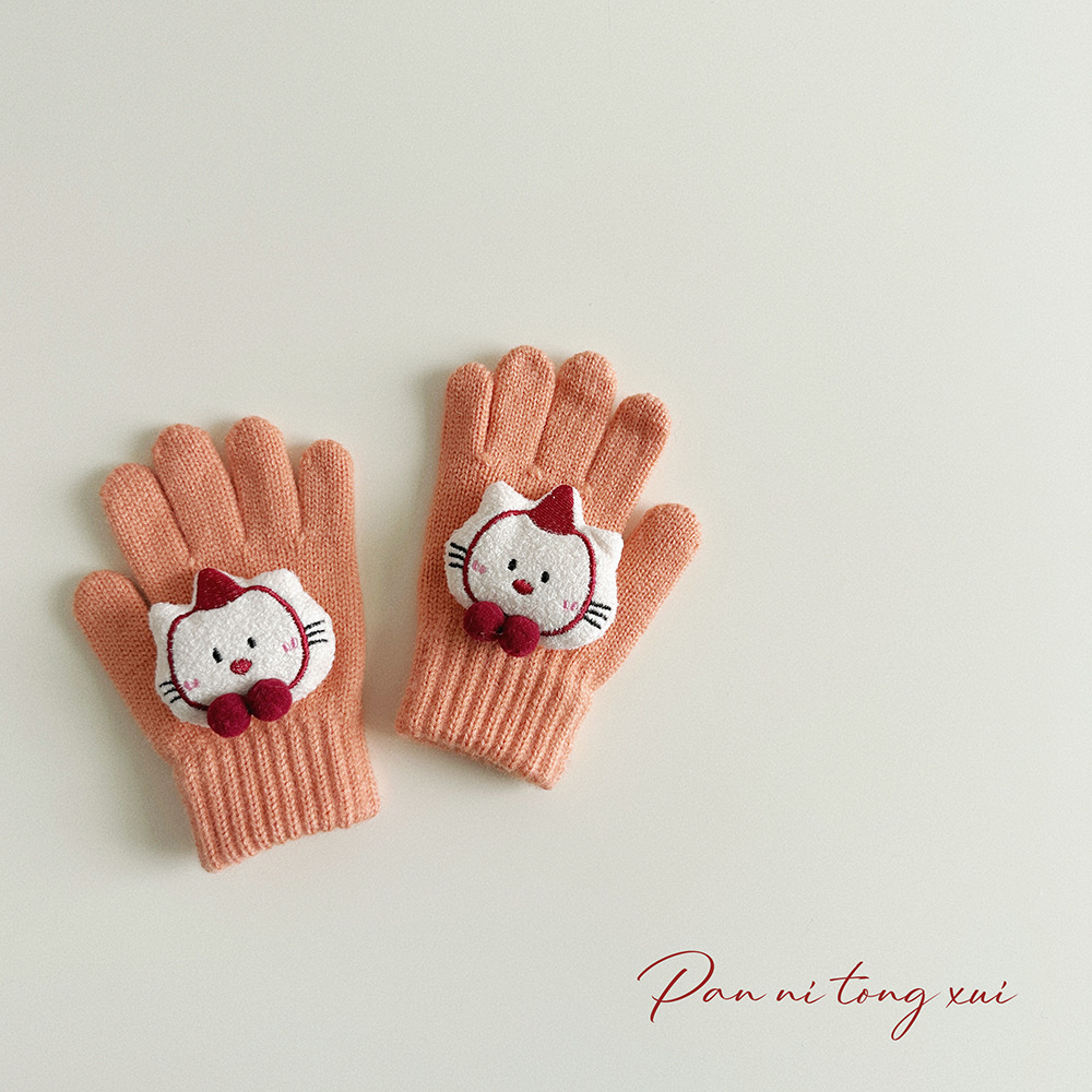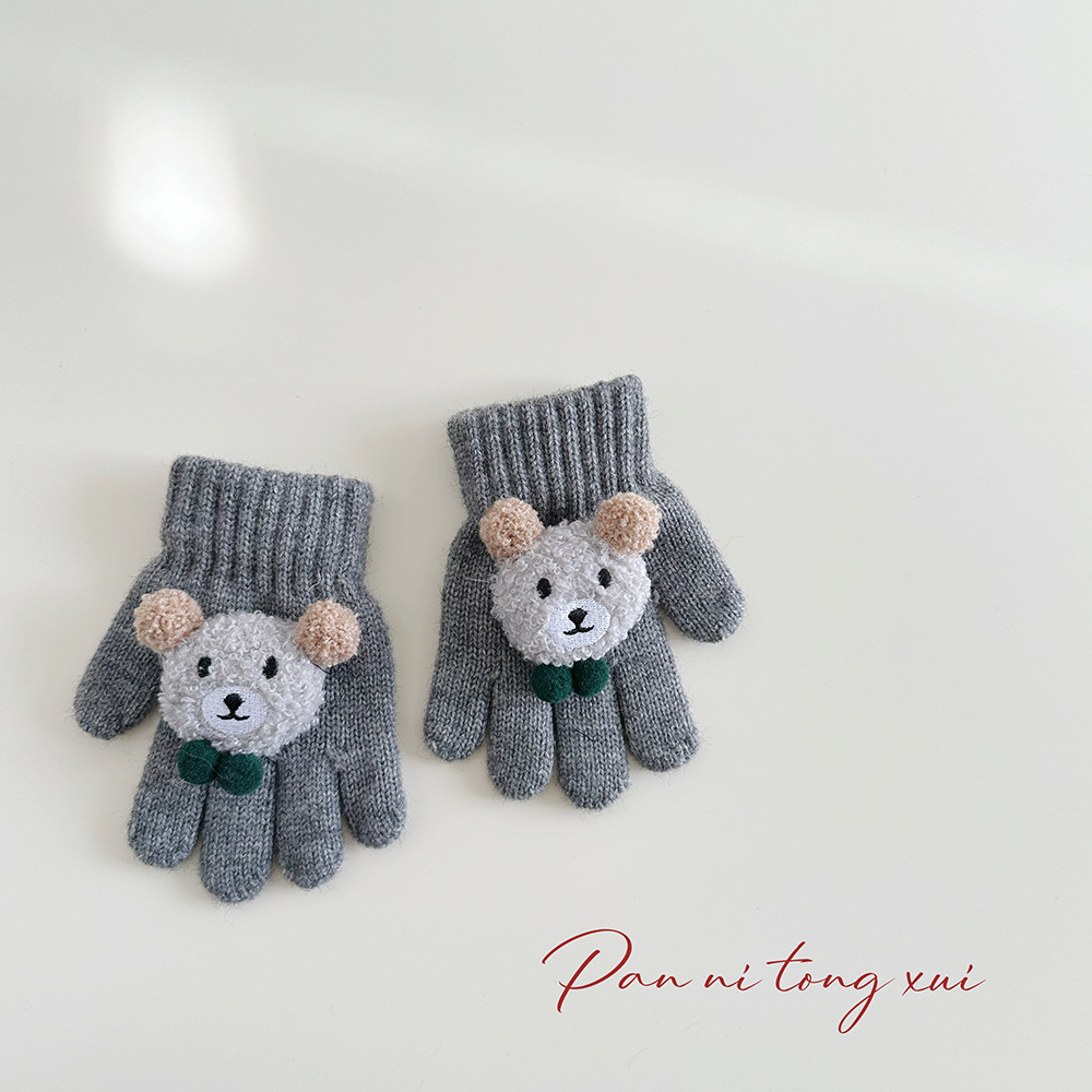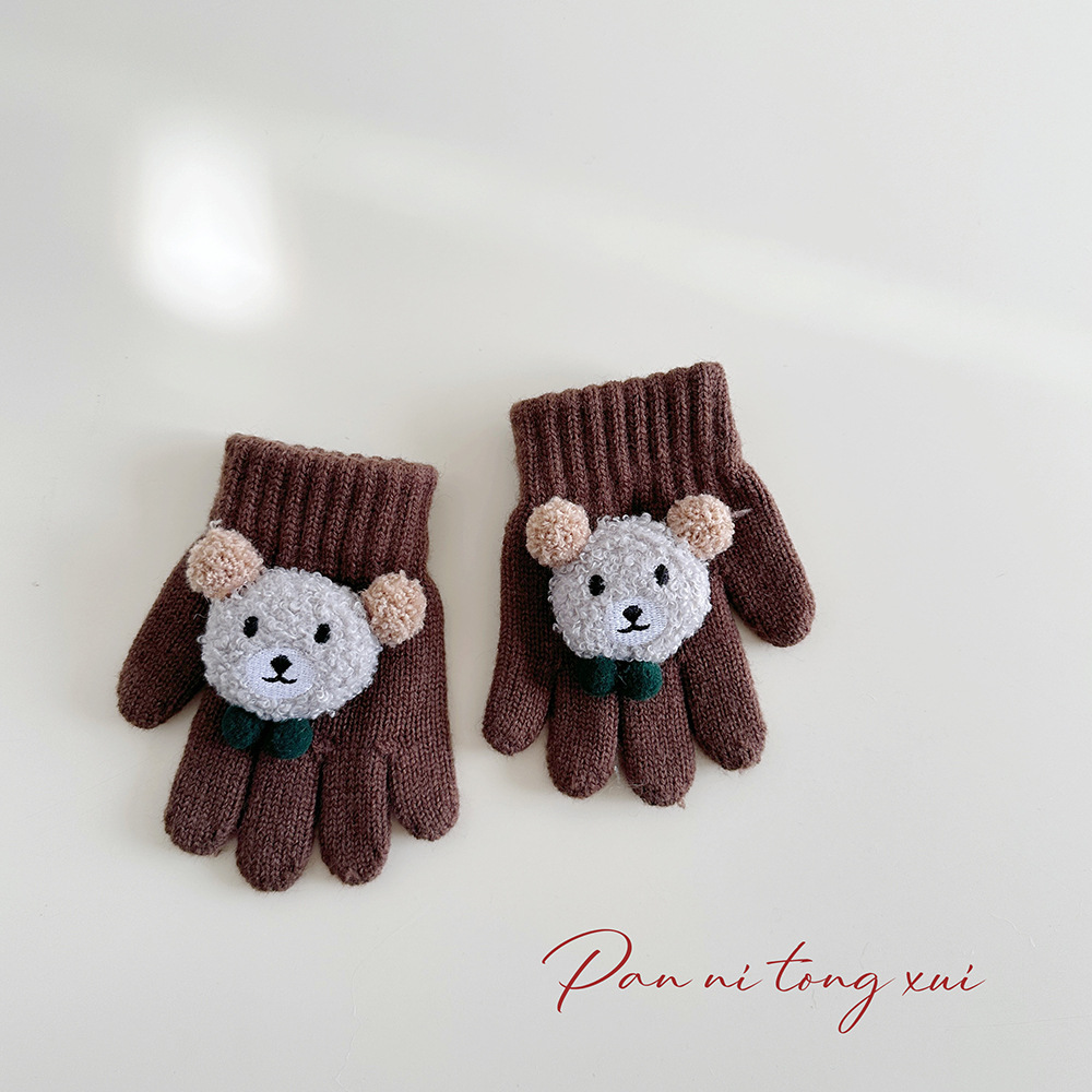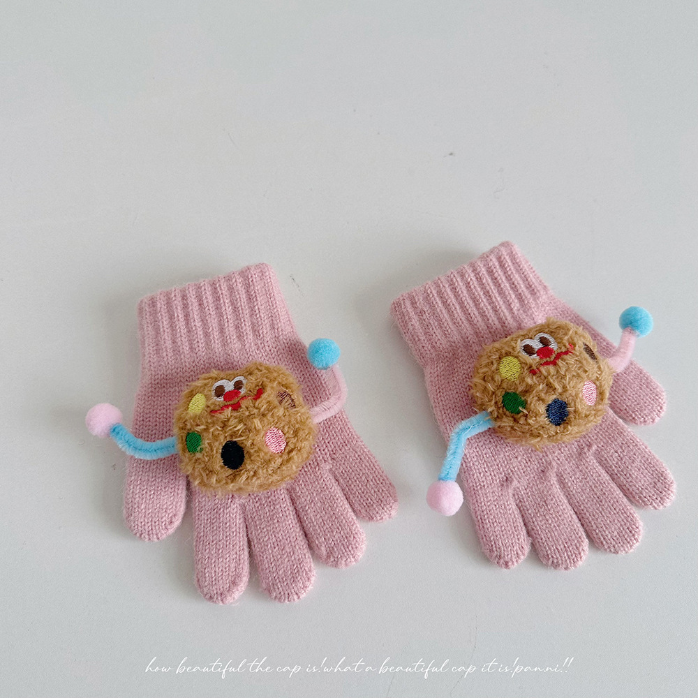 어린이 가을과 겨울 귀여운 다섯 손가락 장갑 겨울 아기 따뜻한 장갑 캔디 컬러 만화 쿠키 손가락 장갑스토어 가기