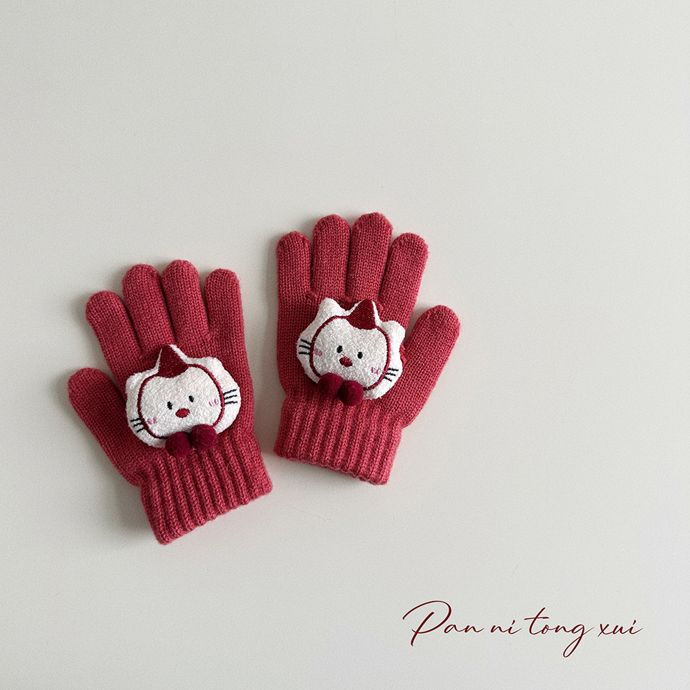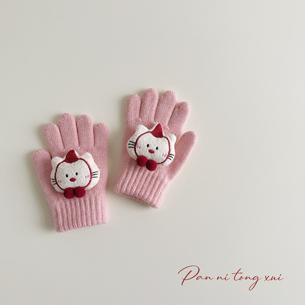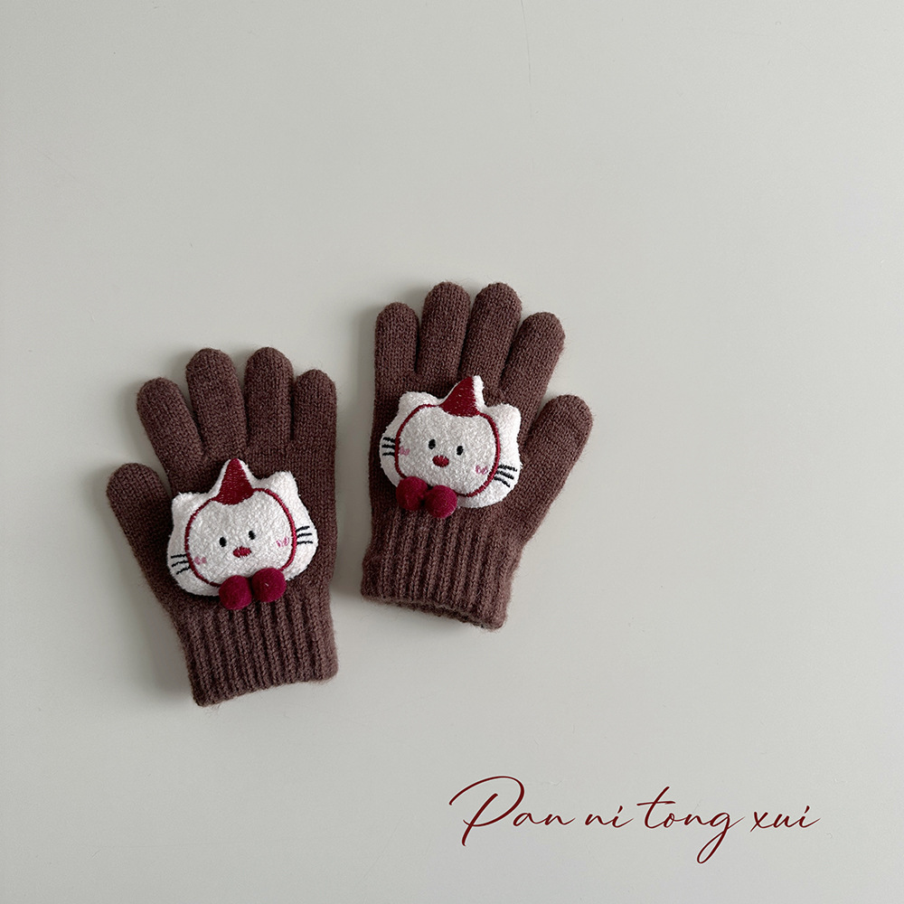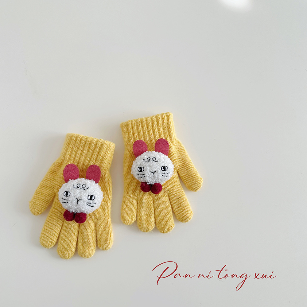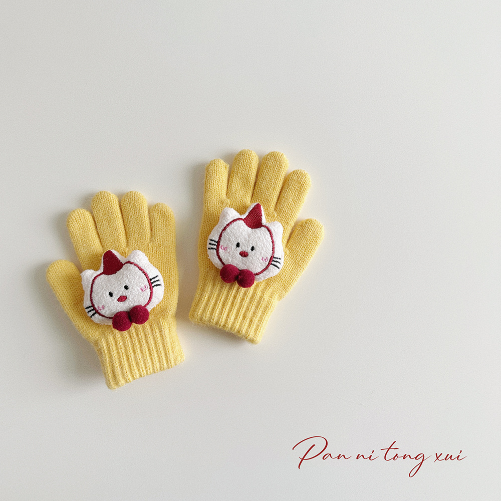 어린이 가을과 겨울 귀여운 다섯 손가락 장갑 겨울 아기 따뜻한 장갑 캔디 컬러 만화 쿠키 손가락 장갑스토어 가기
