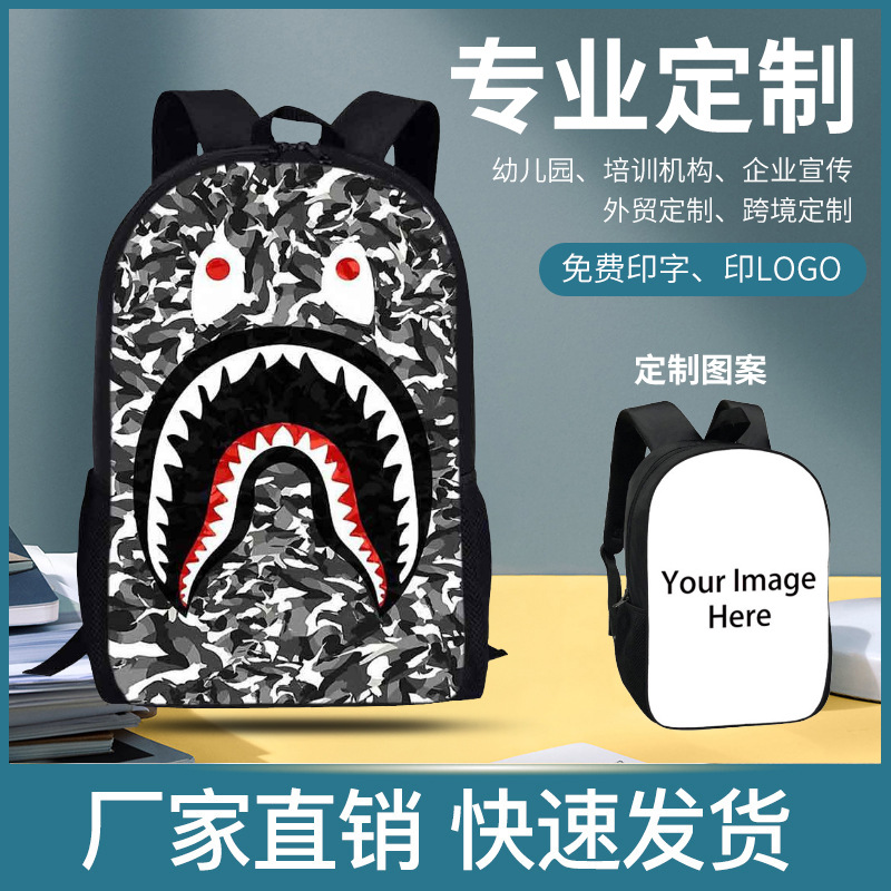 초등학교 책가방 위장 상어 인쇄 로고 대용량 어린이 배낭 애니메이션 크로스 보더 백팩