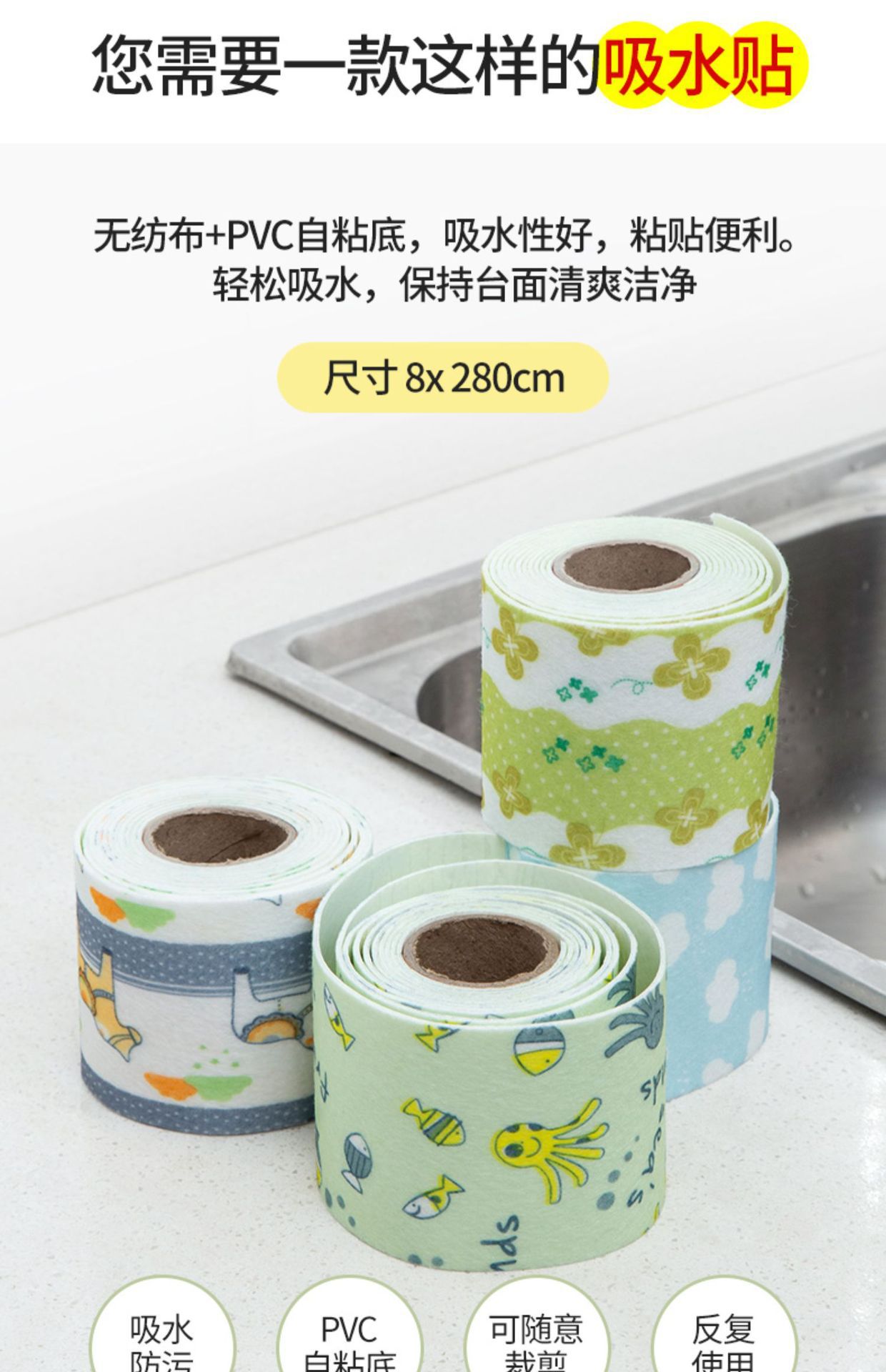 원활한 창 유리 물 흡수 스티커 창턱 김서림 방지 방수 스티커 주방 싱크대 아름다움 재봉 스티커 자체 접착 절단 가능 스티커스토어 가기