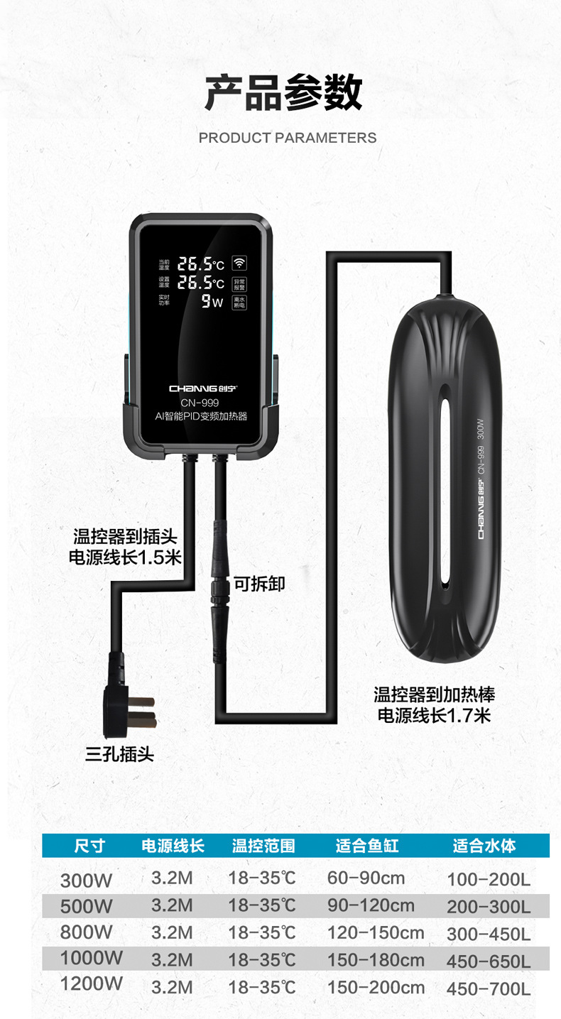 장 어항 해수 탱크 가변 주파수 히팅봉 AI 지능형 에너지 절약 석영 방폭 실린더 히팅봉