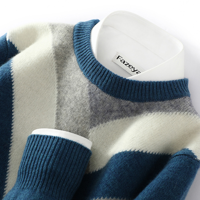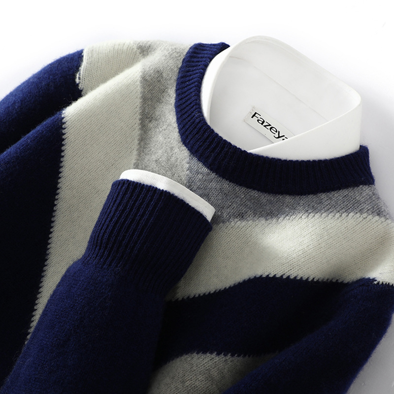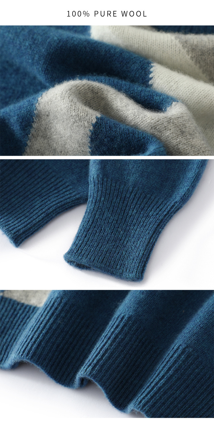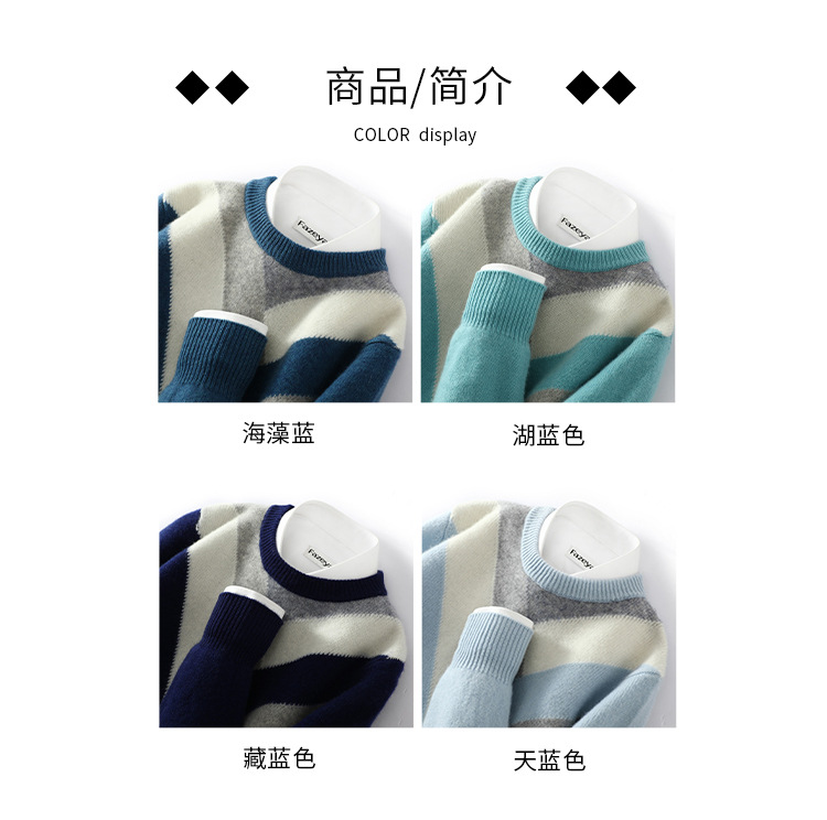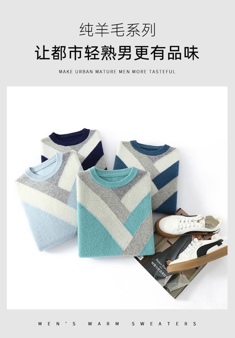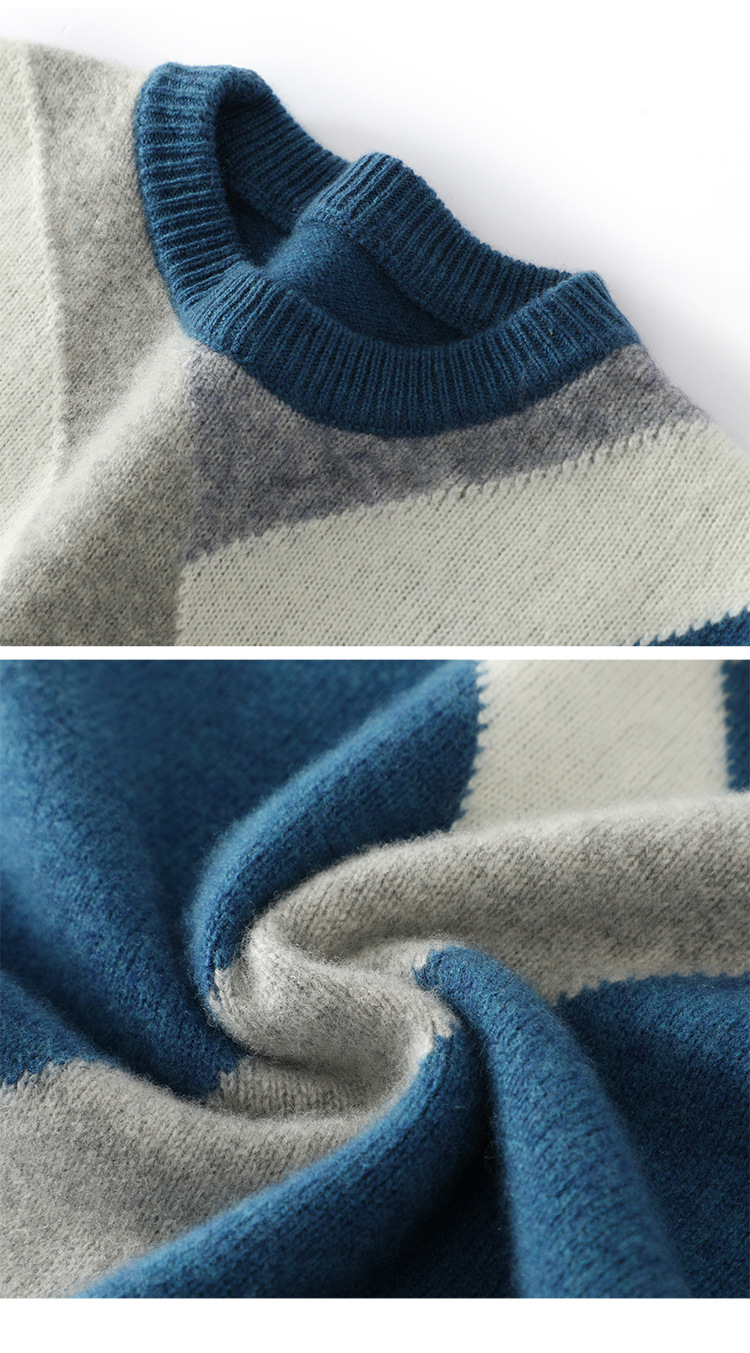가을과 겨울 새 울 스웨터 남자의 크루넥 컬러 블록 스웨터 느슨한 캐주얼 정품 플러스 사이즈 울 니트베이스스토어 가기