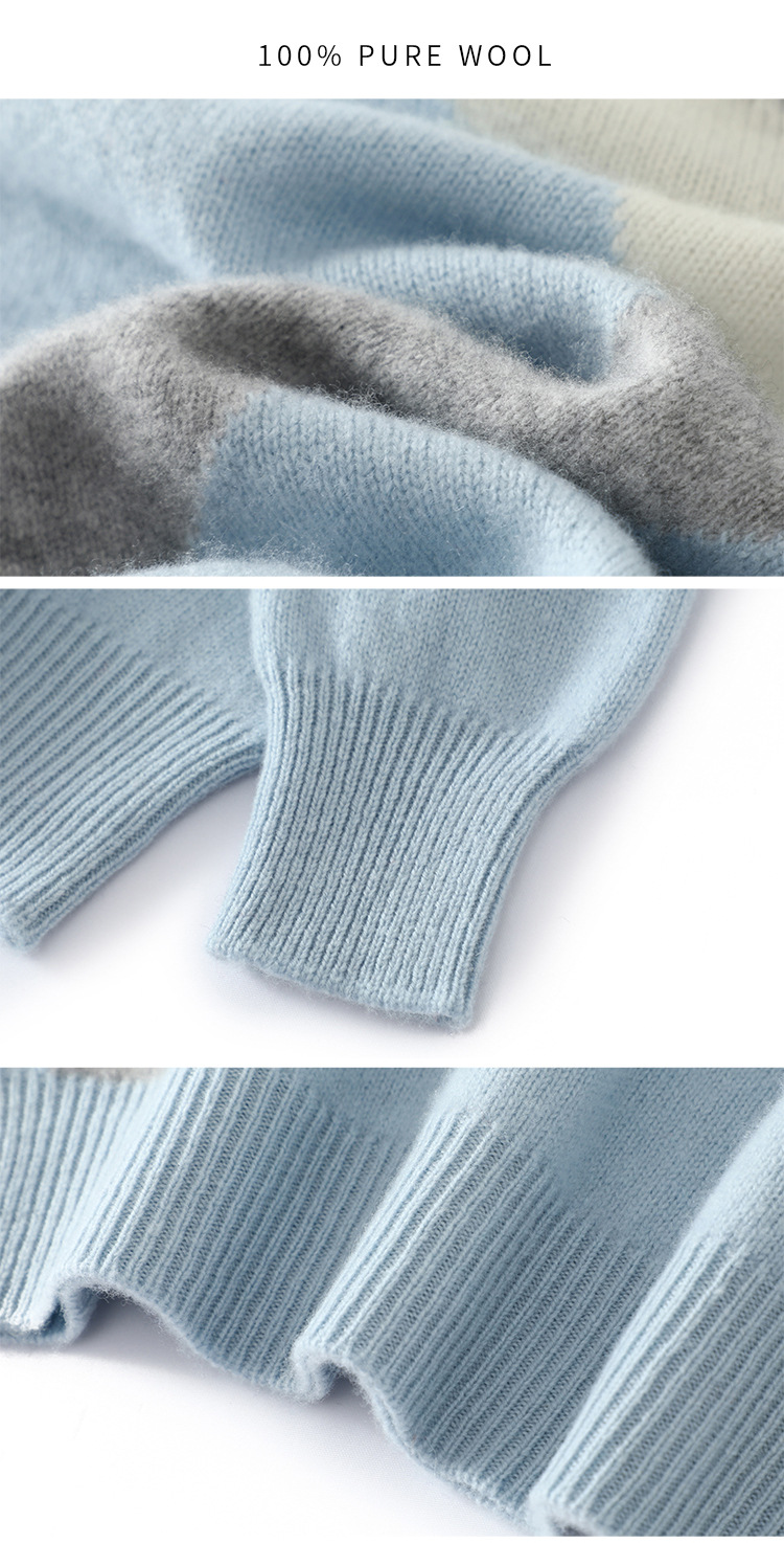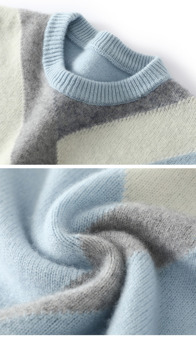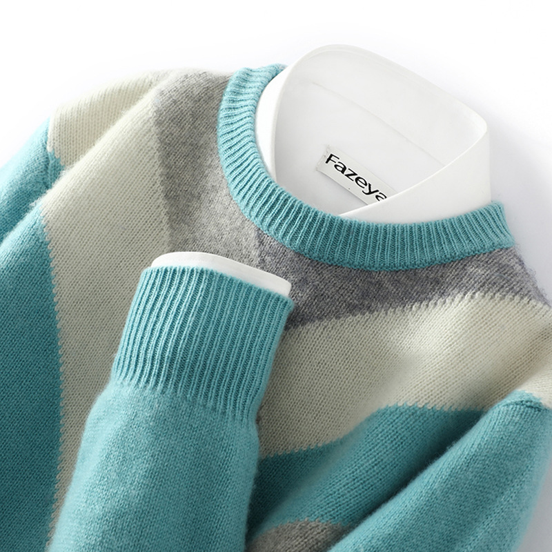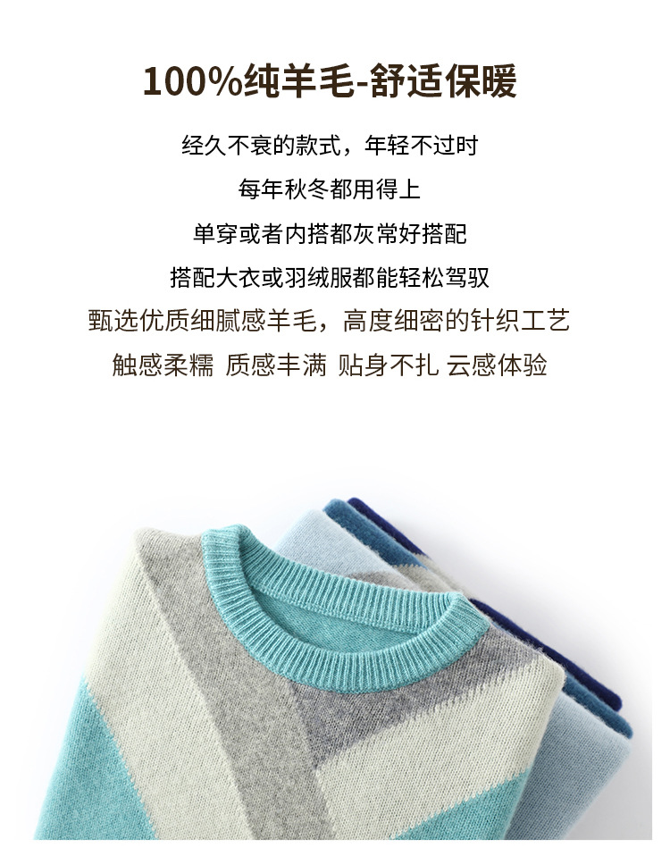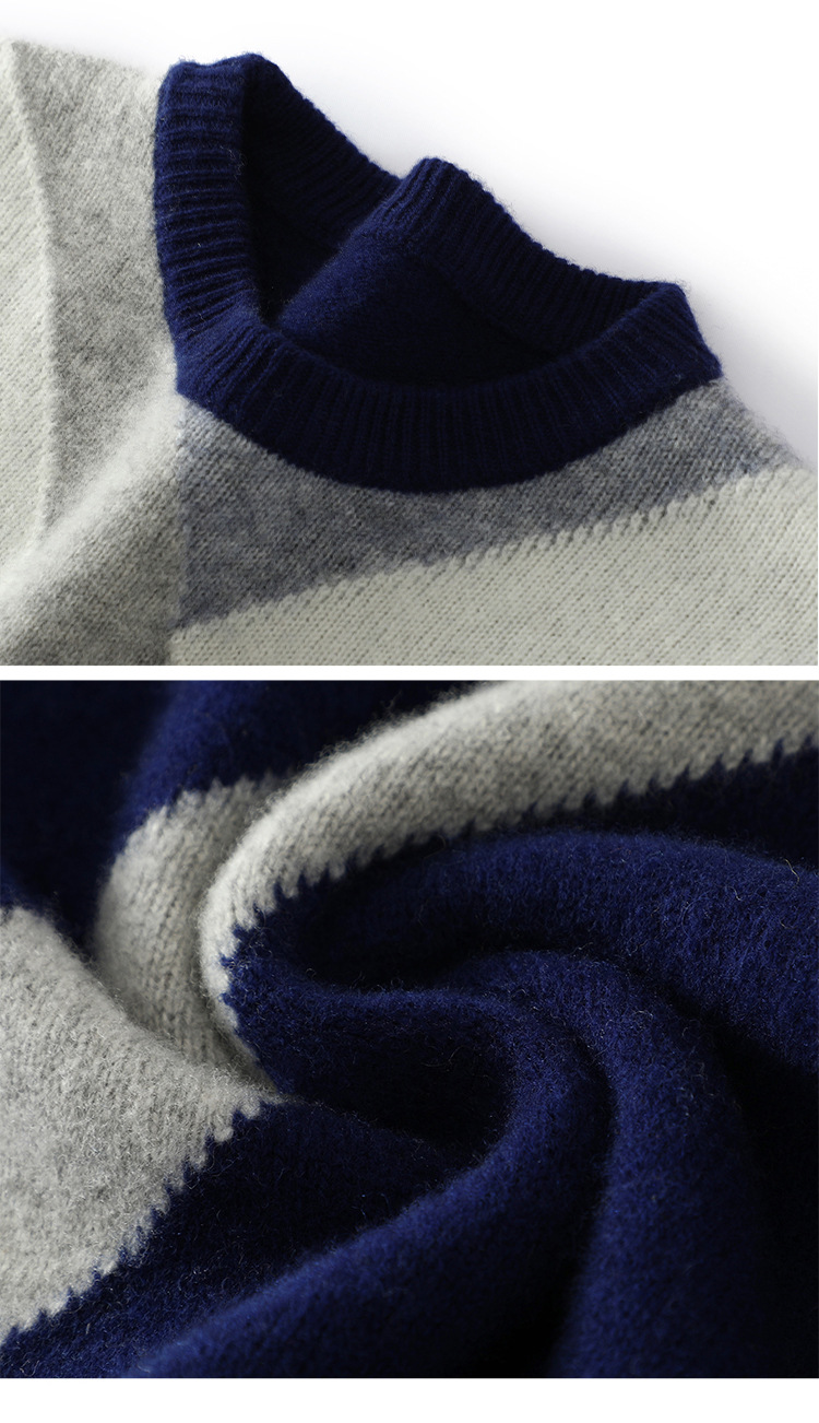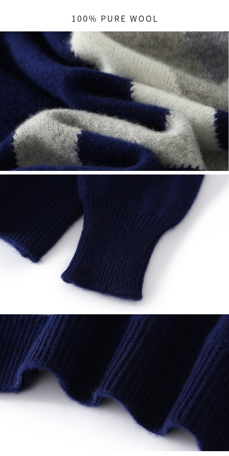 가을과 겨울 새 울 스웨터 남자의 크루넥 컬러 블록 스웨터 느슨한 캐주얼 정품 플러스 사이즈 울 니트베이스스토어 가기