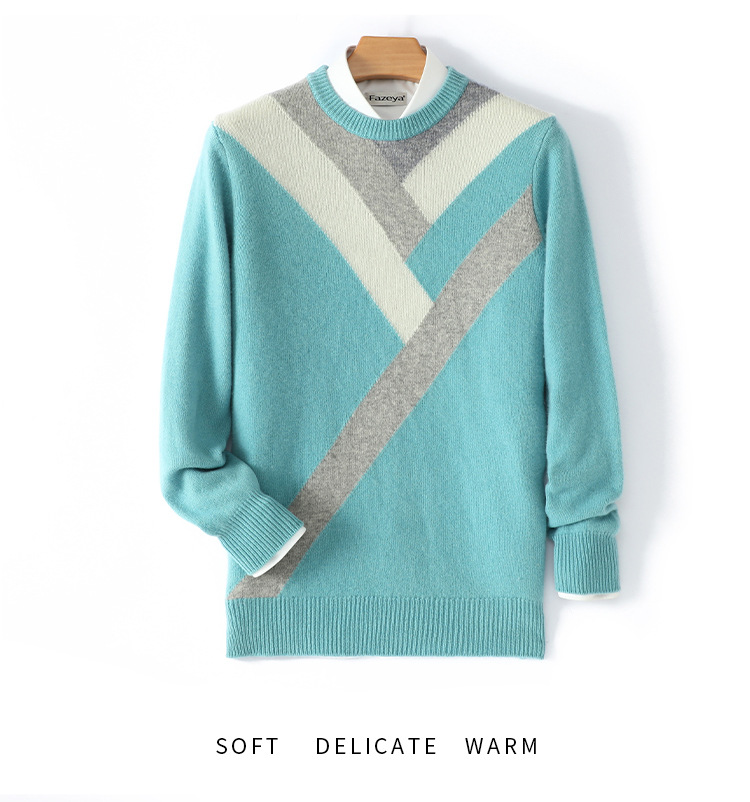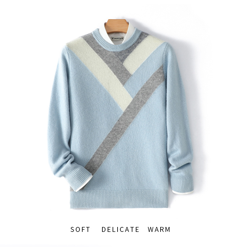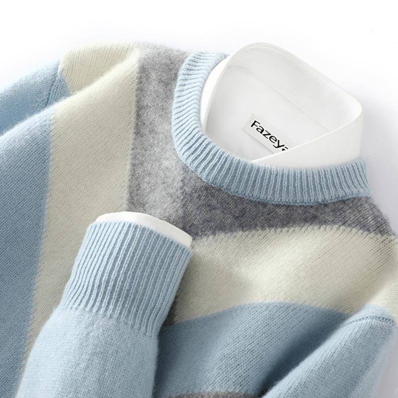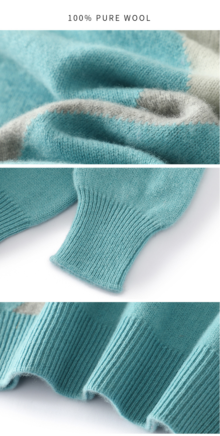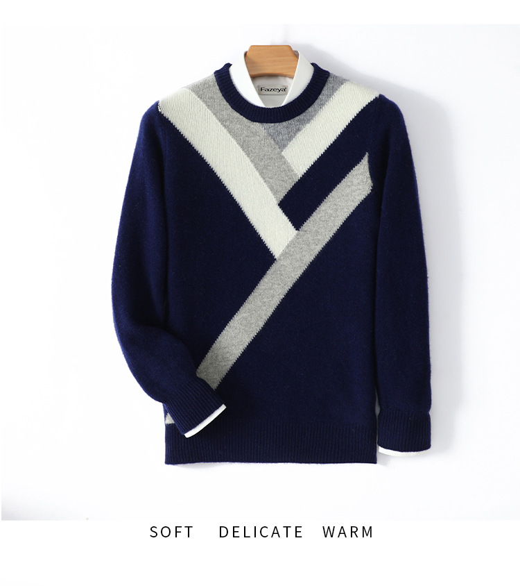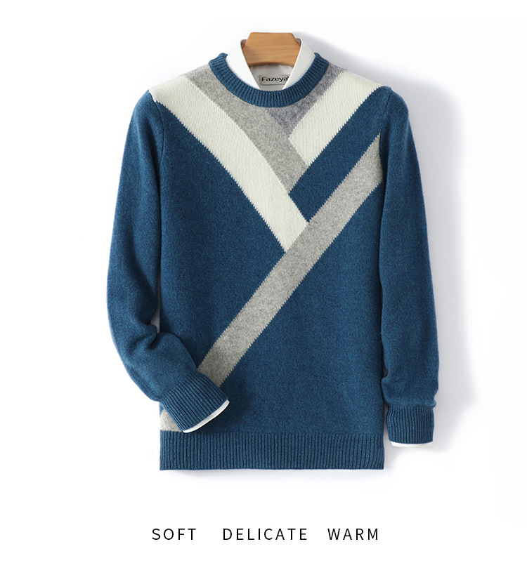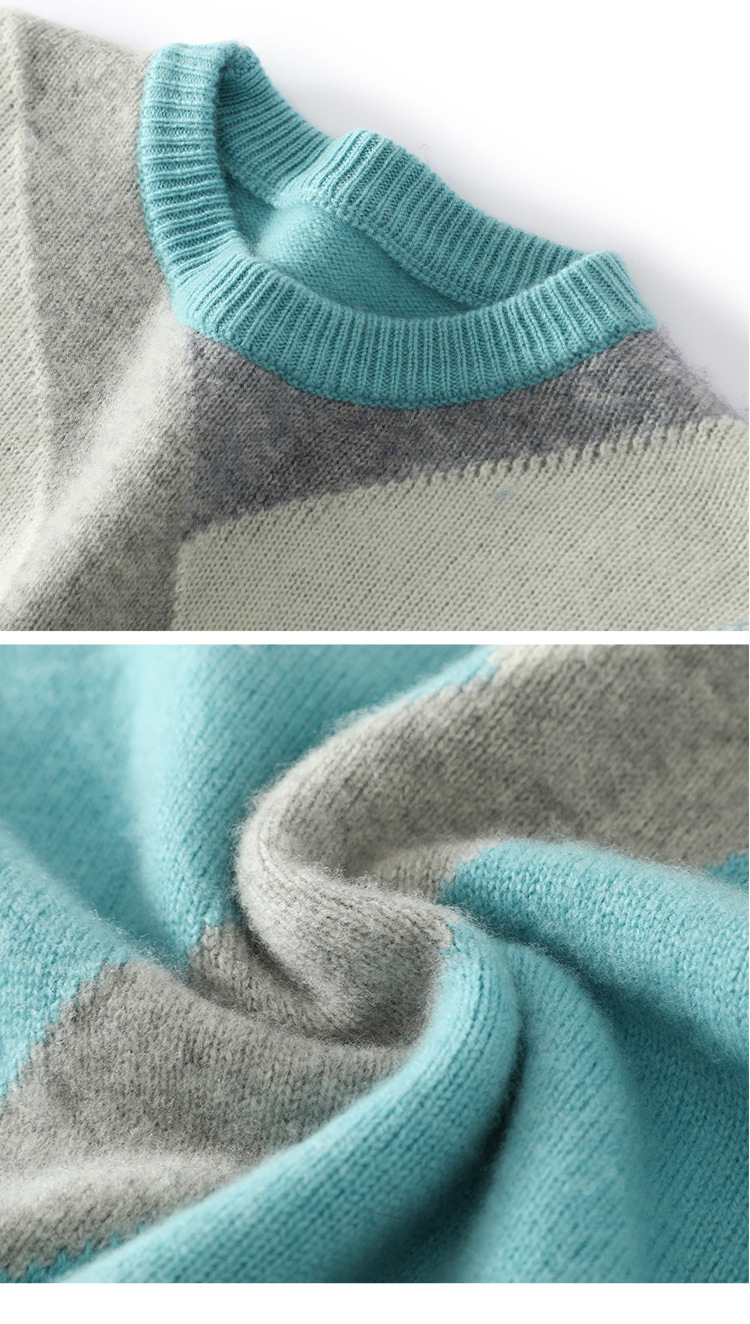 가을과 겨울 새 울 스웨터 남자의 크루넥 컬러 블록 스웨터 느슨한 캐주얼 정품 플러스 사이즈 울 니트베이스스토어 가기