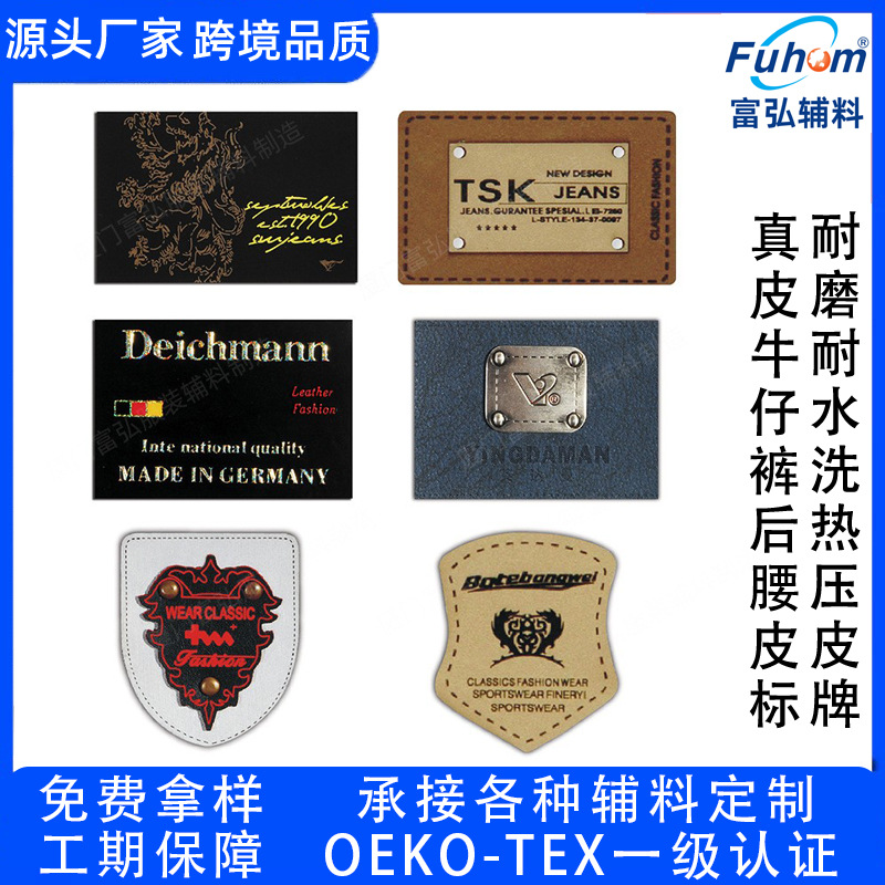 도매 가죽 간판 PU 정품 가죽 청바지 가죽 브랜드 신발 모자 가방 하드웨어 전압 열 프레스 태그 색상 변경 태그