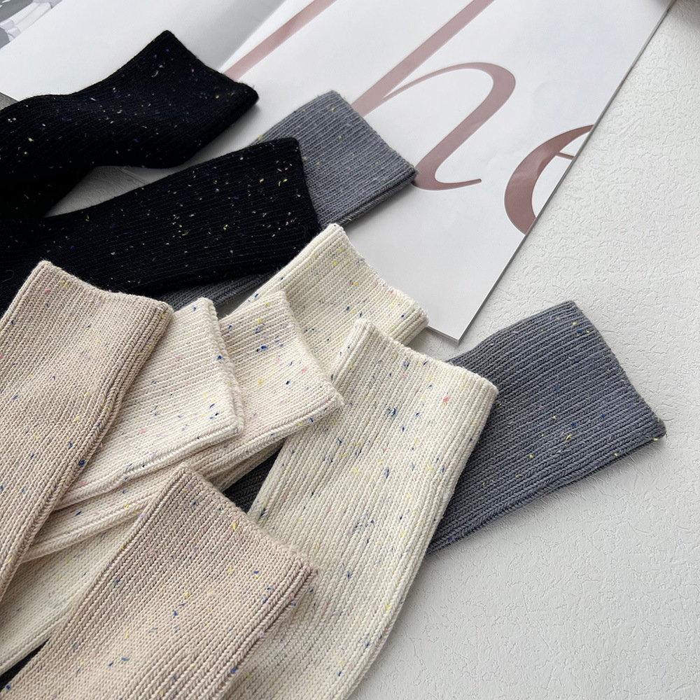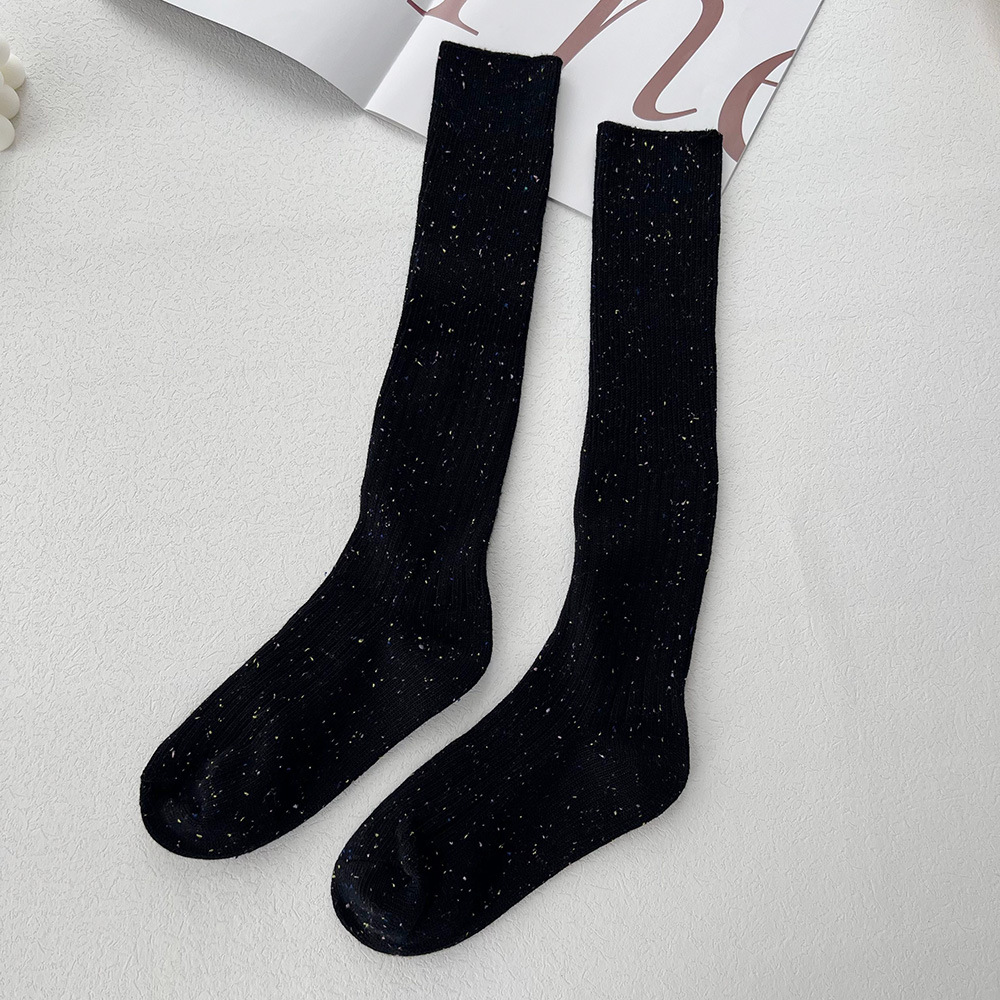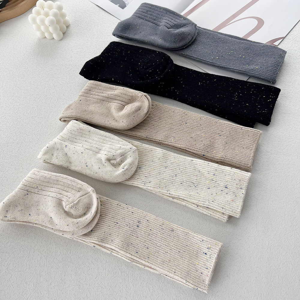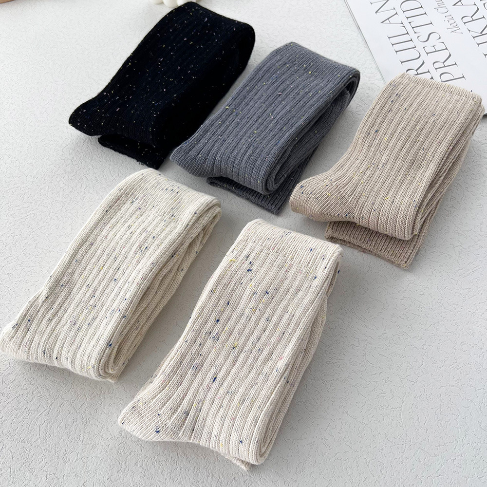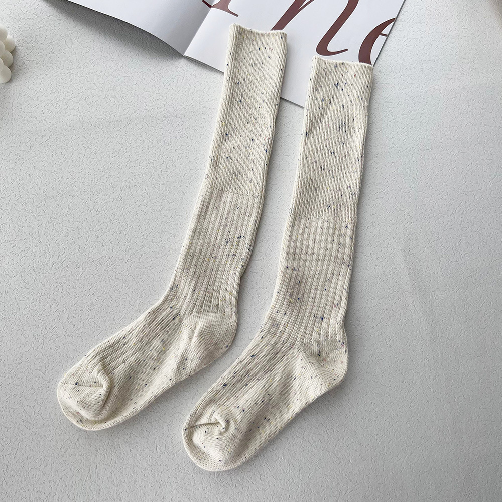 도트 원사 수직 패턴 커프 양말 여성용 중간 두꺼운 더미 양말 두꺼운 라인 한국 무릎 양말 흰색 양말에