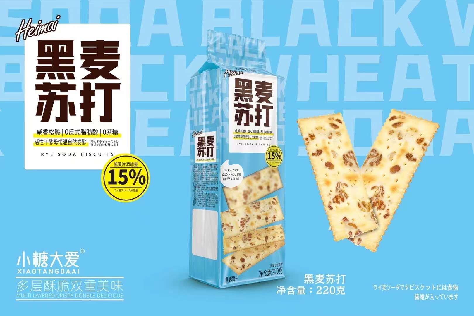 작은 설탕 사랑 호밀 소다 220g 곡물 샌드위치 비스킷 포장 기숙사 캐주얼 스낵 도매스토어 가기