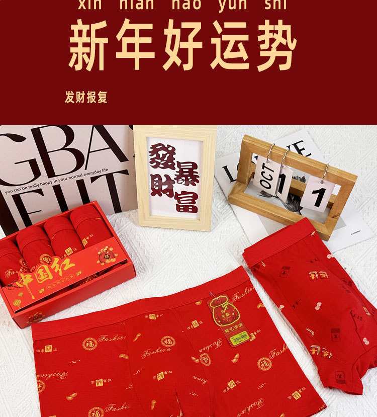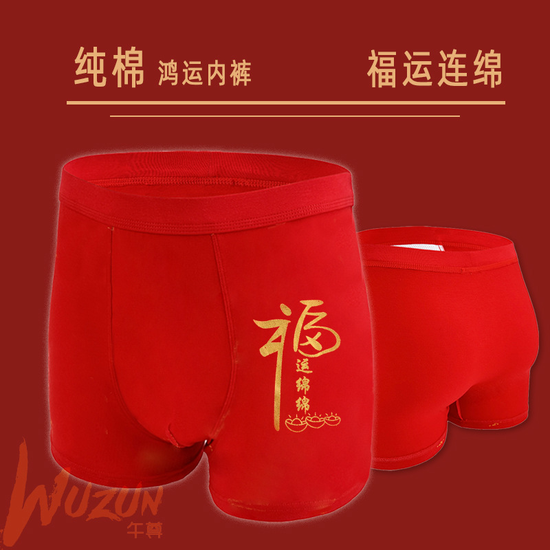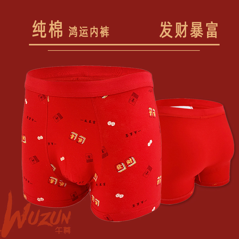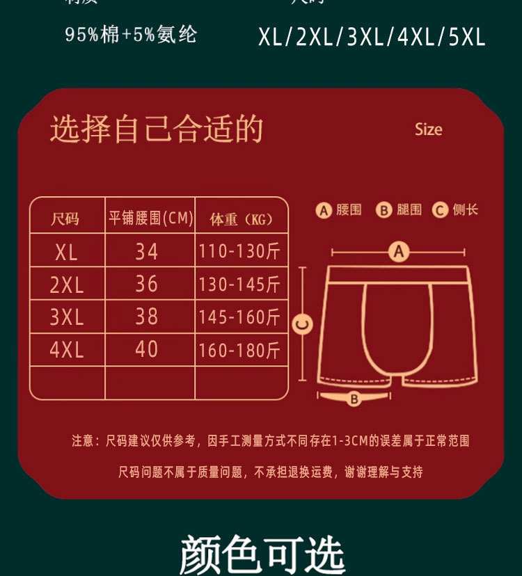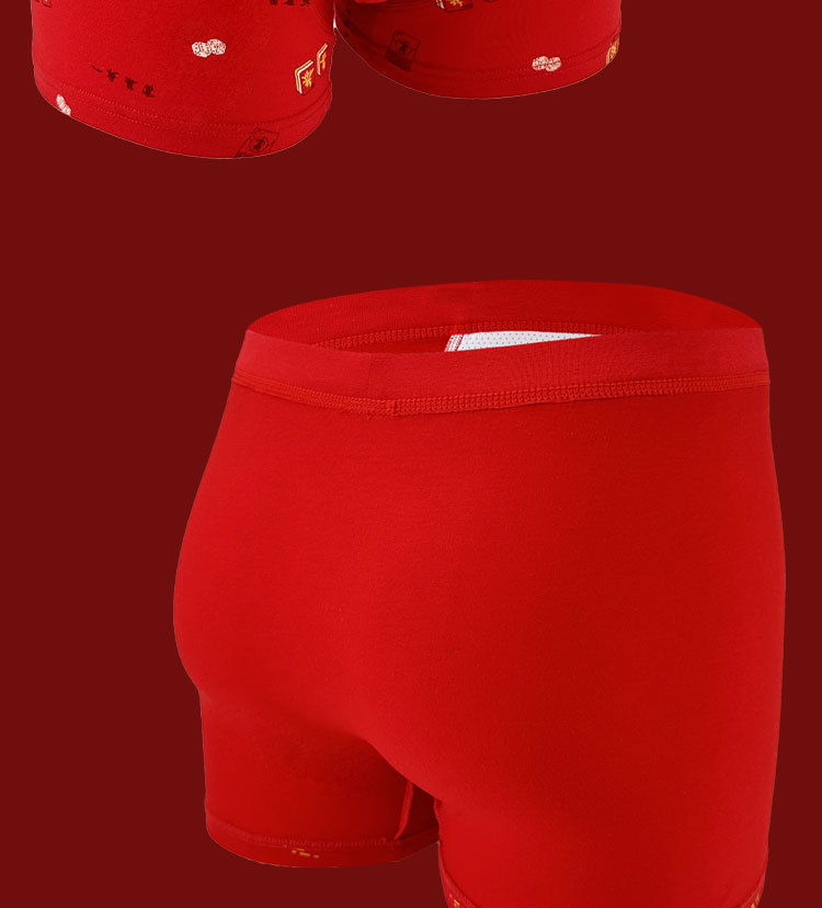 Bermingnian 큰 빨간 인쇄 속옷 남자의 순면 플러스 사이즈 복서 반바지 결혼식 축제 포춘 4 코너 바지스토어 가기
