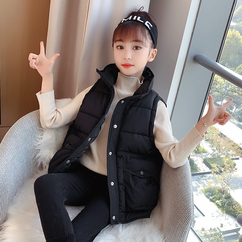 걸스 다운 코튼 조끼 가을과 겨울 2023 새로운 어린이 겨울 여아 어깨 조끼스토어 가기