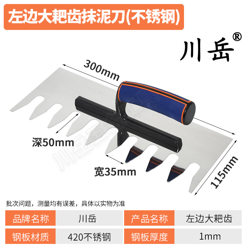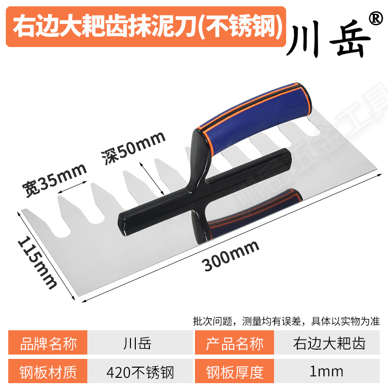 Chuanyue 스테인레스 스틸 큰 갈퀴 치아 석고 칼 배치 스크레이퍼 톱니 석공 장식 상점 타일 울 석고스토어 가기
