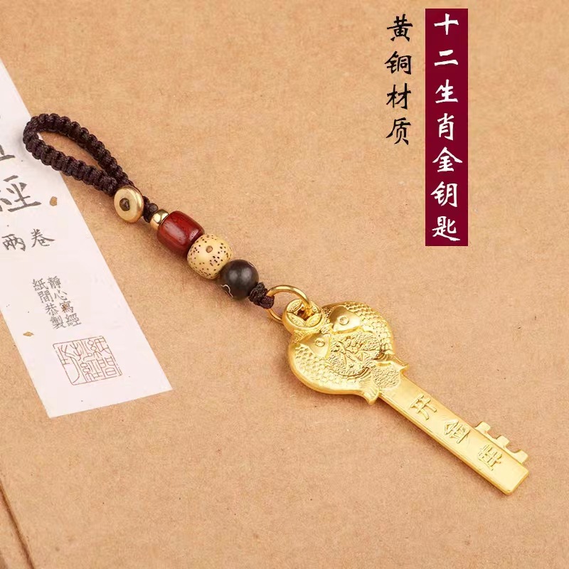 황동 열쇠 고리 펜던트 12 조디악 골드 키 순수 구리 펜던트 자동차 열쇠 고리 남성과 여성을위한 개인화 된 선물