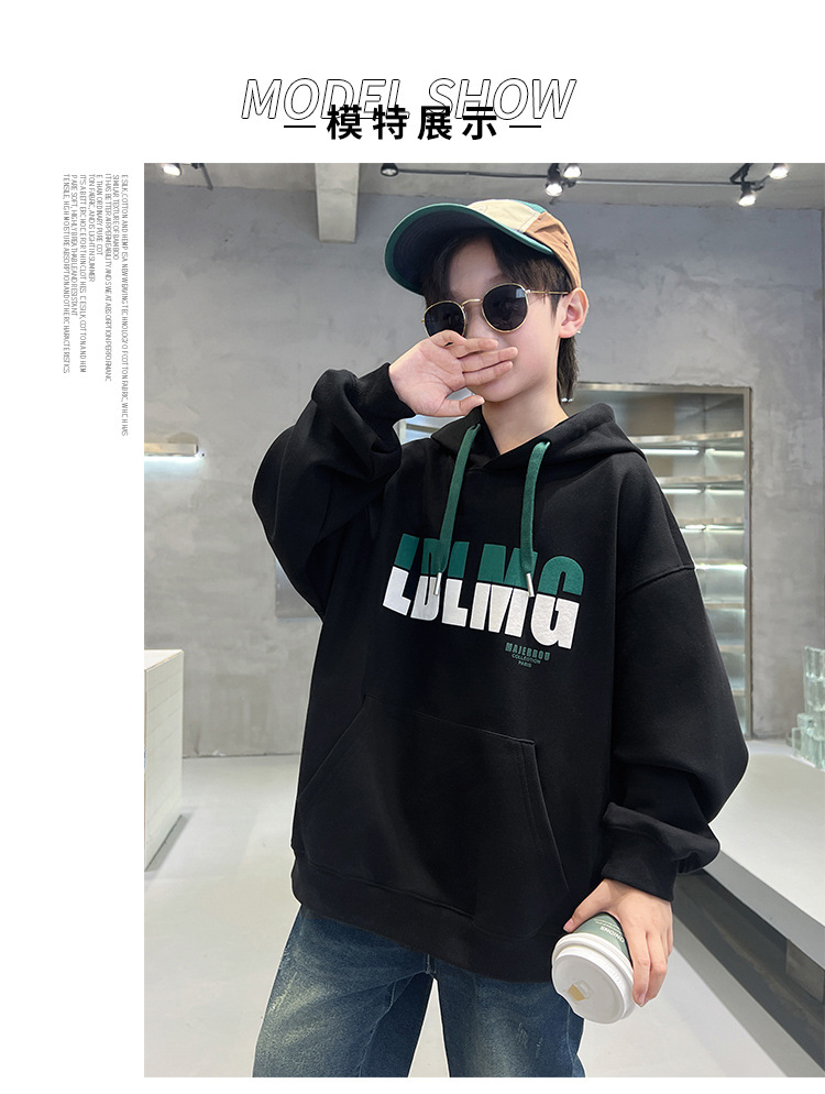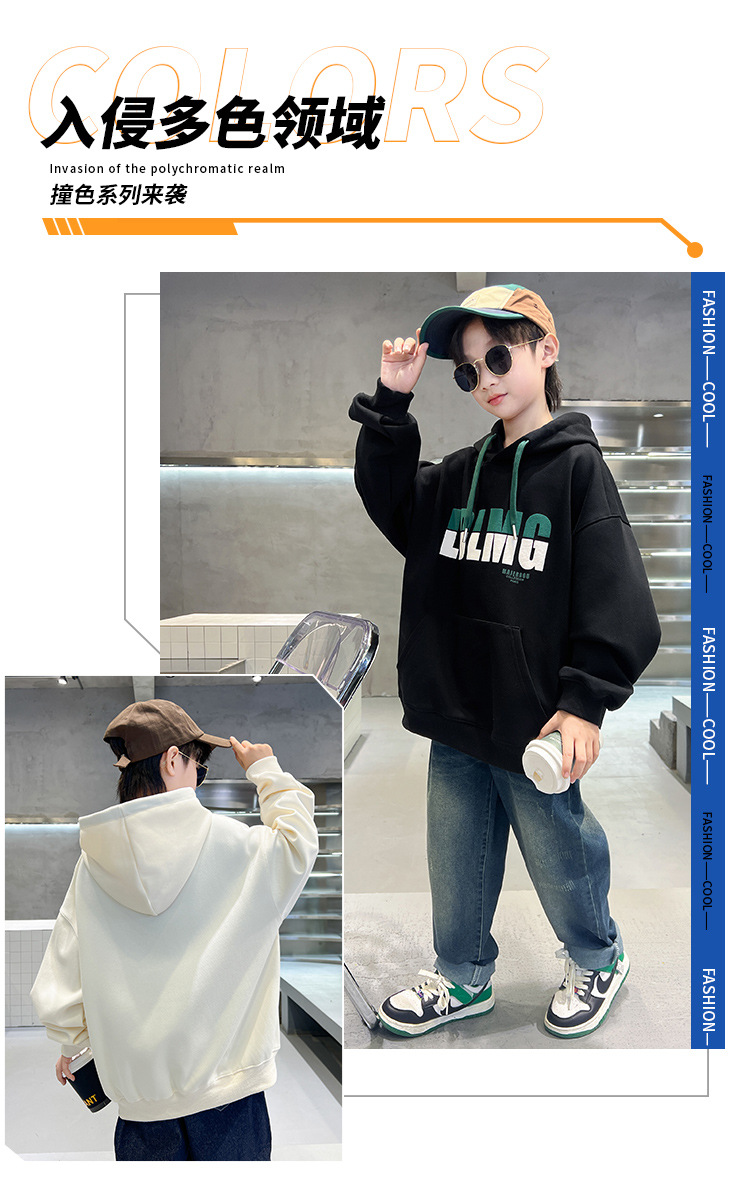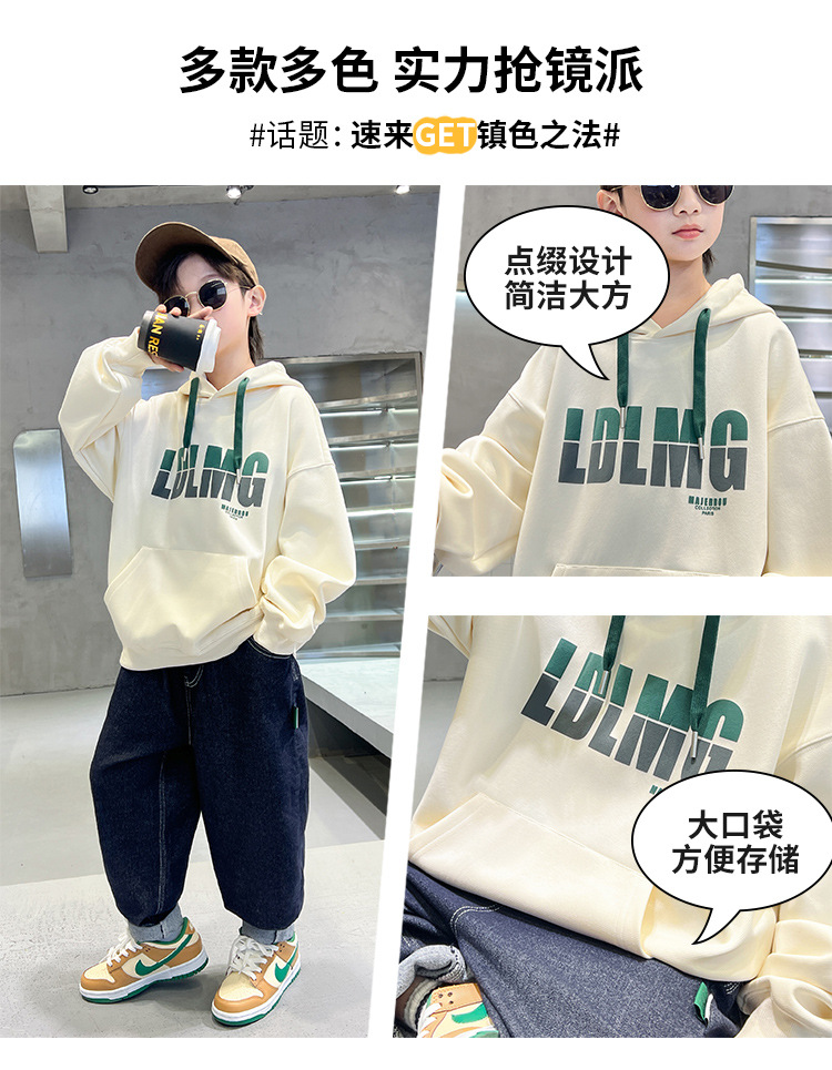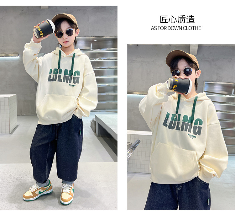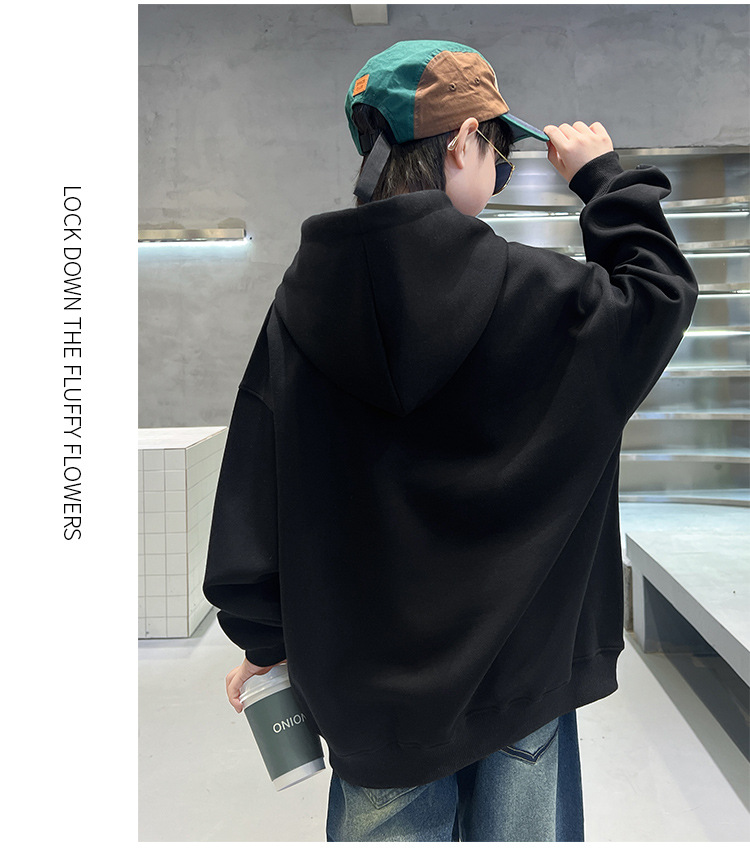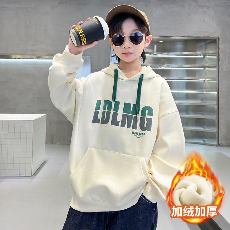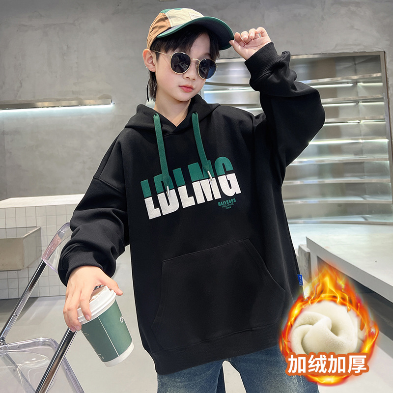 남아 기모 후드 스웨터 가을과 겨울 2023 새로운 어린이 합성 원피스 벨벳 두꺼운 대형 어린이를위한 따뜻한 탑스토어 가기