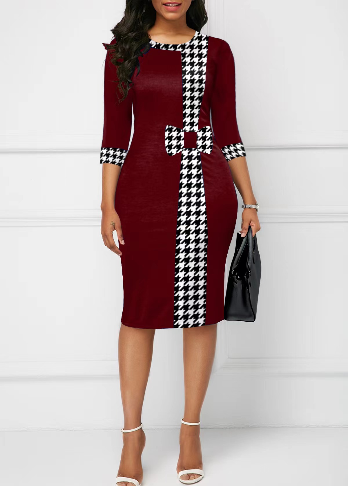 2023 유럽 및 미국 해외직구 아마존 및 알리익스프레스 여성용 힙허깅 7부 소매 퍼즐 프린트 원피스 하운드투스스토어 가기