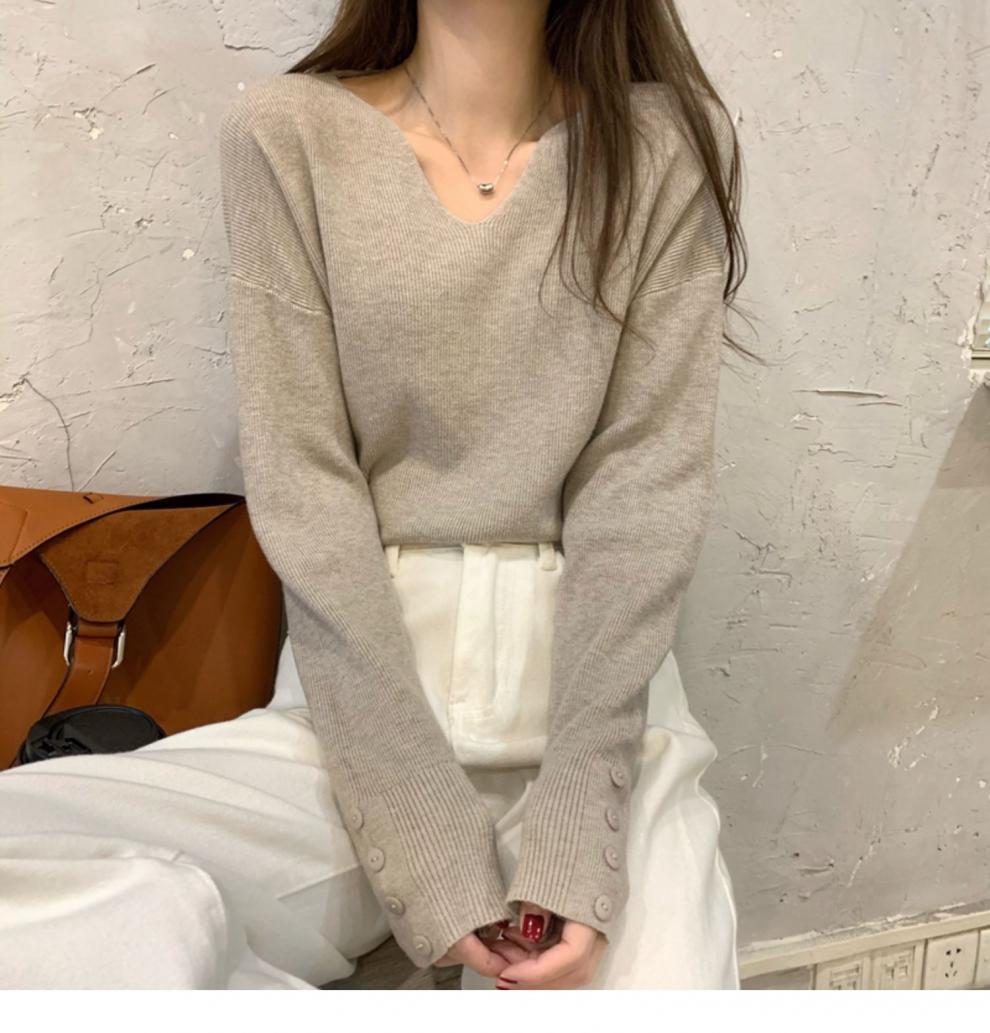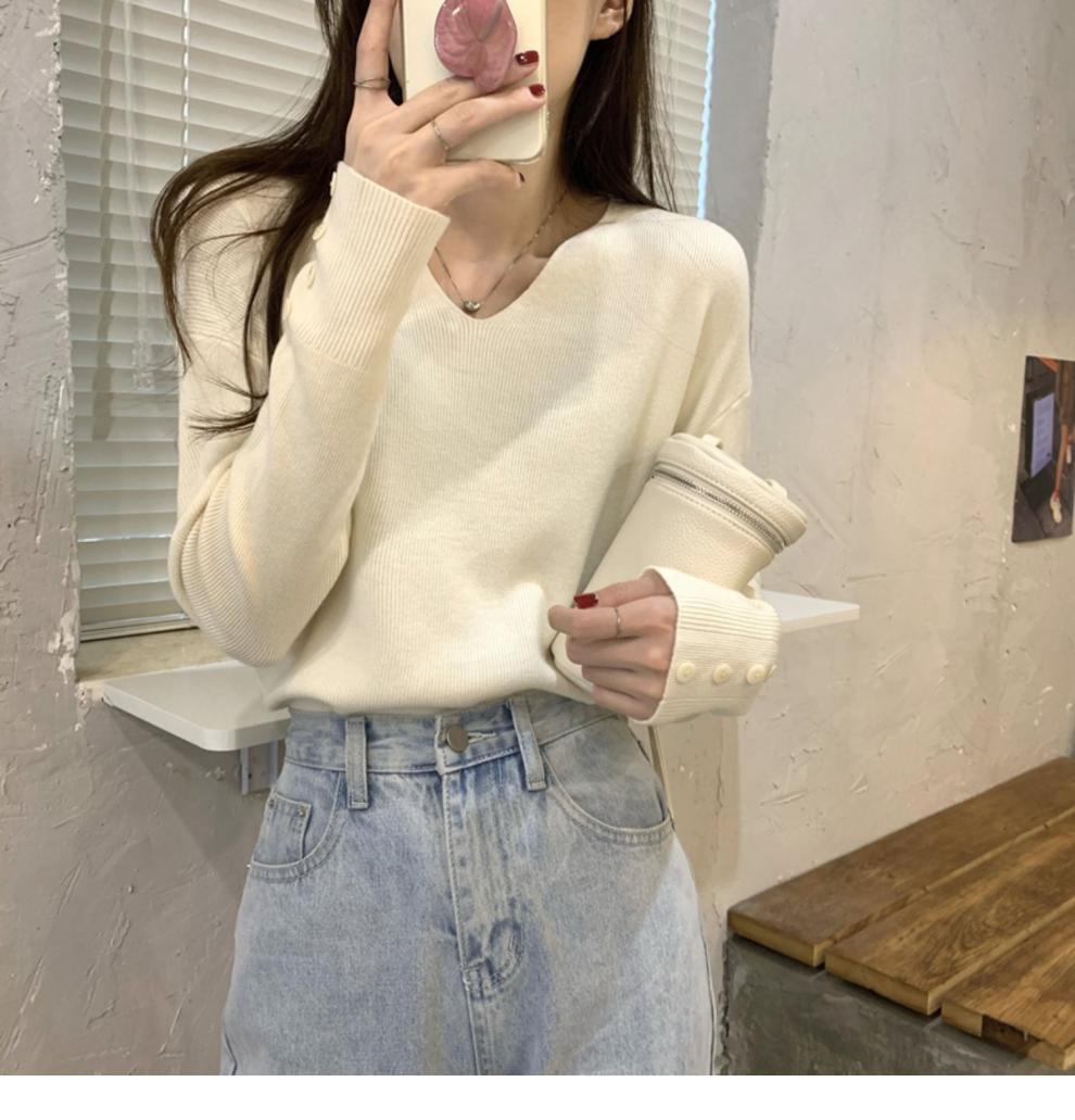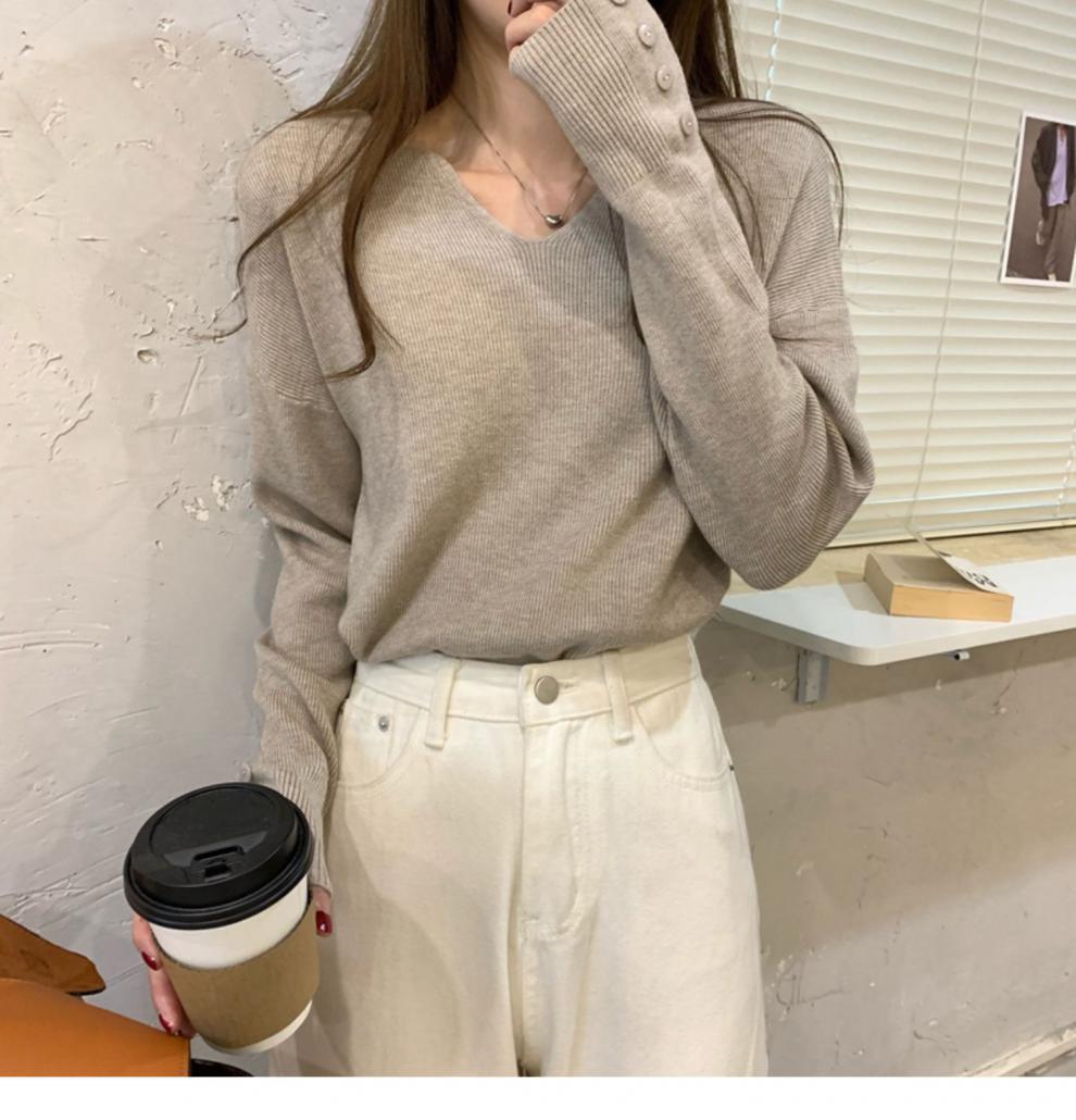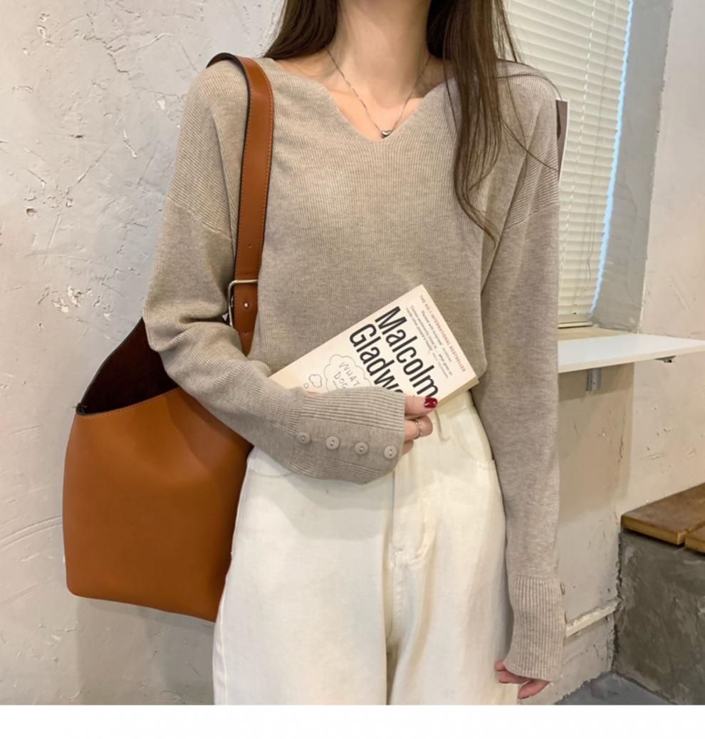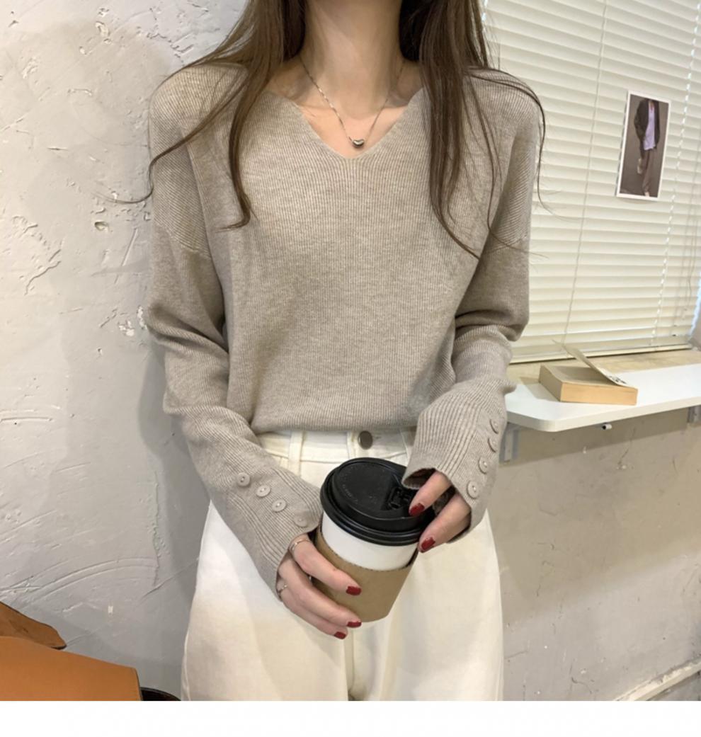 스웨터 2023 새로운 여성의 봄과 가을 V-넥 버튼 긴팔 베이스 셔츠 탑 느슨한 게으른 외부 니트 스웨터스토어 가기