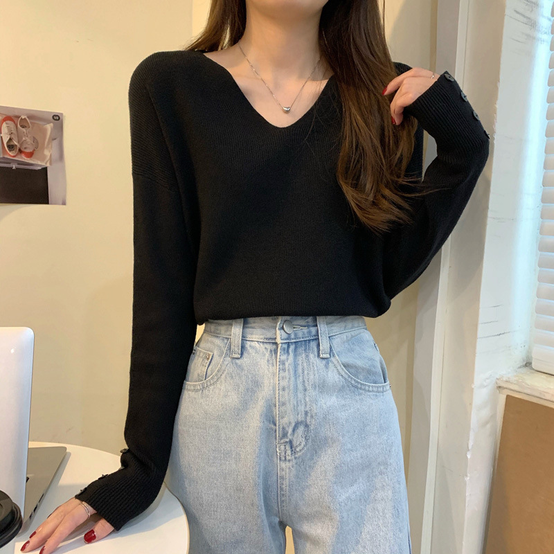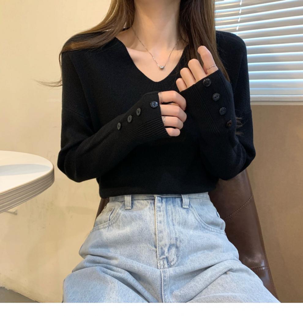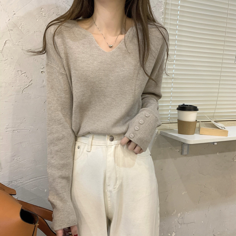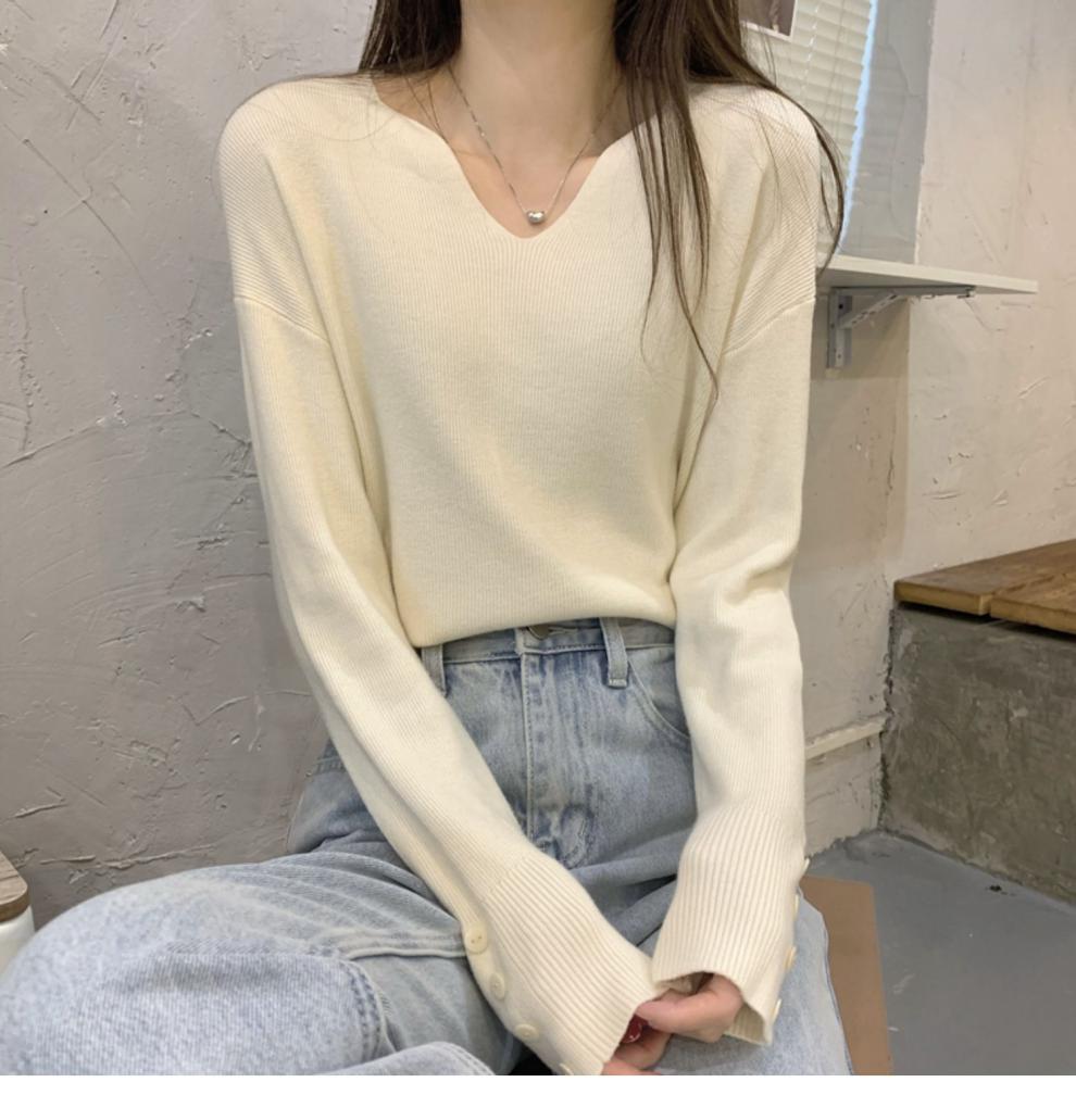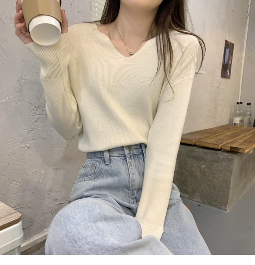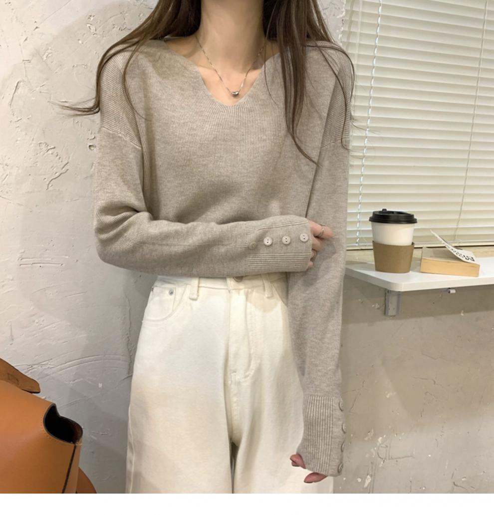 스웨터 2023 새로운 여성의 봄과 가을 V-넥 버튼 긴팔 베이스 셔츠 탑 느슨한 게으른 외부 니트 스웨터스토어 가기