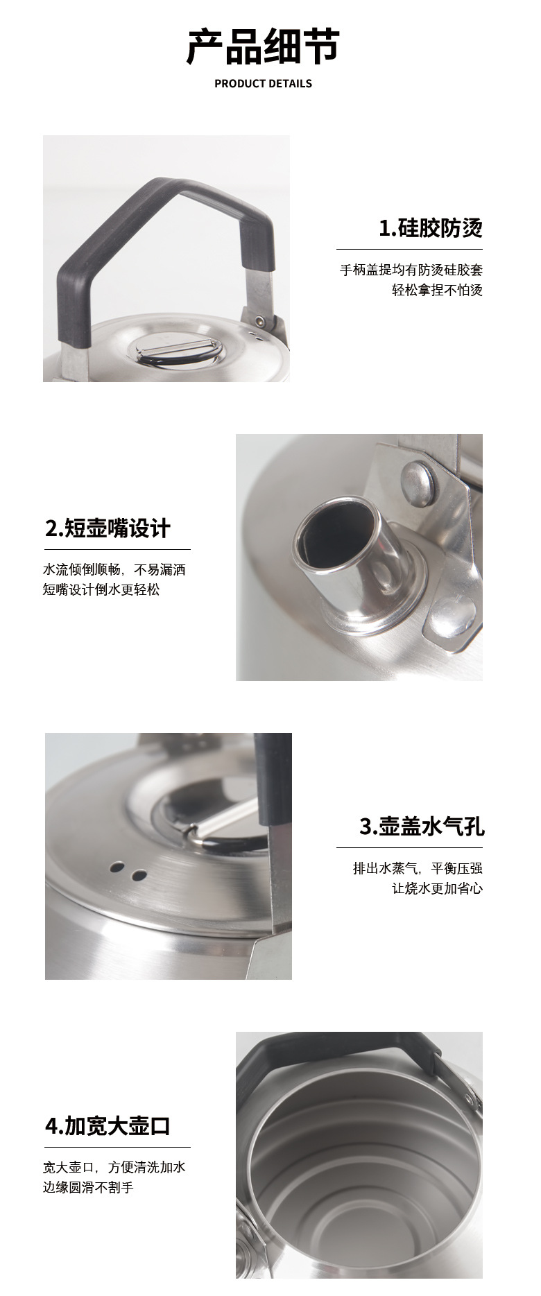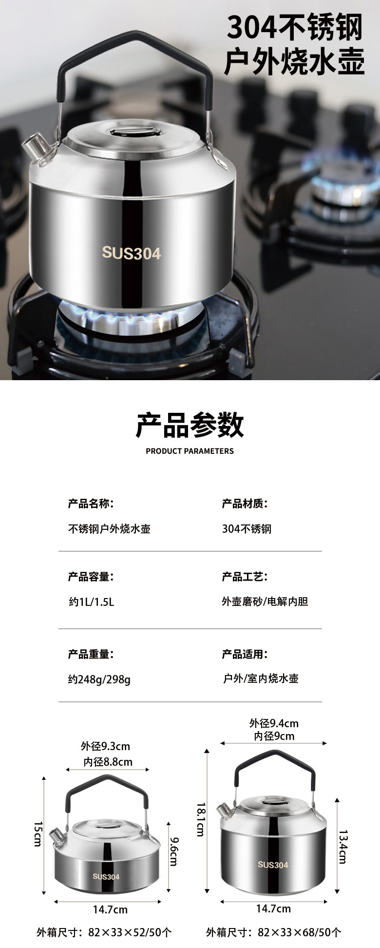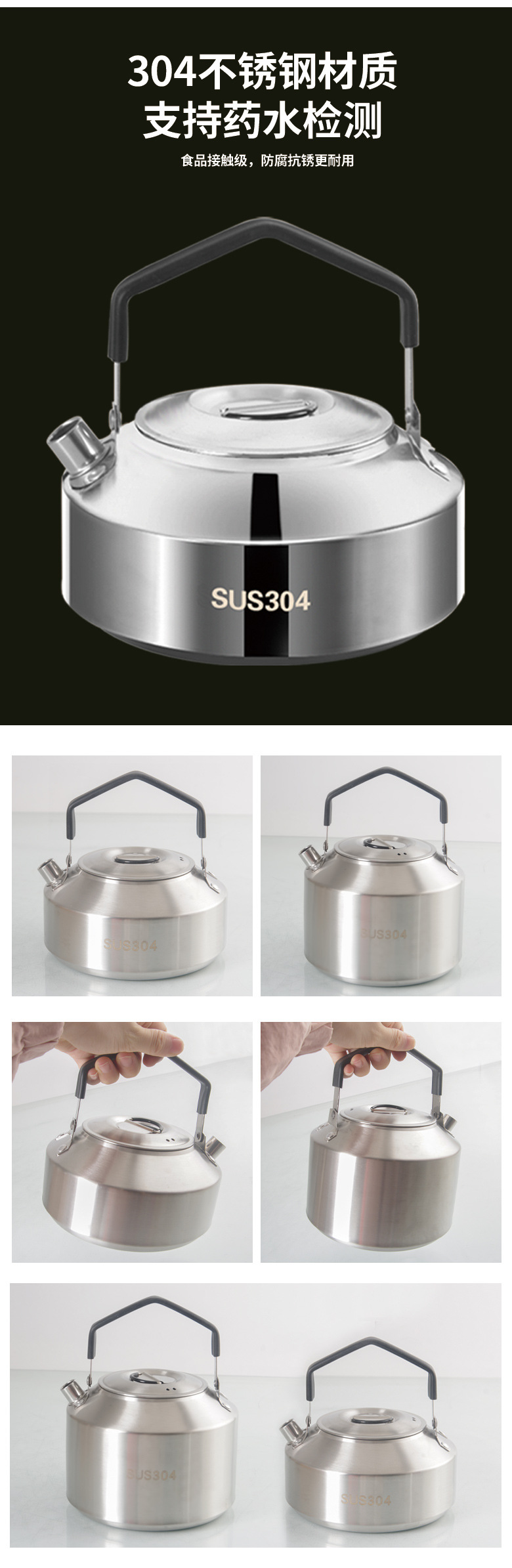 304 스테인레스 스틸 야외 주전자 휴대용 차 끓는 주전자 자율 주행 캠핑 장비 요리 주전자