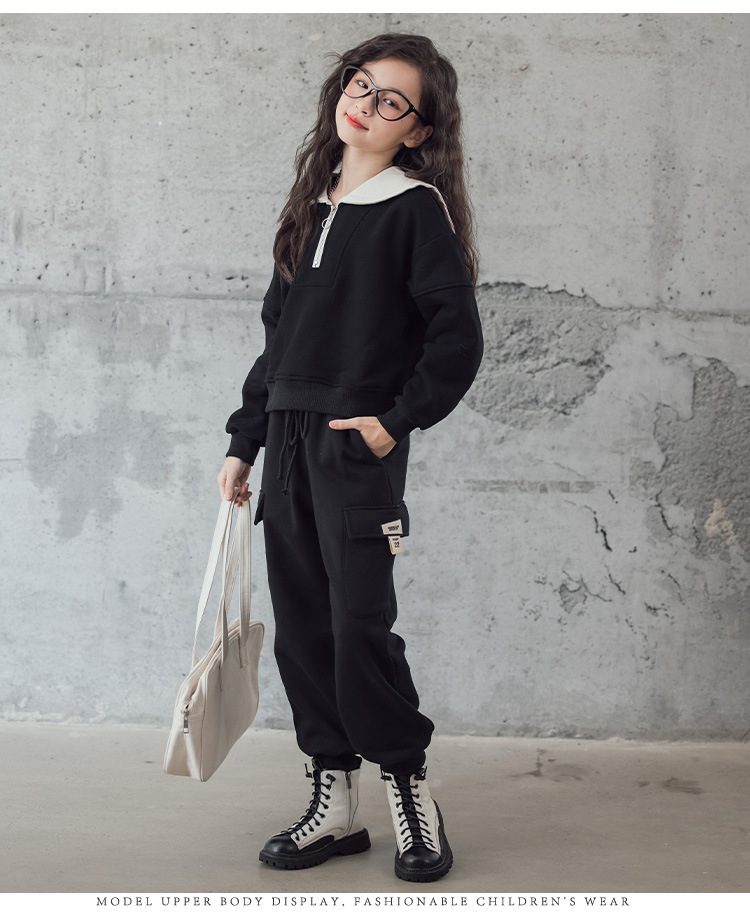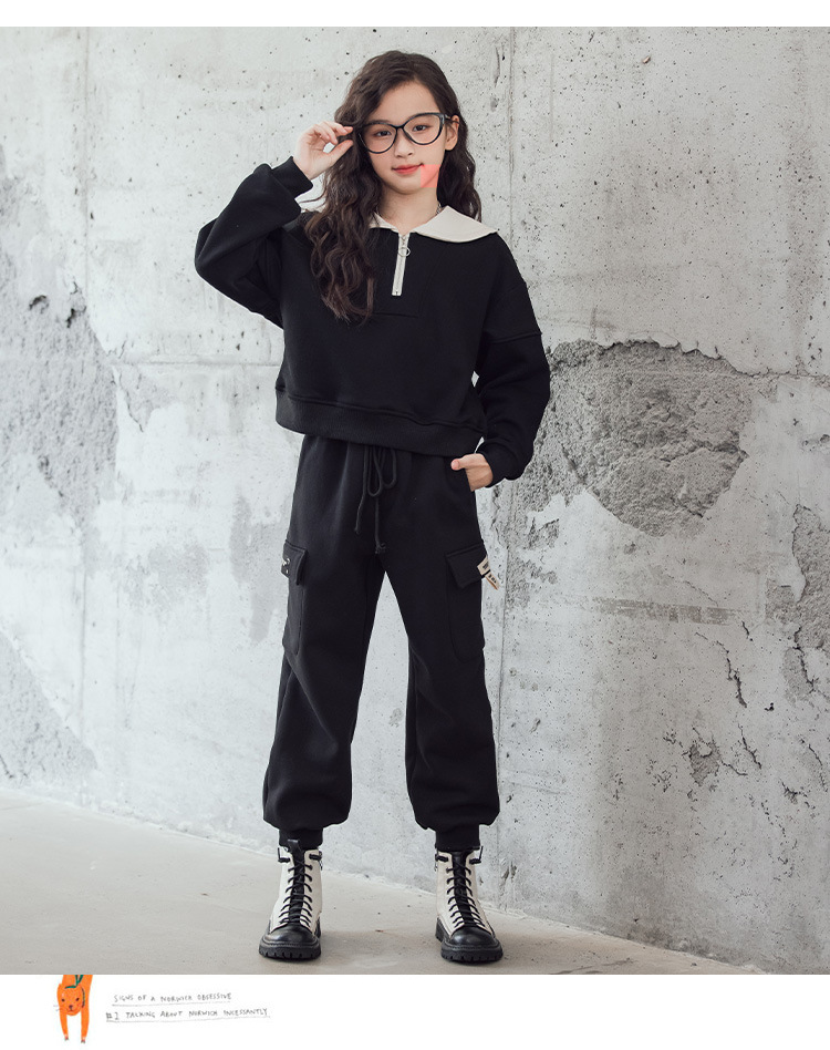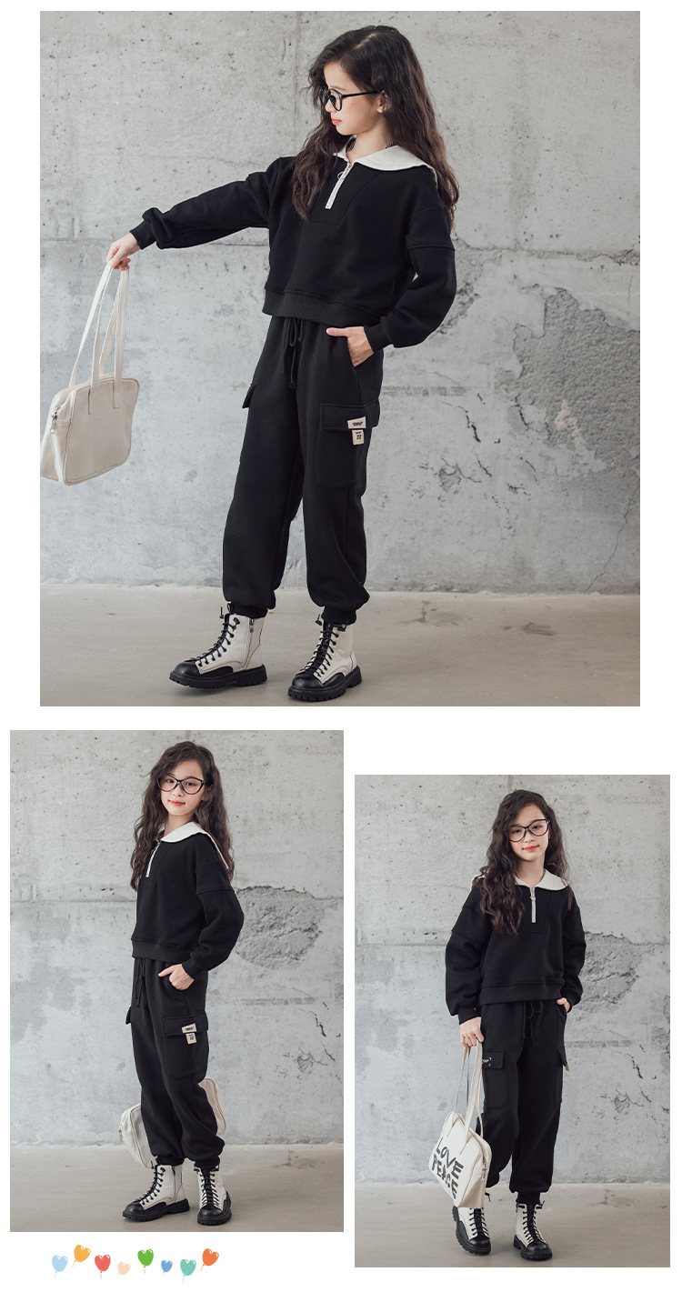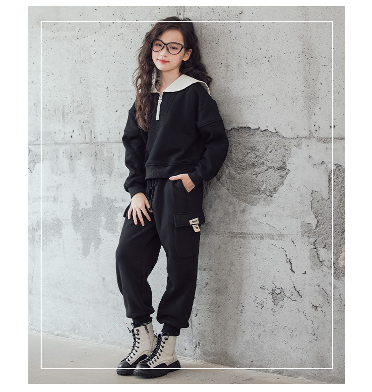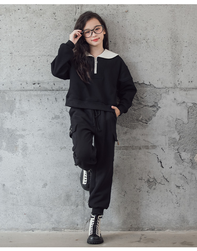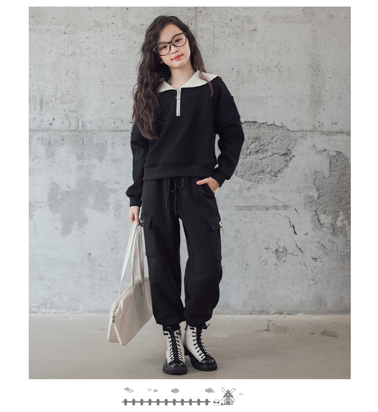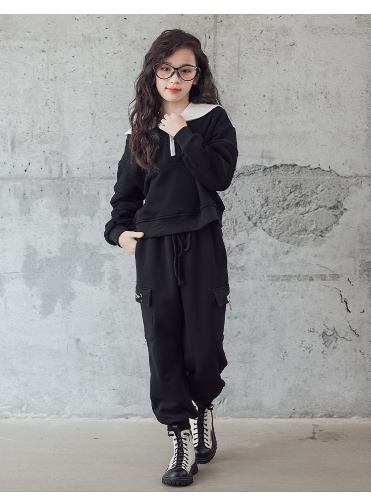 여아 벨벳 세트 겨울 새로운 대비 색상 대학 스타일 웨스턴 스타일 스웨터 두꺼운 따뜻한 블랙 캐주얼 바지