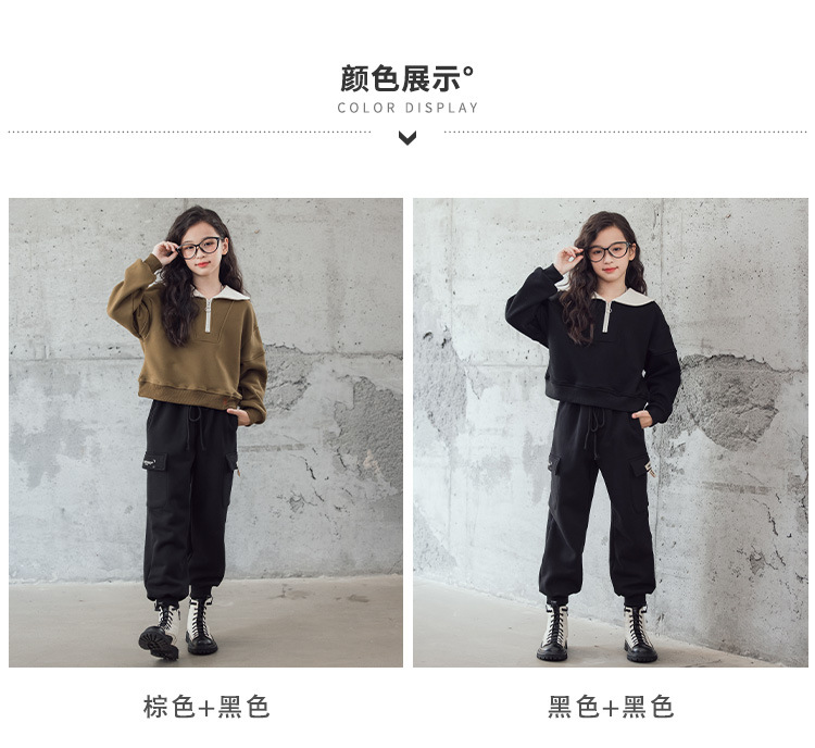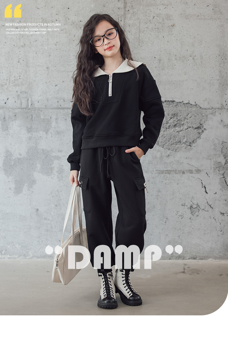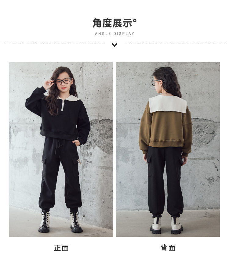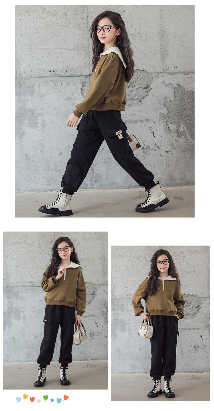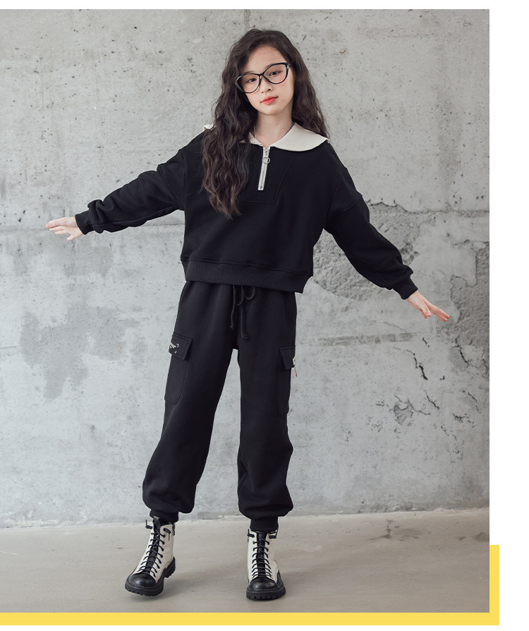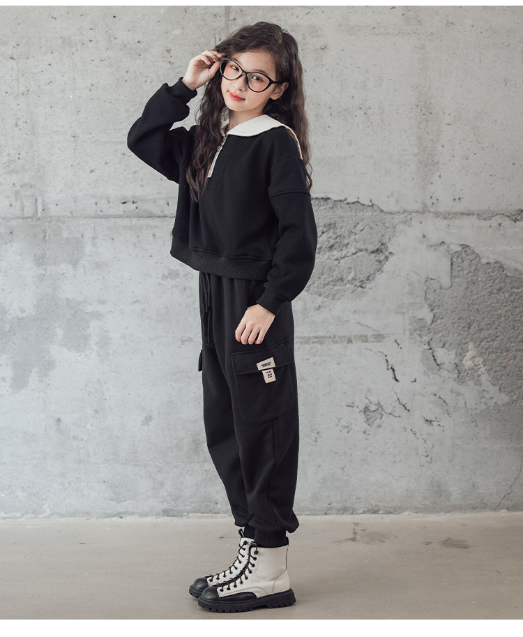 여아 벨벳 세트 겨울 새로운 대비 색상 대학 스타일 웨스턴 스타일 스웨터 두꺼운 따뜻한 블랙 캐주얼 바지