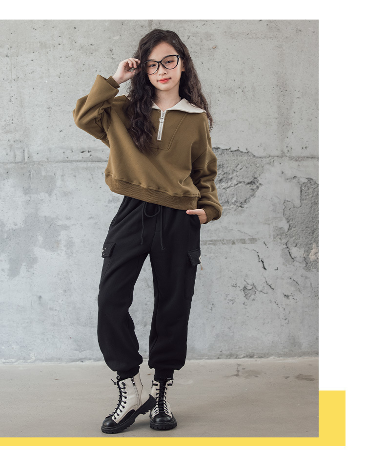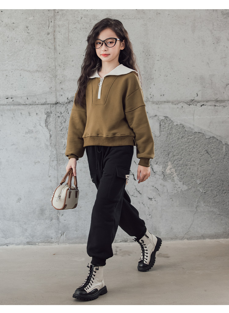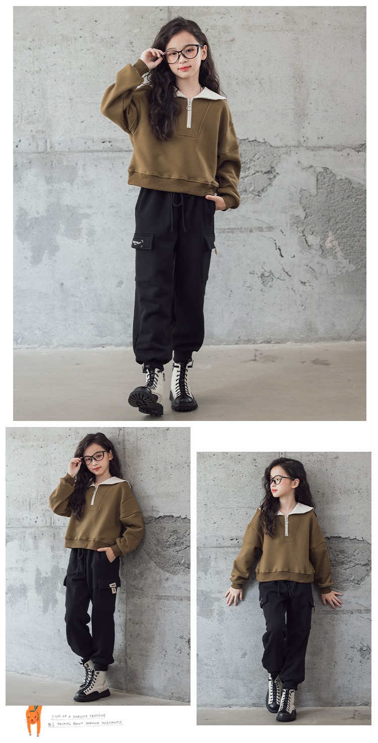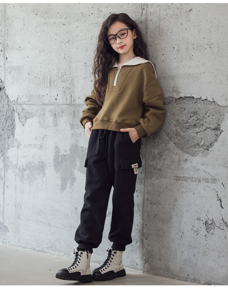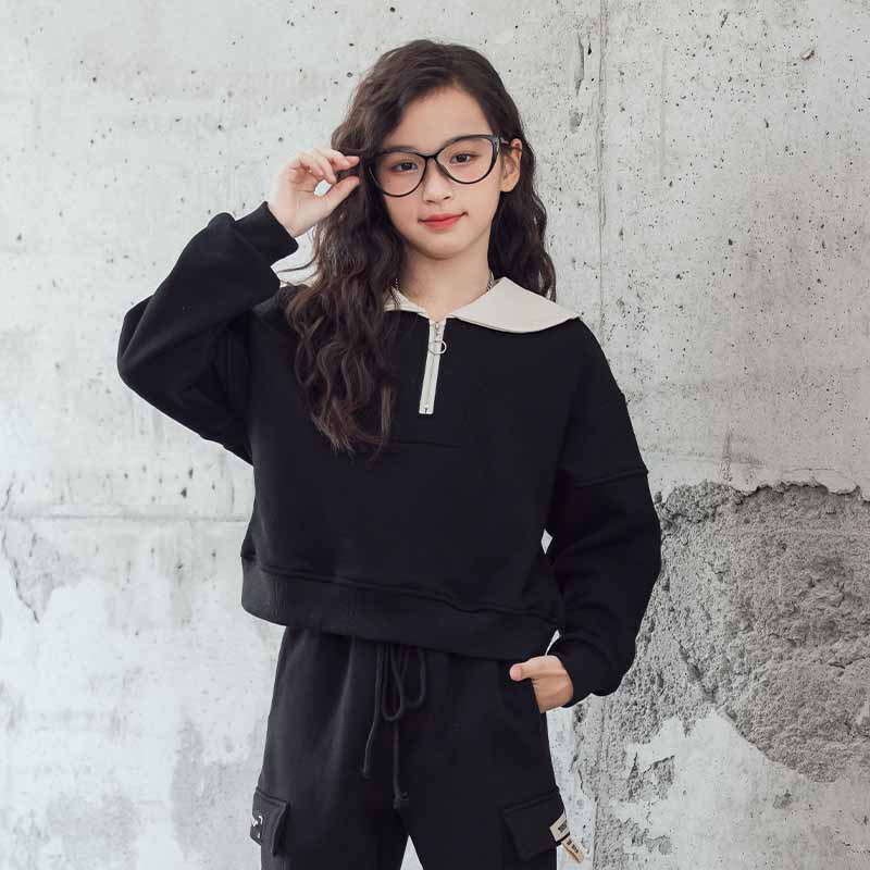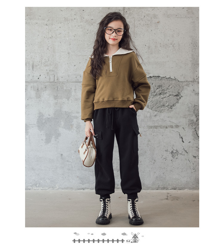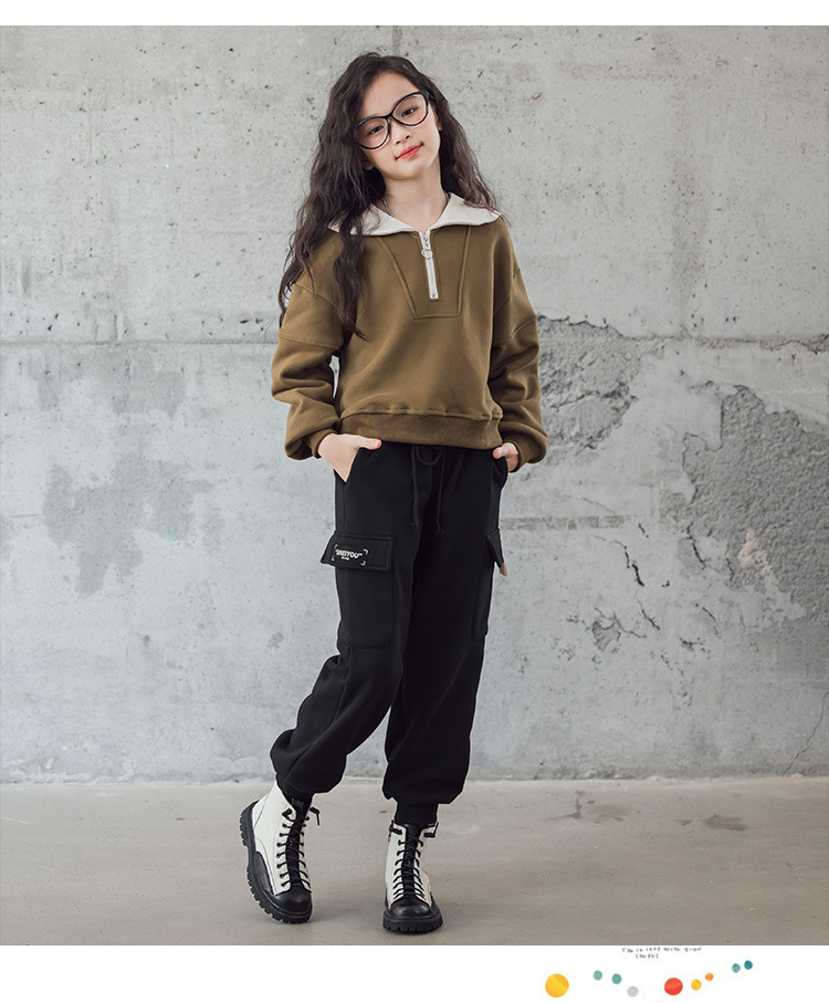 여아 벨벳 세트 겨울 새로운 대비 색상 대학 스타일 웨스턴 스타일 스웨터 두꺼운 따뜻한 블랙 캐주얼 바지