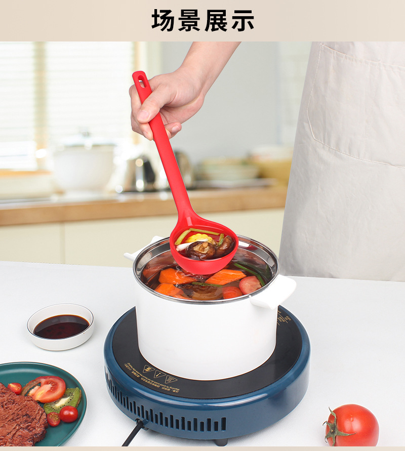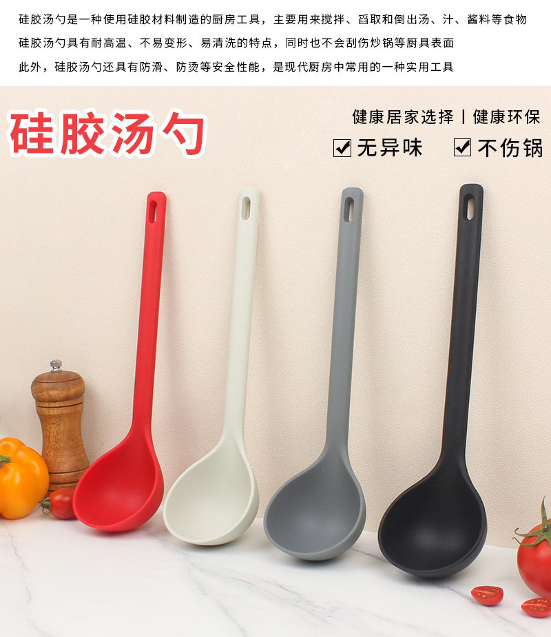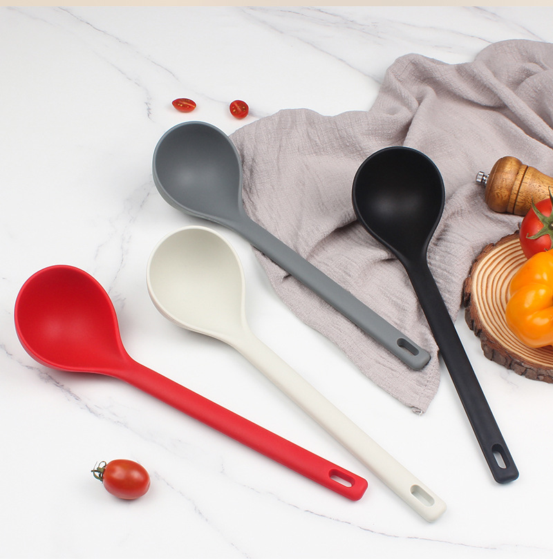 주방용 실리콘 스푼, 고온 방지 실리콘 긴 손잡이 깊은 스푼, 붙지 않는 요리 스푼