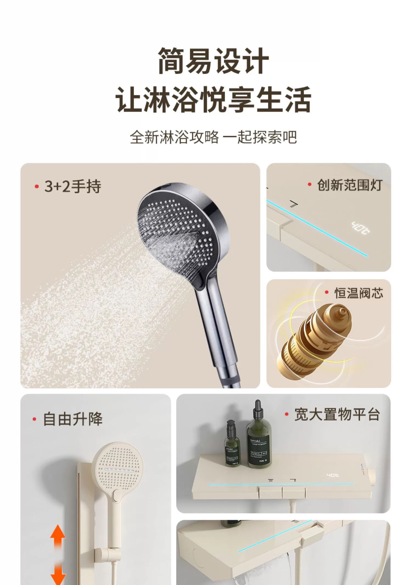 모든 구리 분위기 가벼운 크림 화이트 크림 건 회색 샤워 세트 가정용 샤워 샤워 목욕 간단한 욕조 수도꼭지