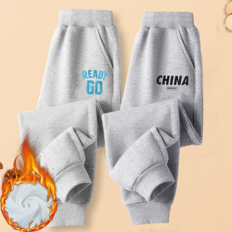 기모 두꺼운 단색 어린이 운동복 아동복 스포츠 바지 서양 스타일 겨울 여아 운동복 큰 어린이 바지 소년