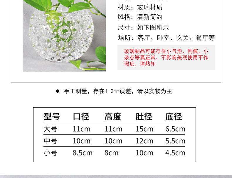 도매 수경 식물 유리 병 녹색 딜 구리 돈 잔디 거실 꽃꽂이 수경 투명 크리스탈 볼 수경 유리스토어 가기