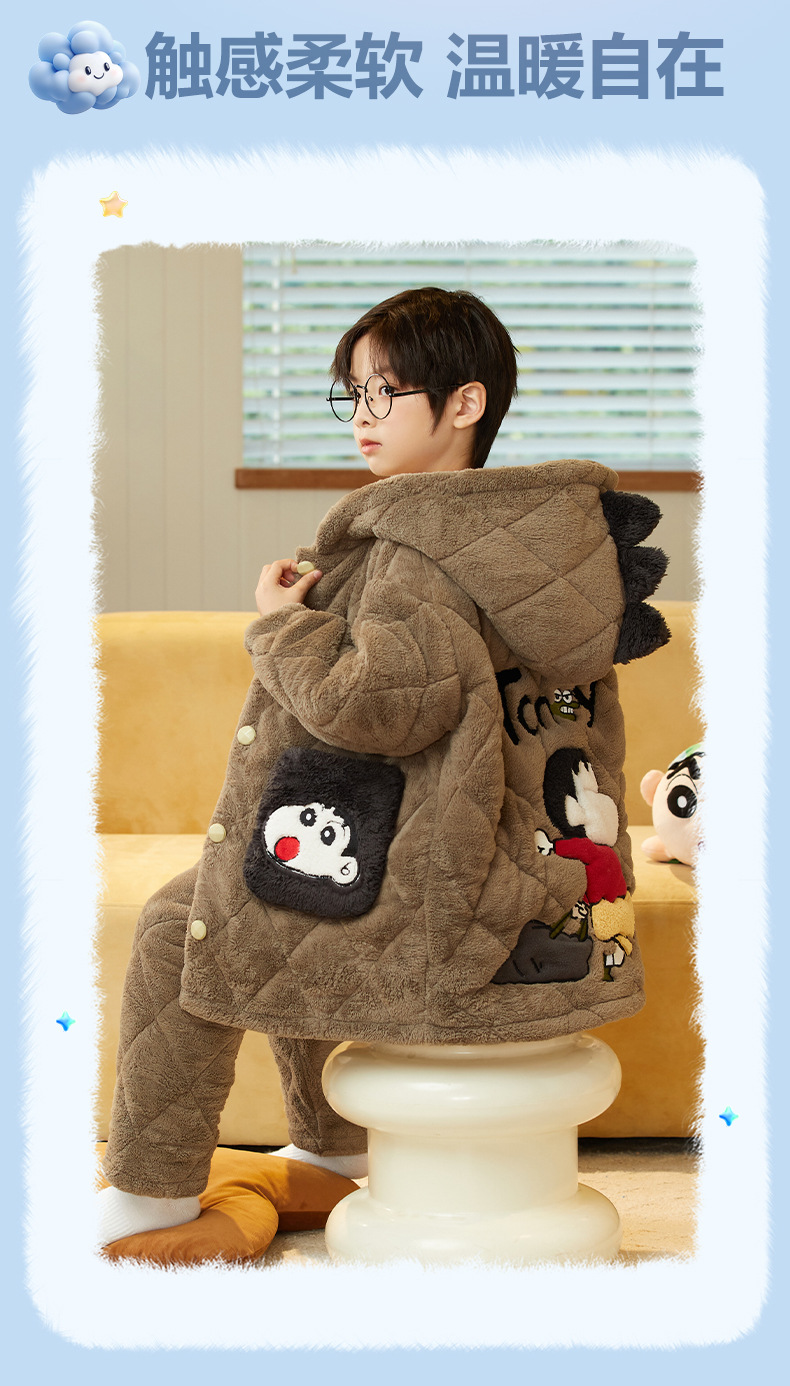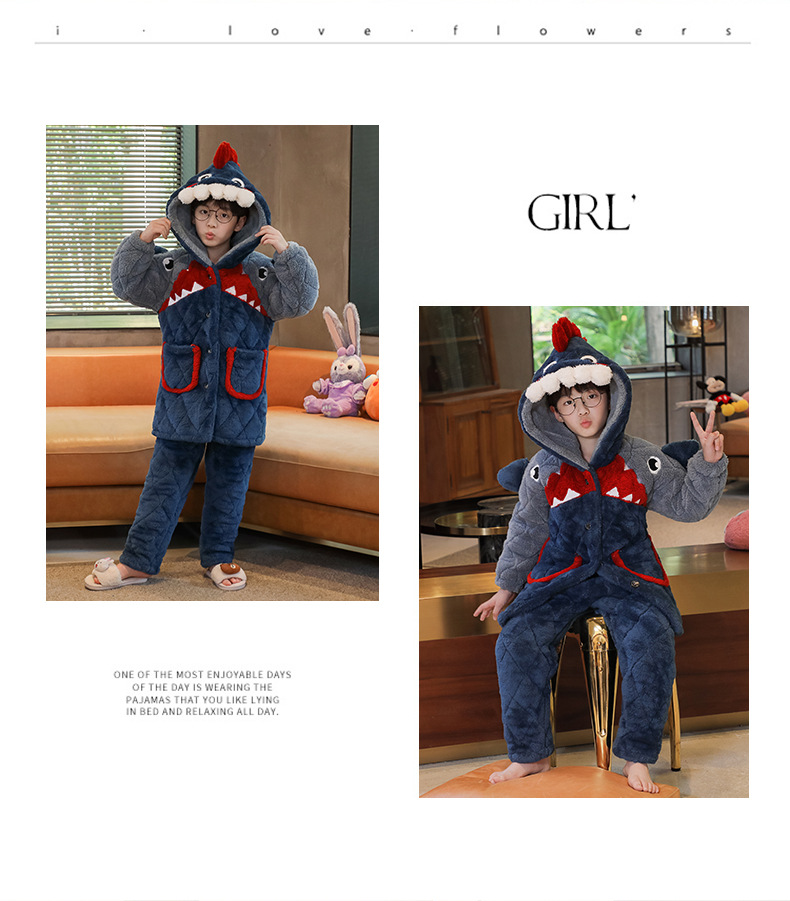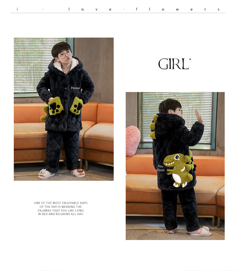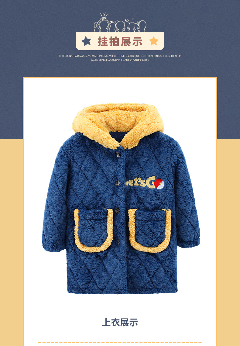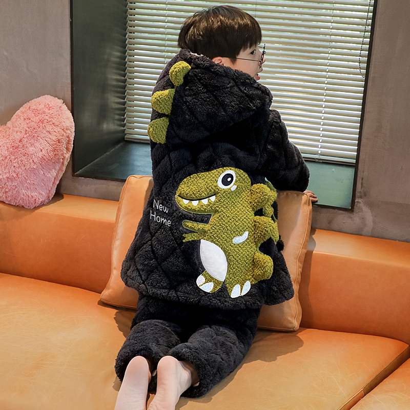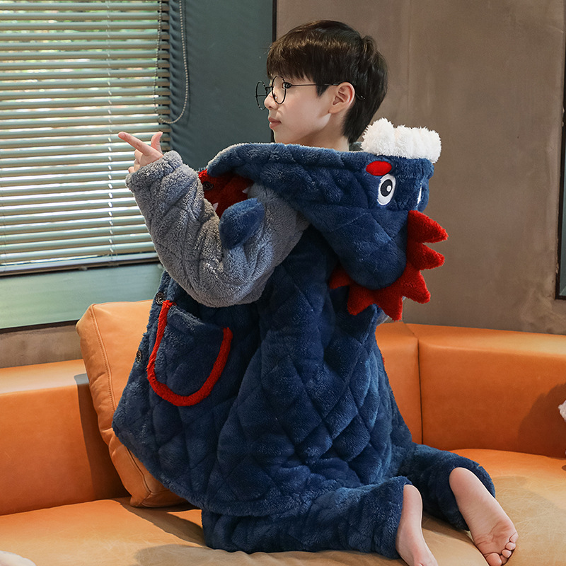 겨울 두꺼운 3 층 퀼트 어린이 플란넬 잠옷 남아 중간 긴 잠옷 소년 산호 양털 가정 의류스토어 가기
