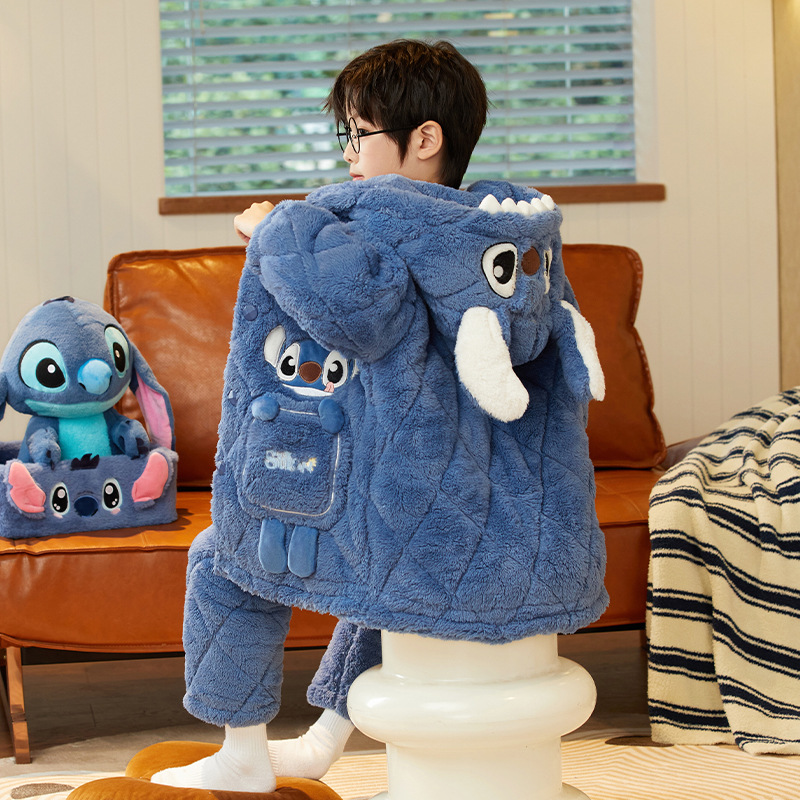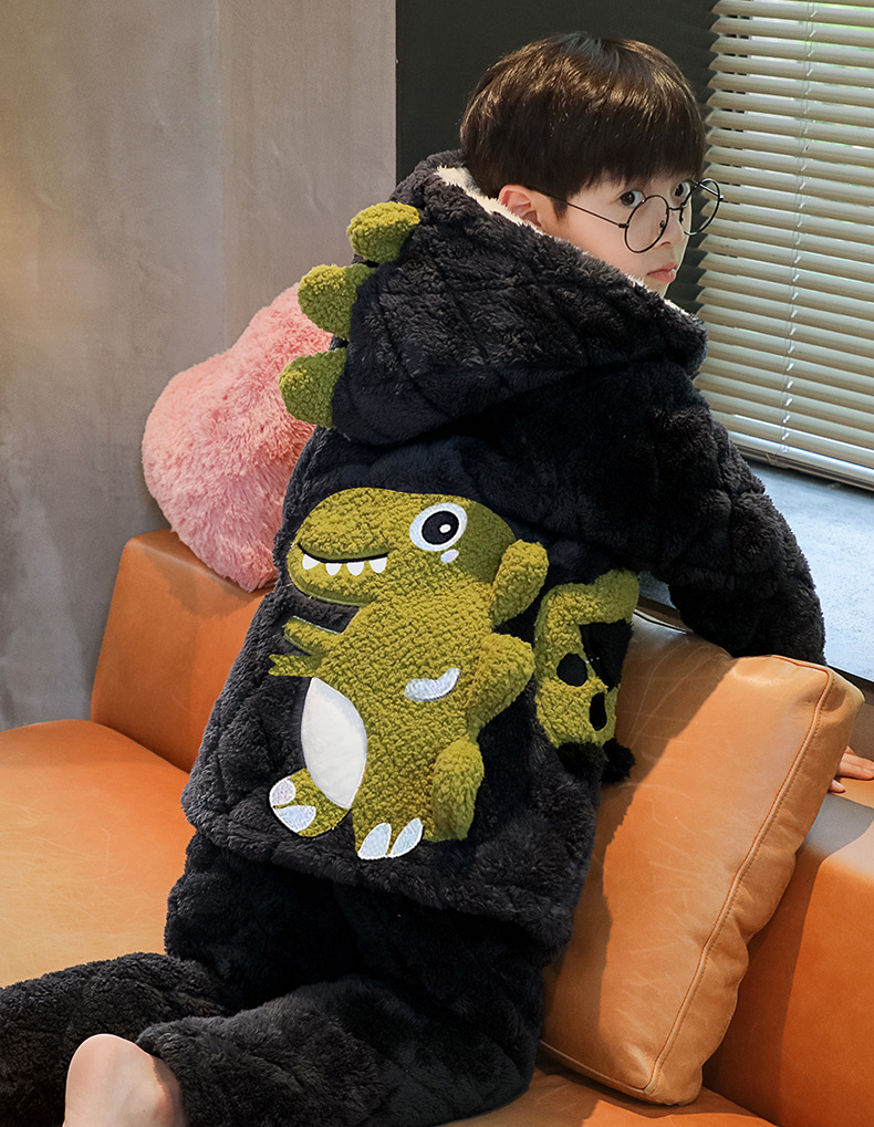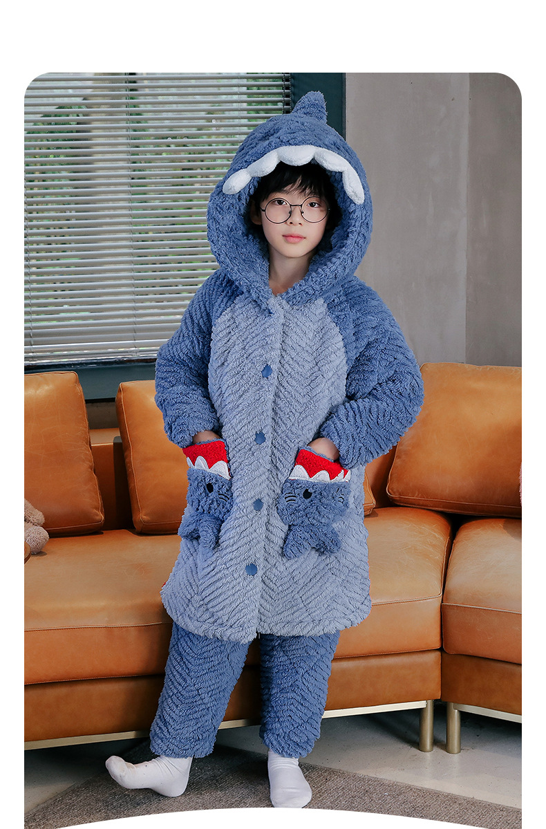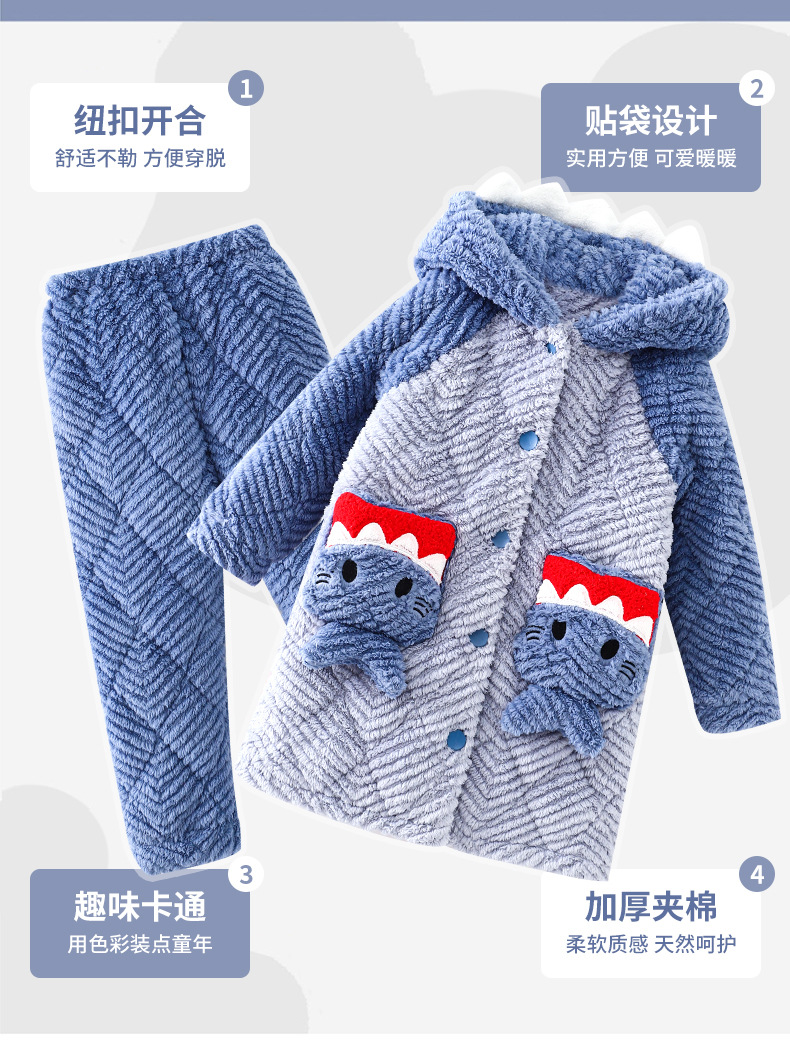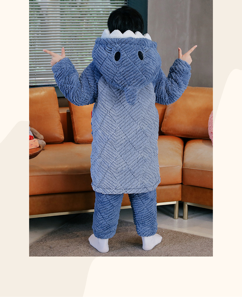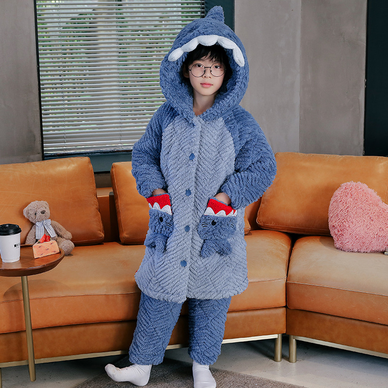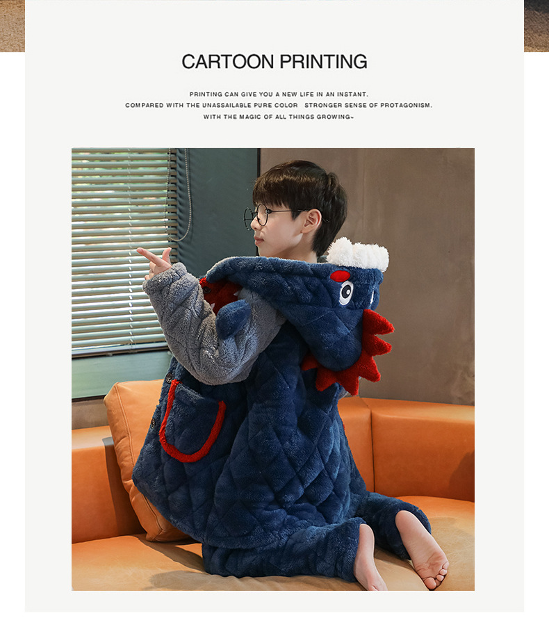 겨울 두꺼운 3 층 퀼트 어린이 플란넬 잠옷 남아 중간 긴 잠옷 소년 산호 양털 가정 의류스토어 가기