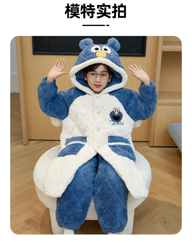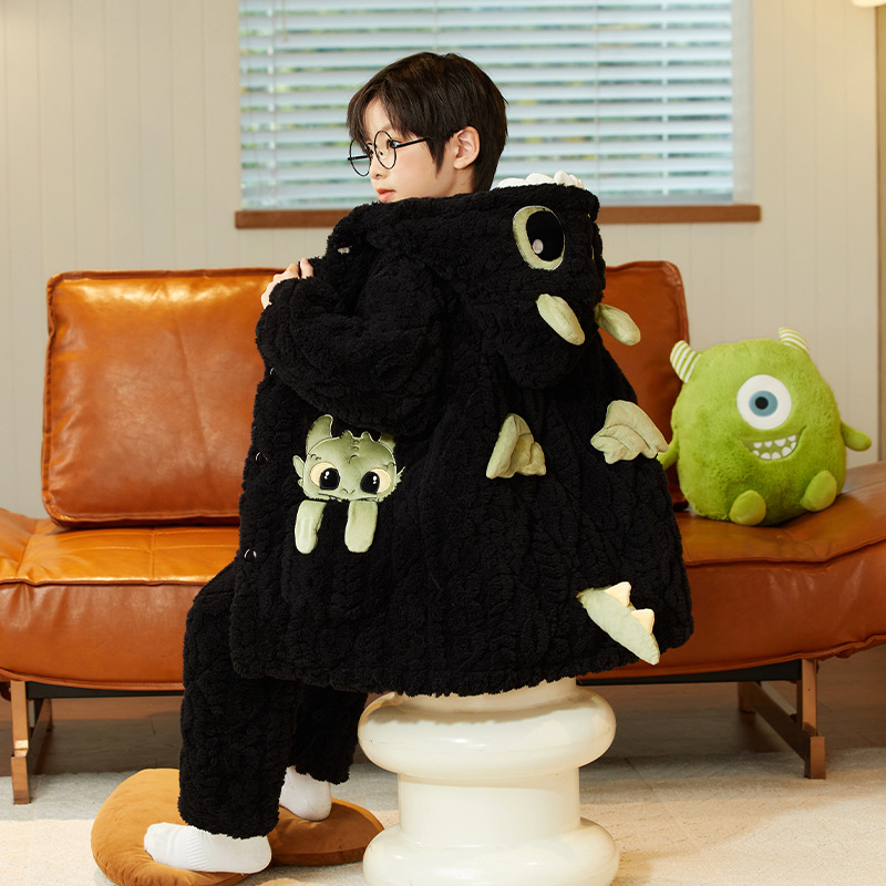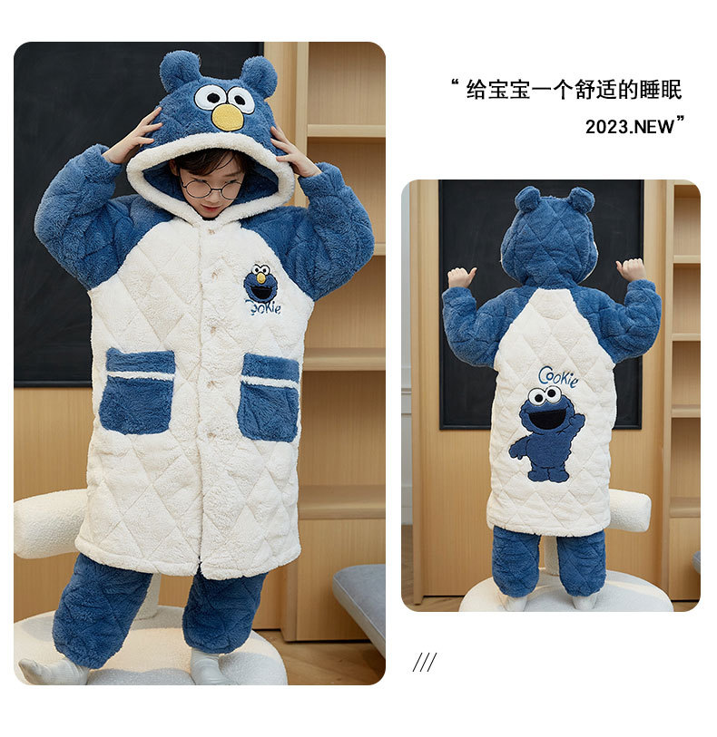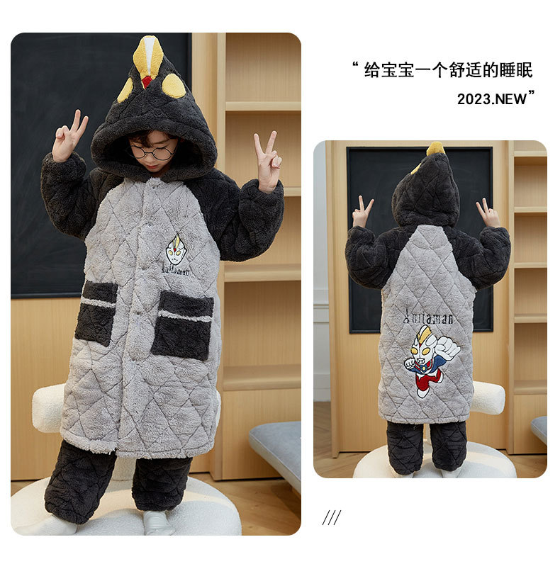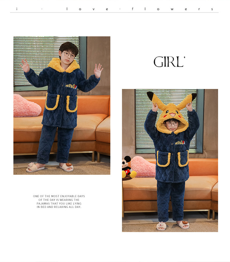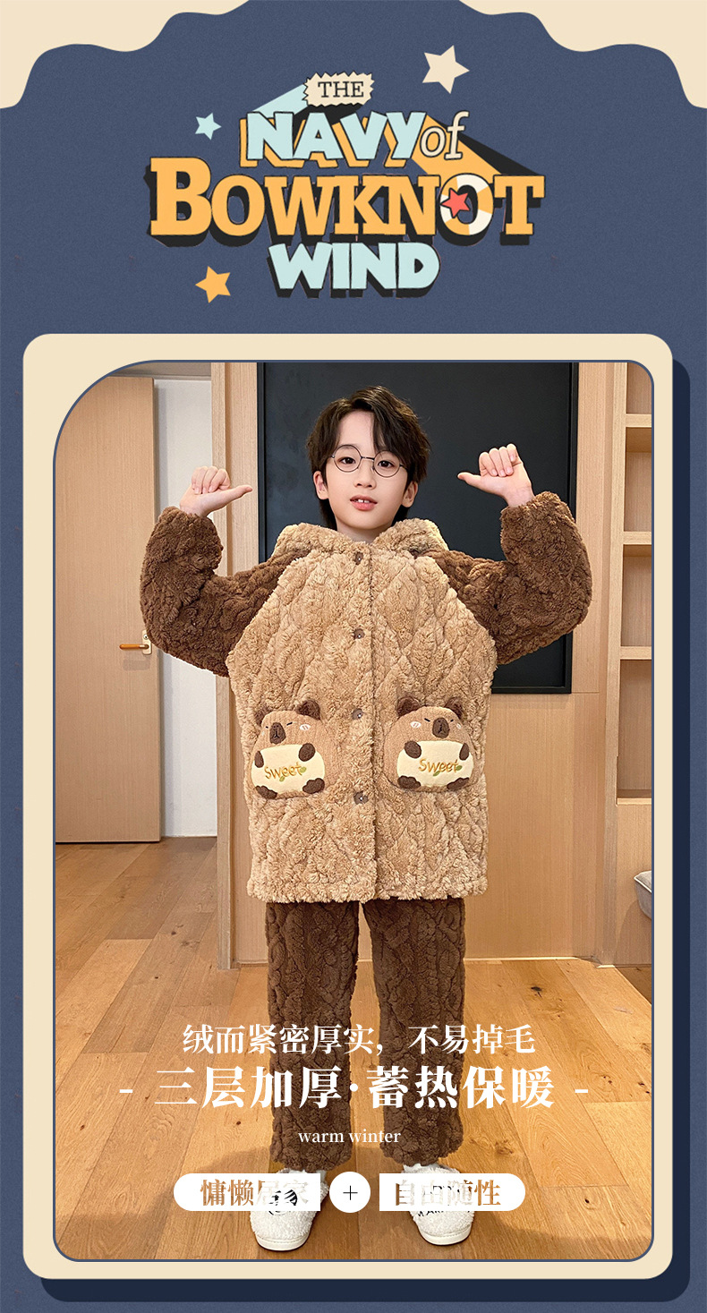 겨울 두꺼운 3 층 퀼트 어린이 플란넬 잠옷 남아 중간 긴 잠옷 소년 산호 양털 가정 의류스토어 가기