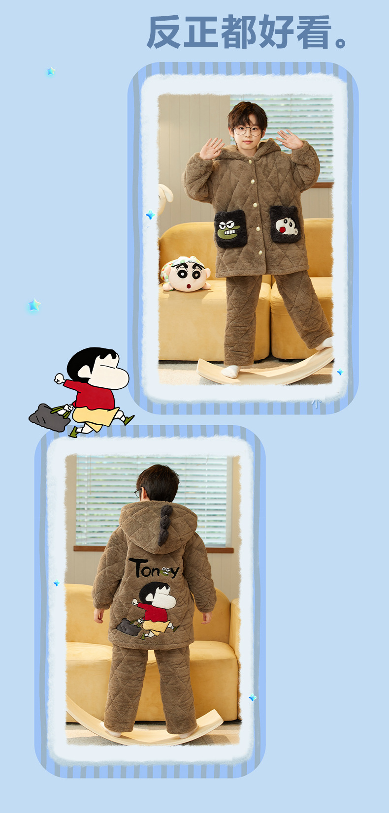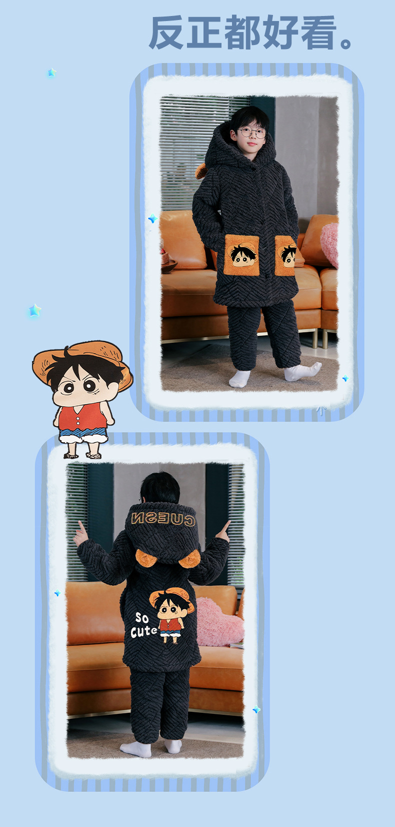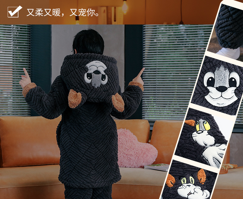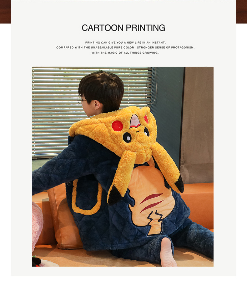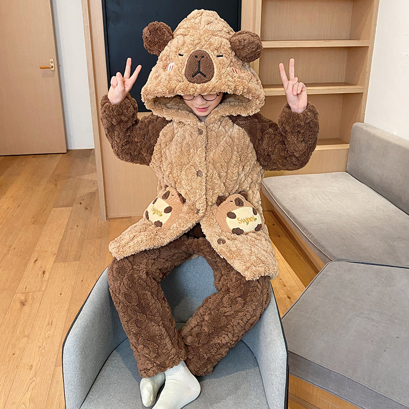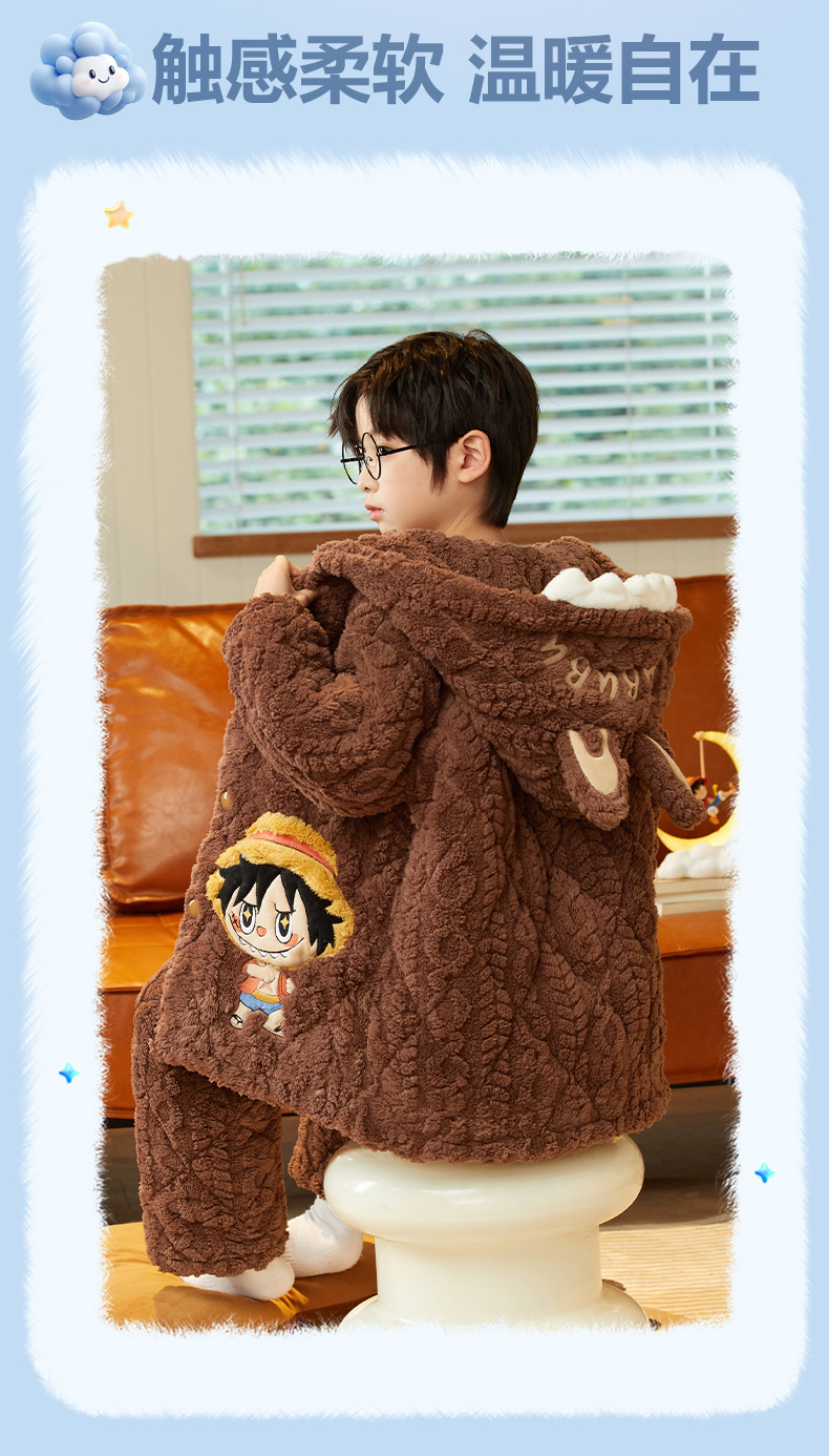 겨울 두꺼운 3 층 퀼트 어린이 플란넬 잠옷 남아 중간 긴 잠옷 소년 산호 양털 가정 의류스토어 가기