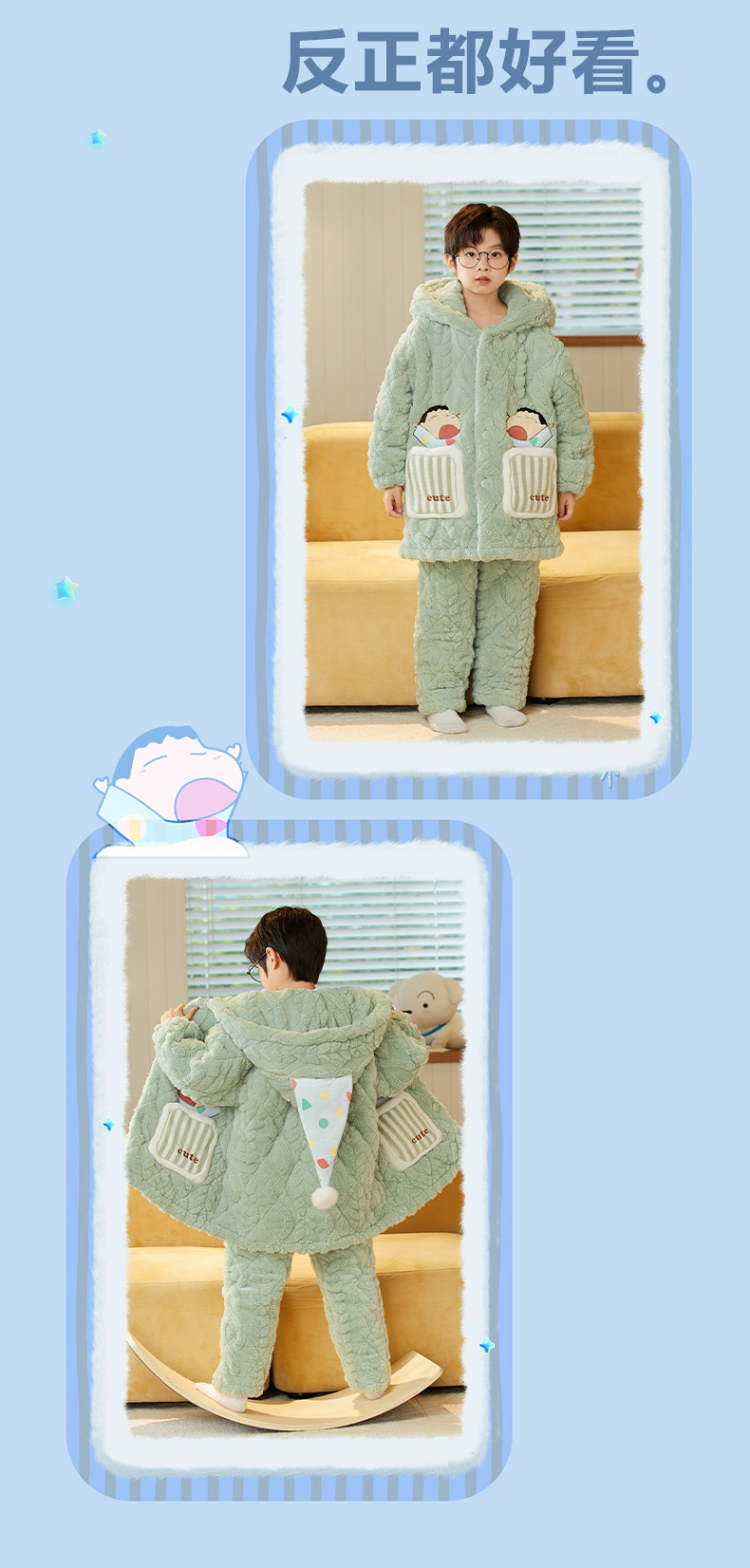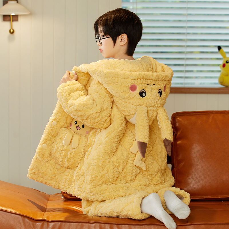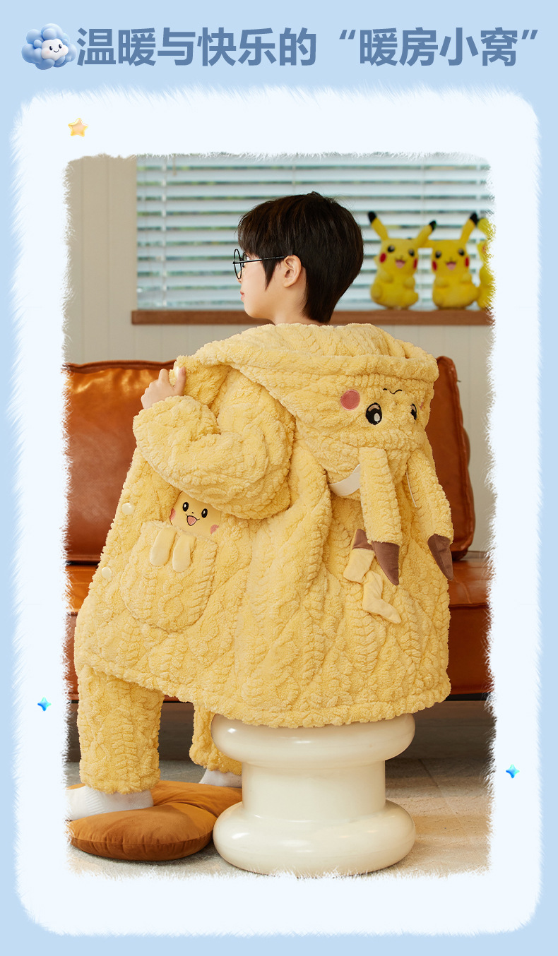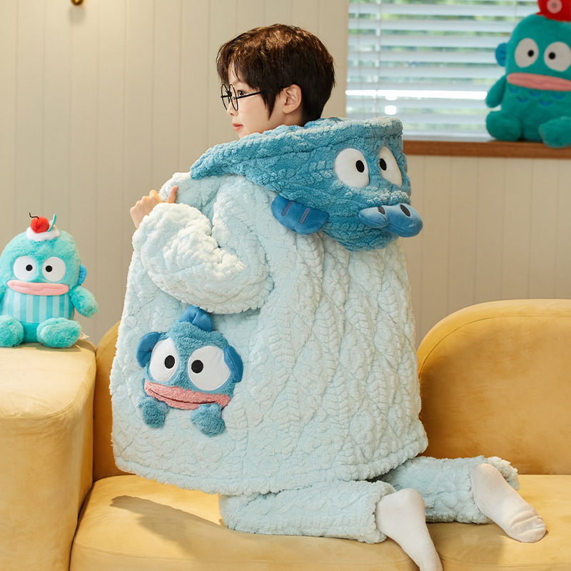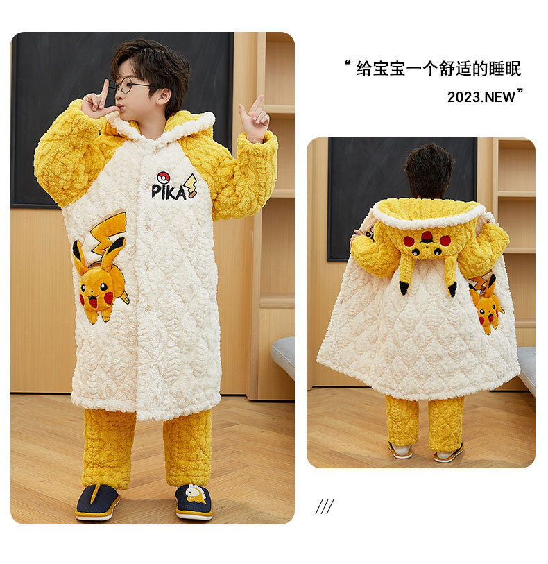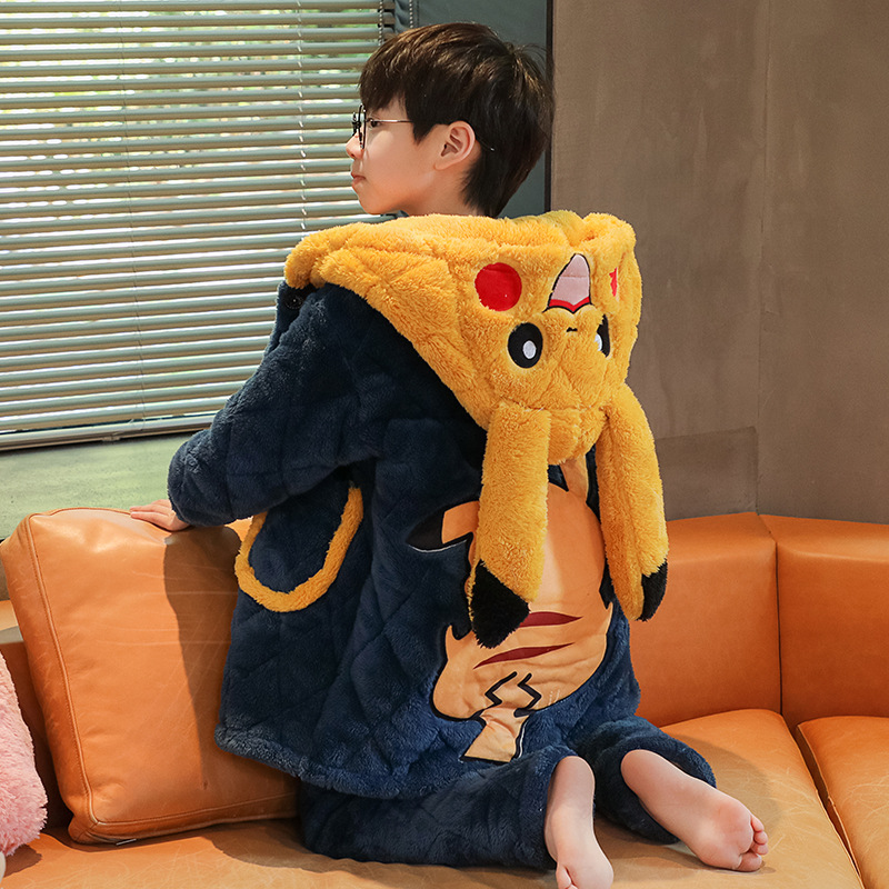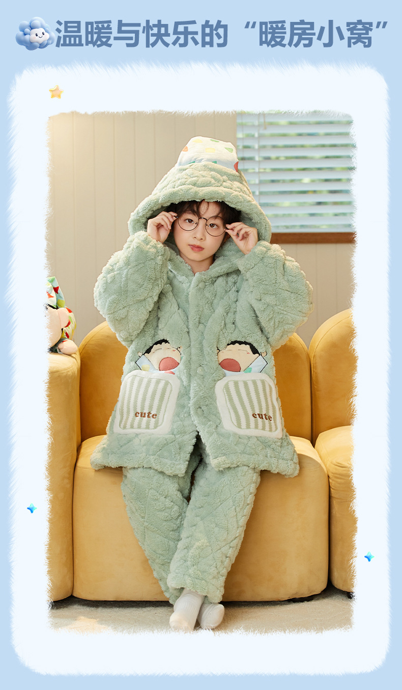 겨울 두꺼운 3 층 퀼트 어린이 플란넬 잠옷 남아 중간 긴 잠옷 소년 산호 양털 가정 의류