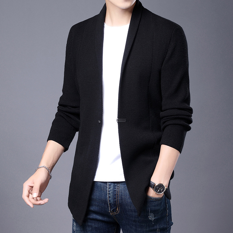 2023 한국 스타일 원 버튼 새로운 유행 스웨터 남성용 봄과 가을 심플 가디건 스웨터 남성용 모든 매치 베이스 셔츠