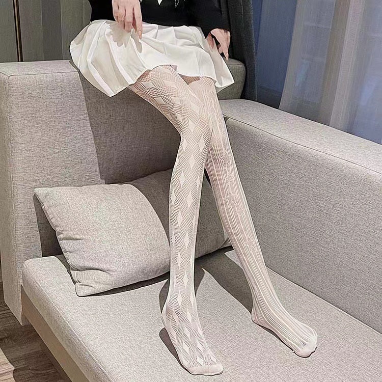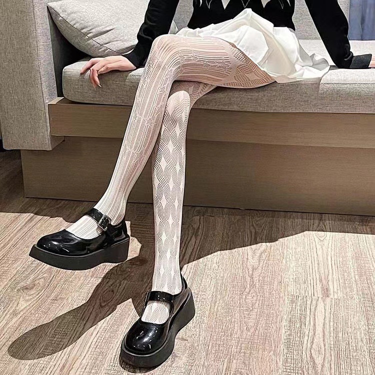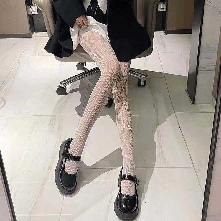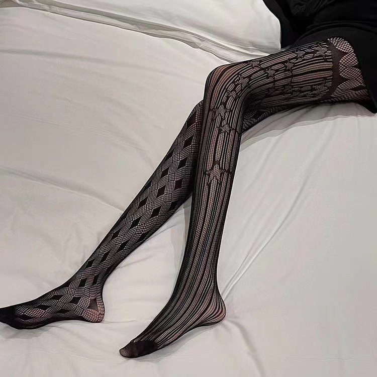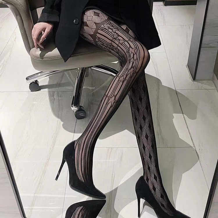 유럽과 미국의 비대칭 마름모 망사 스타킹 여성의 섹시한 자카드 중공 복고풍 팬티 스타킹 섹시한 그물 스타킹스토어 가기
