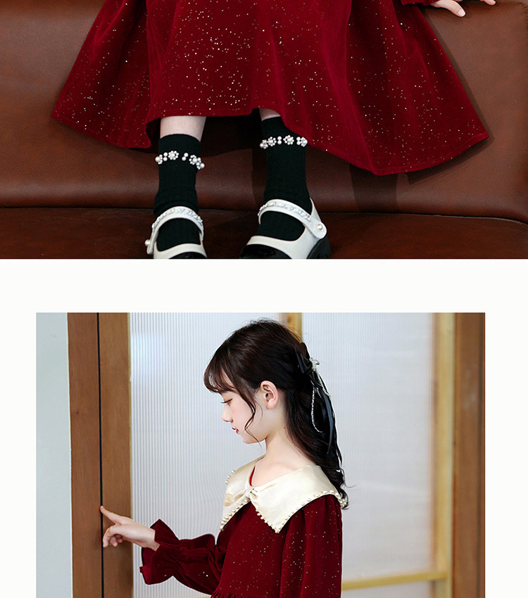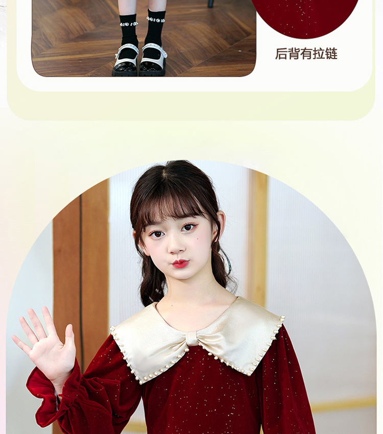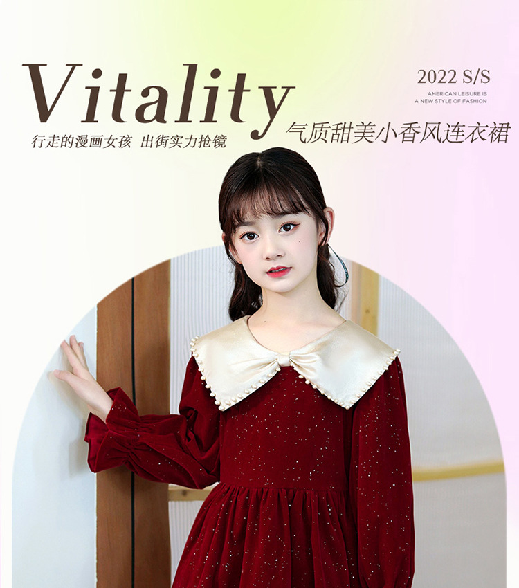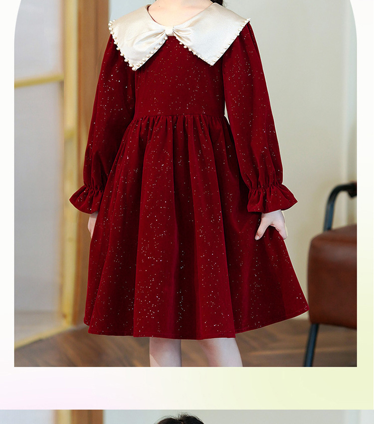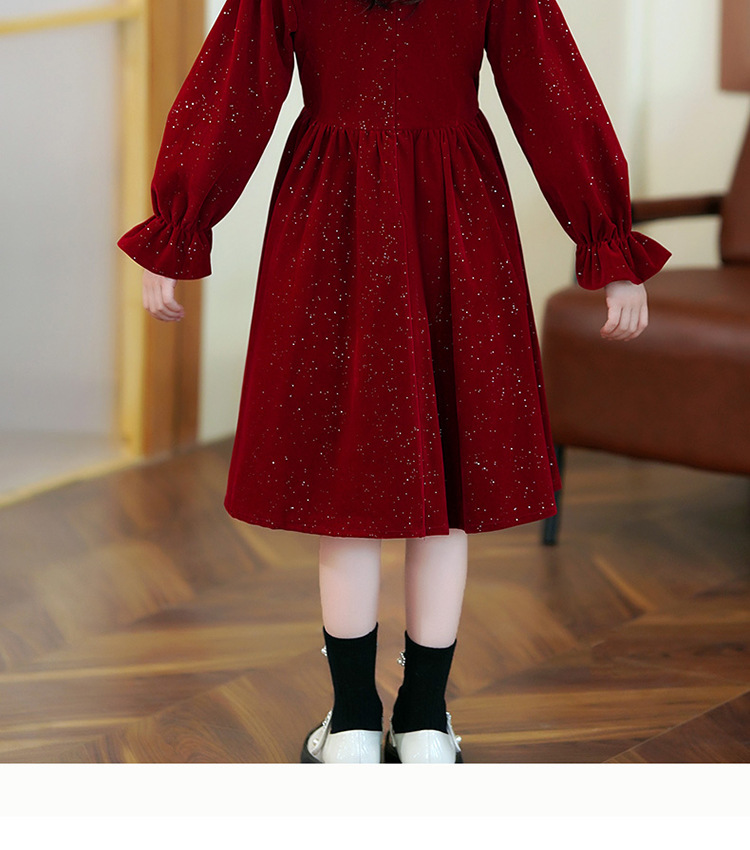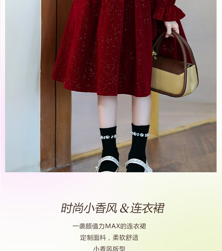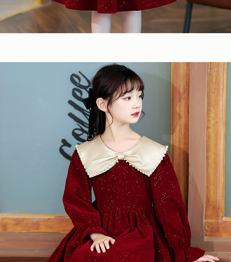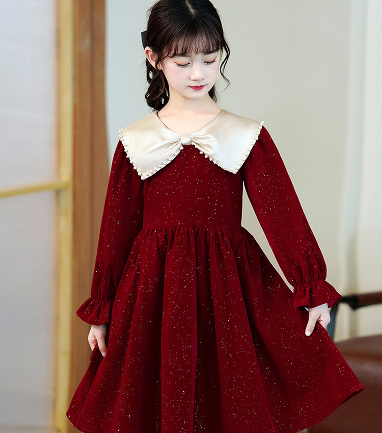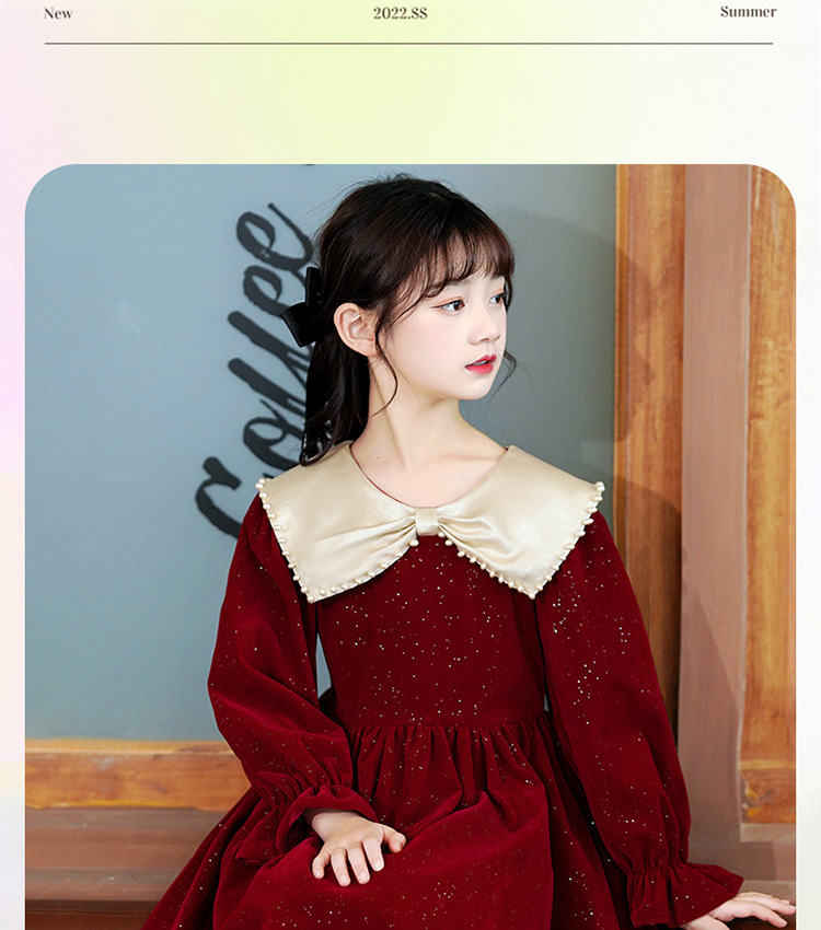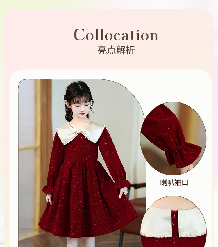 소녀 가을 원피스 2023 새로운 소녀 세련된 공주 원피스 어린이 가을과 겨울 긴 소매 기모 원피스 여성
