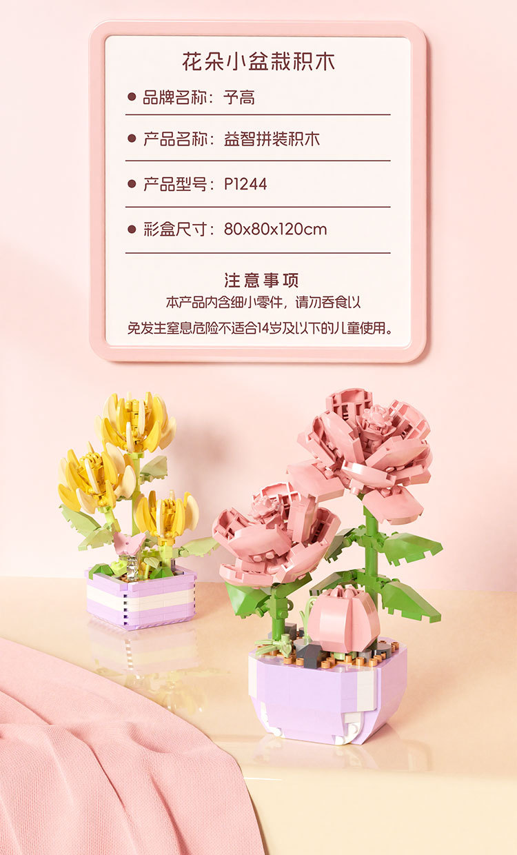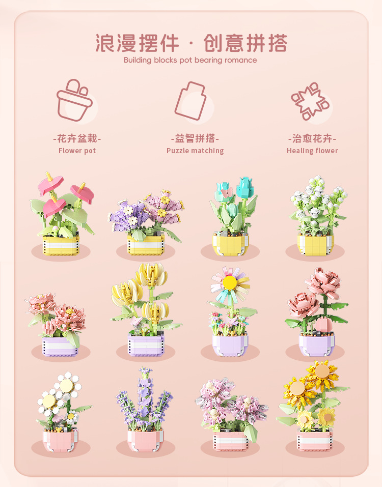 해바라기 장미 카네이션 작은 입자 빌딩 블록 소녀와 학생을위한 조립 그림 생일 선물 상인 슈퍼 도매스토어 가기
