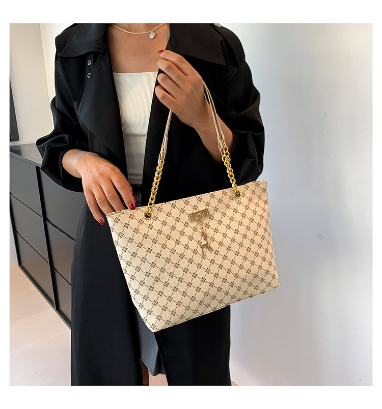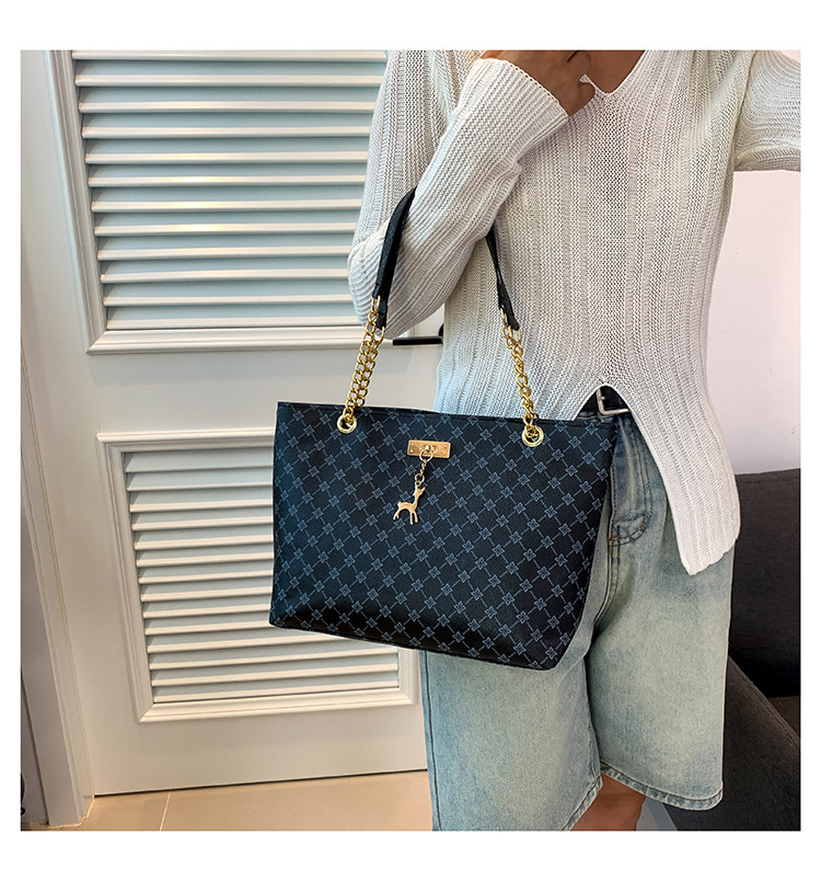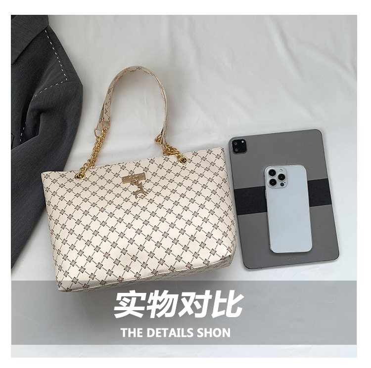 대용량 가방 2023 새로운 여성용 가방 패션 통근 복고풍 체인 휴대용 숄더백 인쇄 토트백스토어 가기