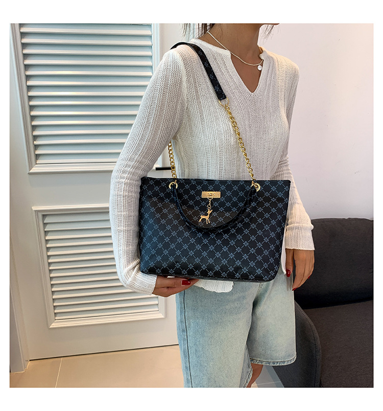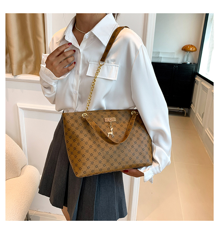 대용량 가방 2023 새로운 여성용 가방 패션 통근 복고풍 체인 휴대용 숄더백 인쇄 토트백