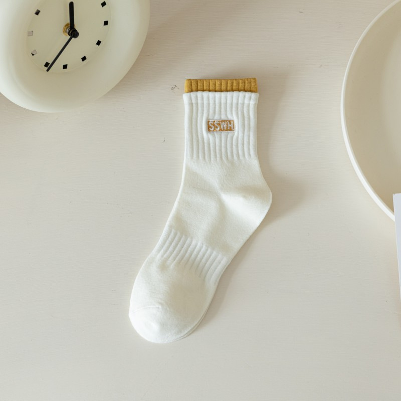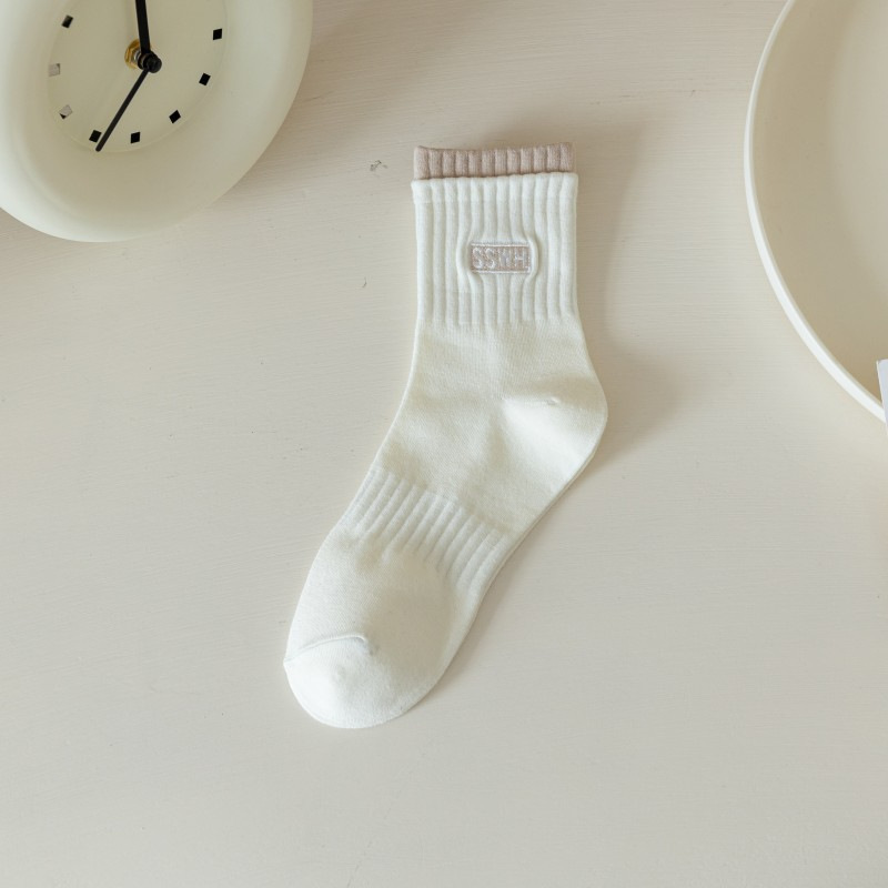 화이트 양말 더블 루즈 여성의 가을과 겨울 새로운 중간 길이 양말 면 양말 통기성 편지 유행 스타킹 스포츠 여성 양말