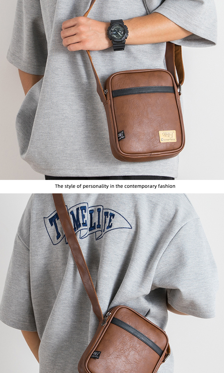 일본 유행 남자의 PU 가죽 휴대 전화 가방 개인화 된 캐주얼 복고풍 어깨 가방 Instagram 스타일 작은 사첼 도구 가방